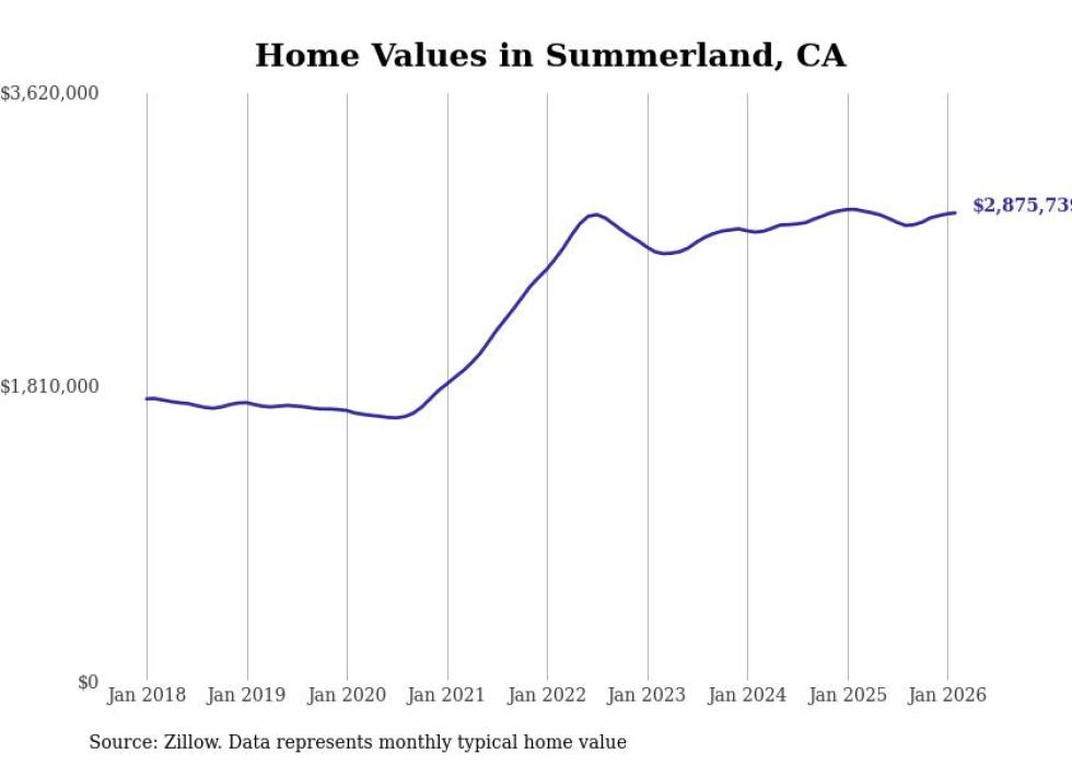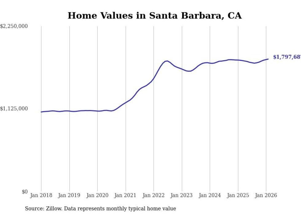 Stacker compiled a list of cities with the most expensive homes in the Santa Maria-Santa Barbara, CA metro area using data from Zillow. Charts show the monthly typical home value since January 2018.