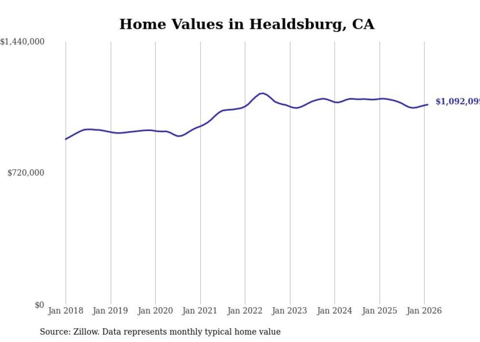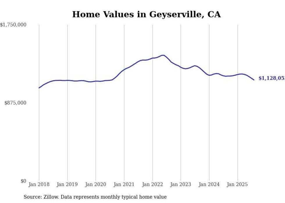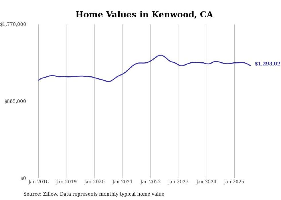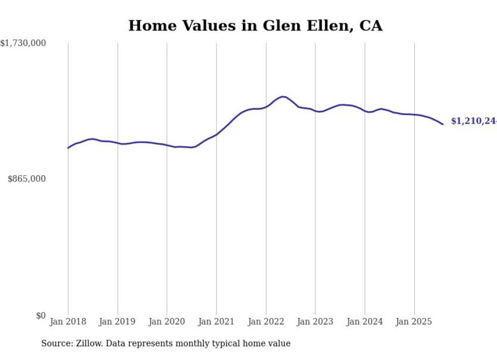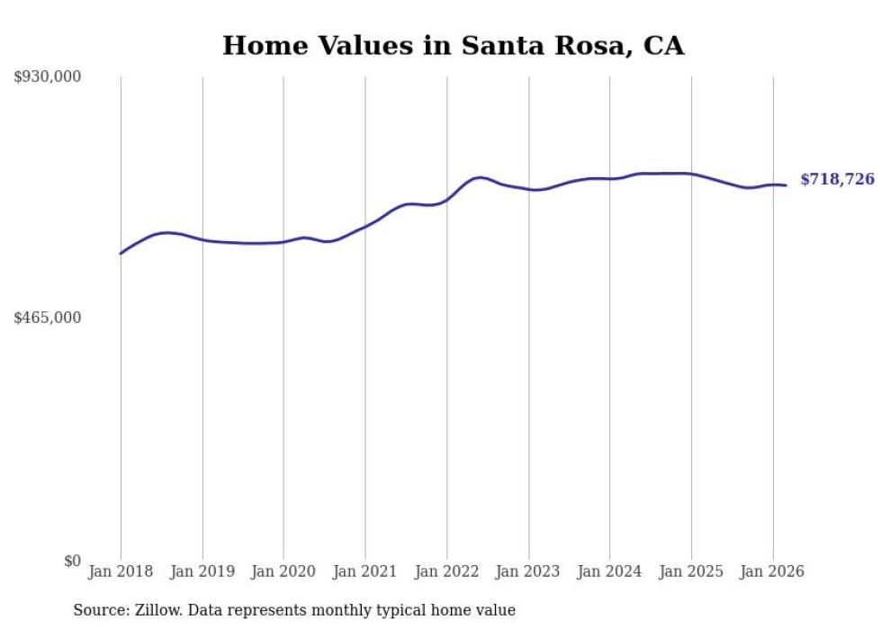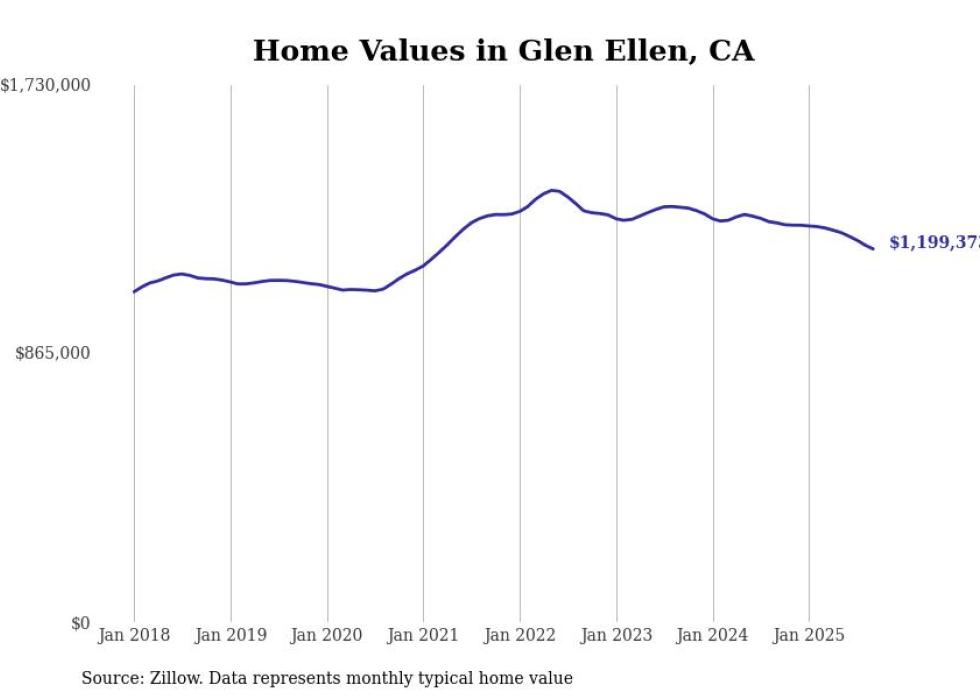 Stacker compiled a list of cities with the most expensive homes in the Santa Rosa metro area using data from Zillow. Charts show the monthly typical home value since January 2018. All 24 cities and towns with data available were included in the list.