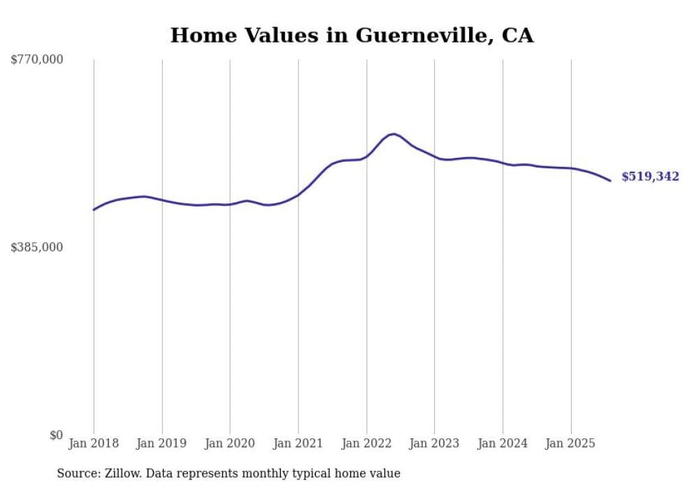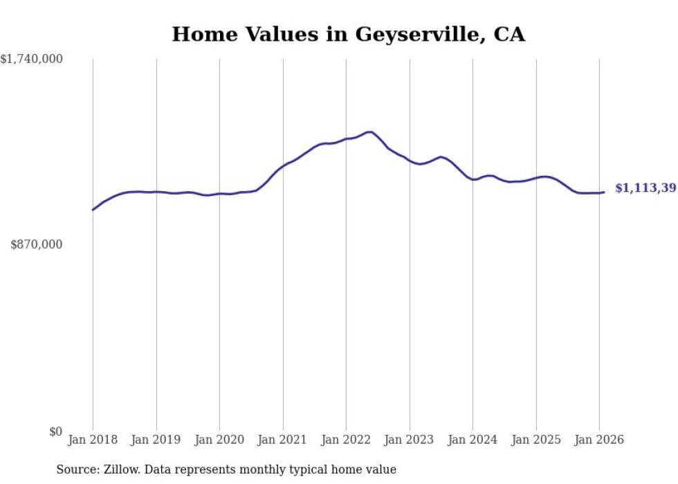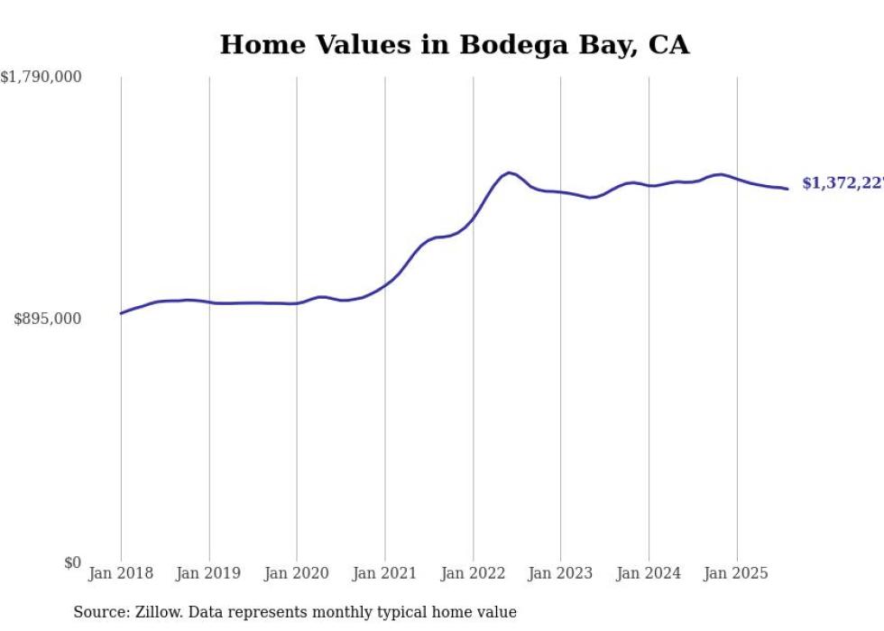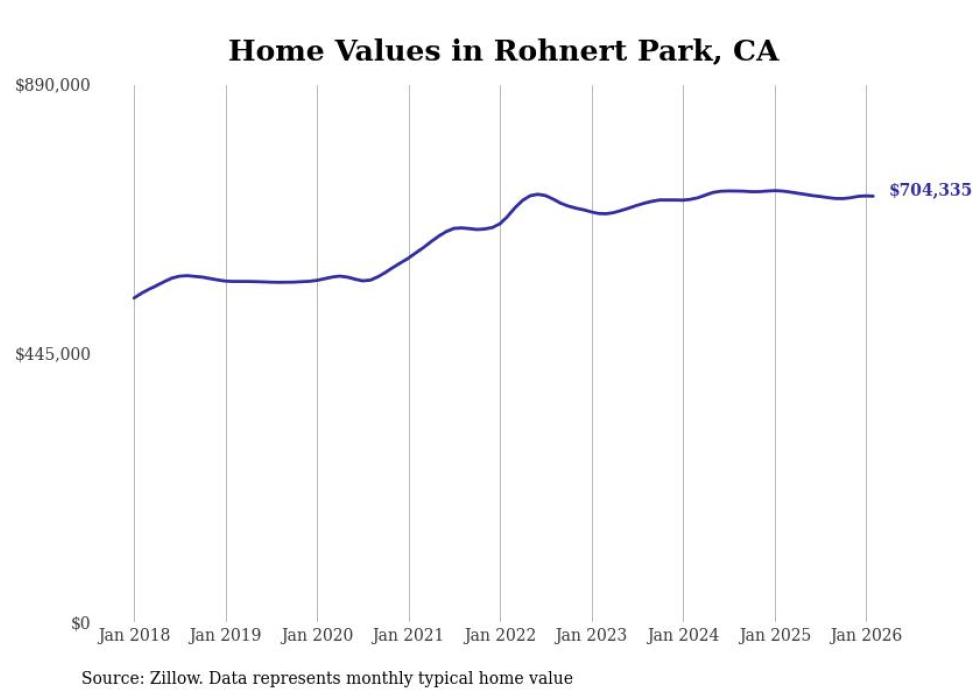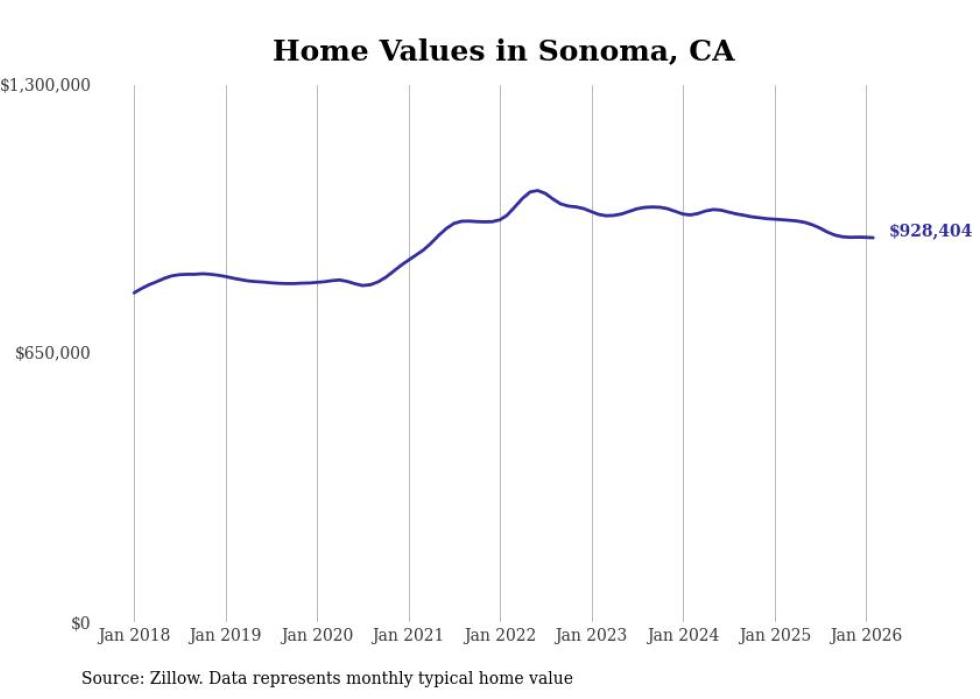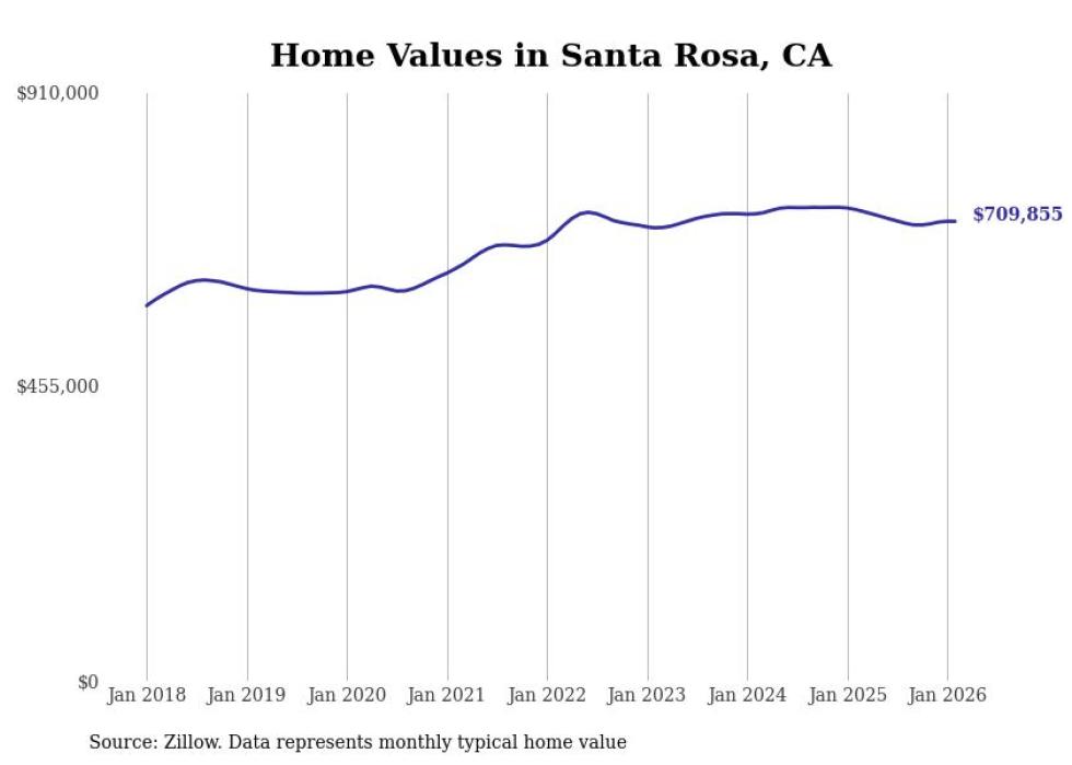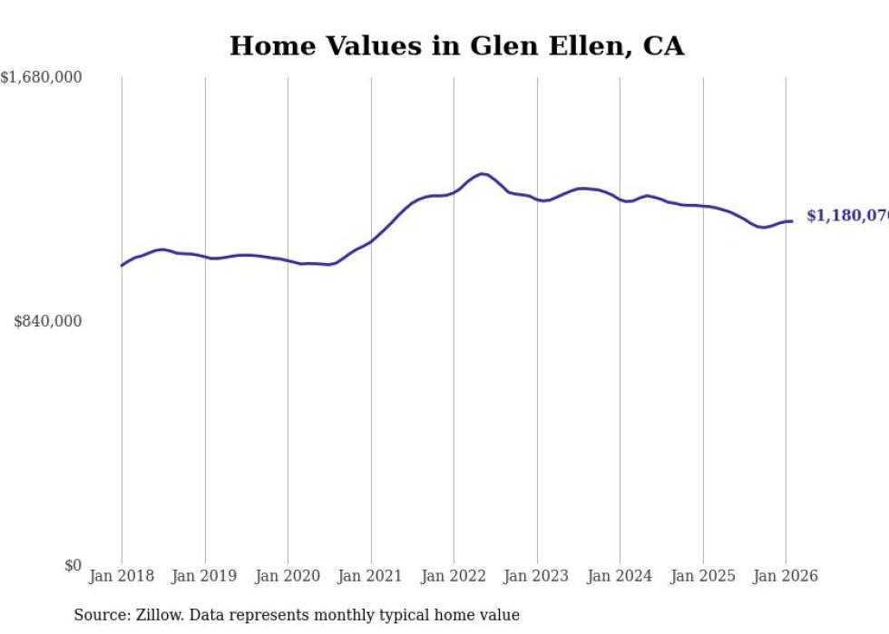 Stacker compiled a list of cities with the most expensive homes in the Santa Rosa metro area using data from Zillow. Charts show the monthly typical home value since January 2018. All 24 cities and towns with data available were included in the list.
