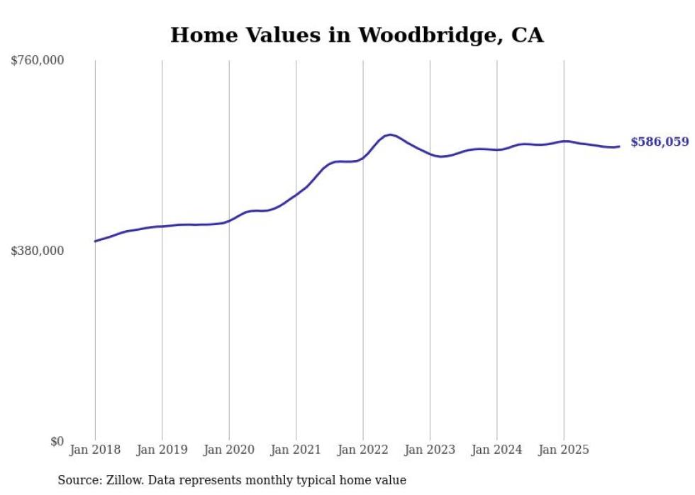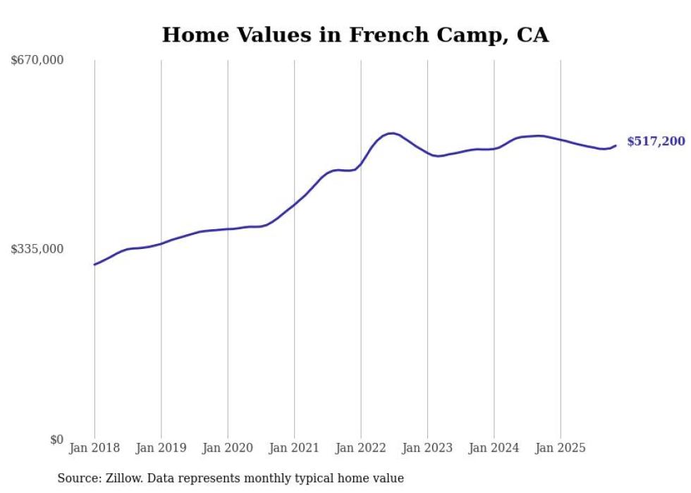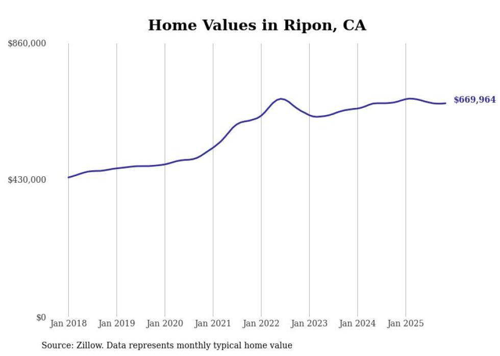 Stacker compiled a list of cities with the most expensive homes in the Stockton metro area using data from Zillow. Charts show the monthly typical home value since January 2018. All 20 cities and towns with data available were included in the list.
