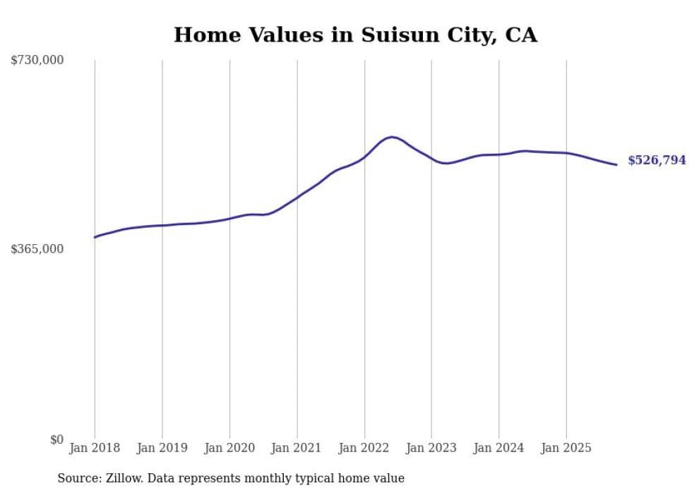 Cities with the fastest-growing home prices in the Vallejo metro area