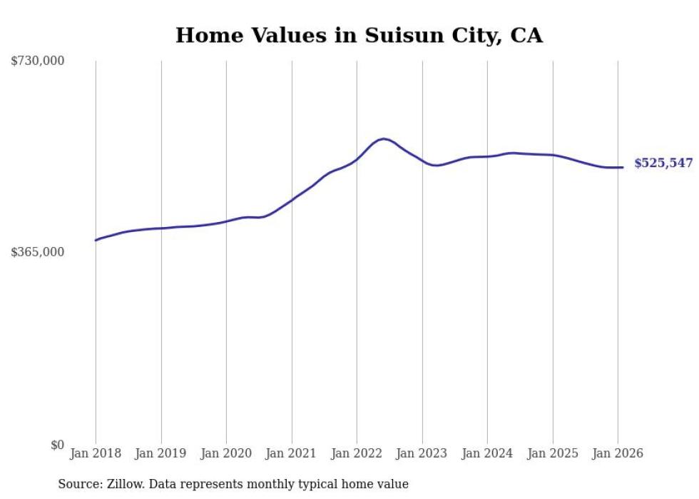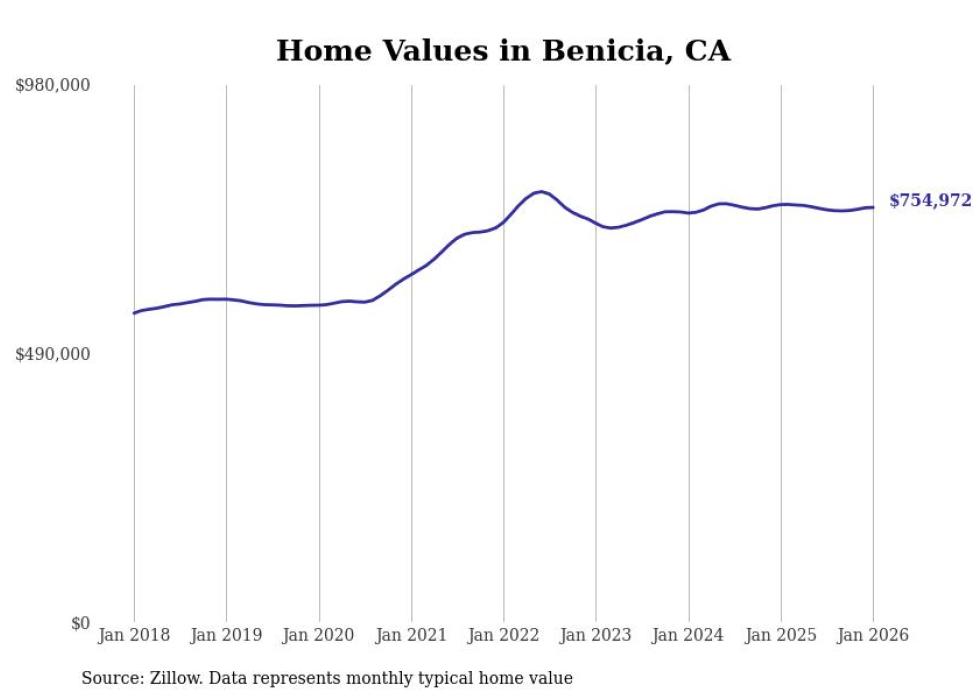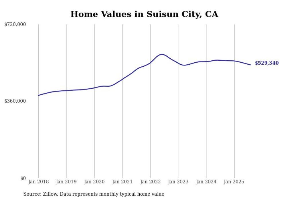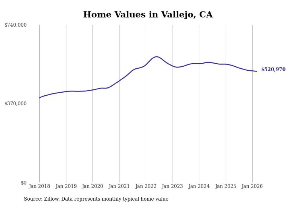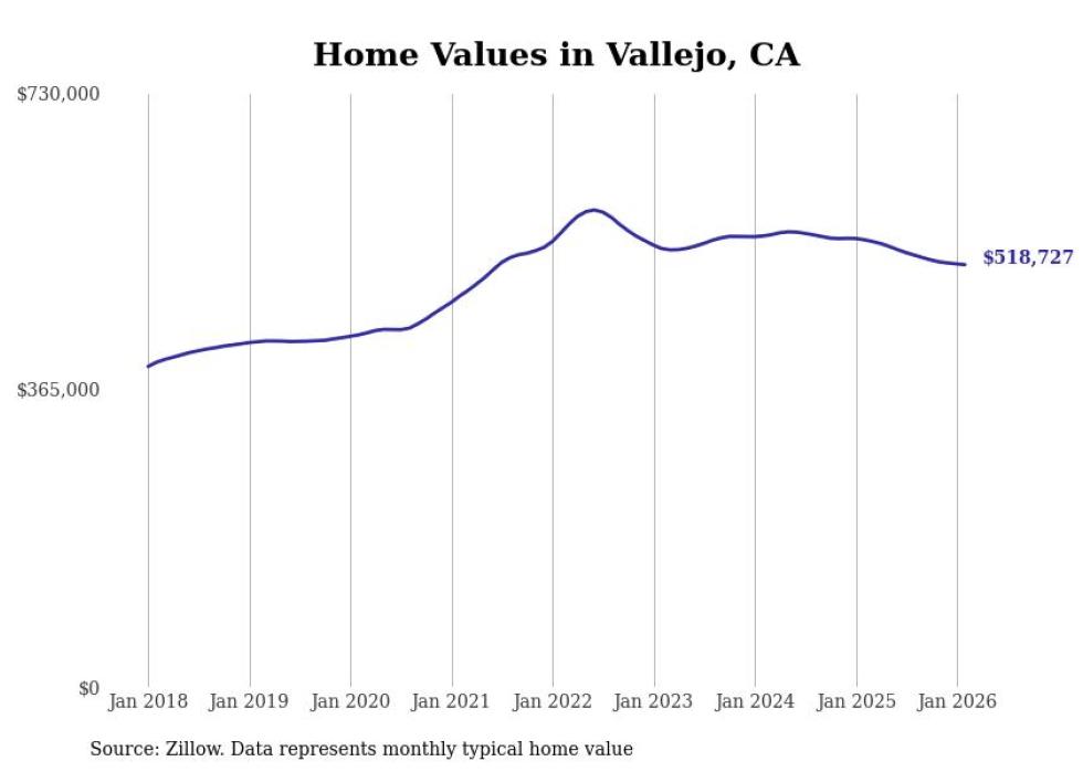 Stacker compiled a list of cities with the most expensive homes in the Vallejo metro area using data from Zillow. Charts show the monthly typical home value since January 2018. All 7 cities and towns with data available were included in the list.