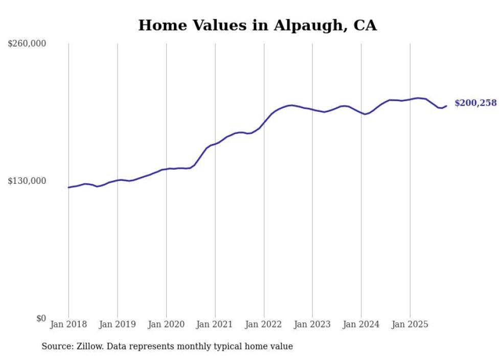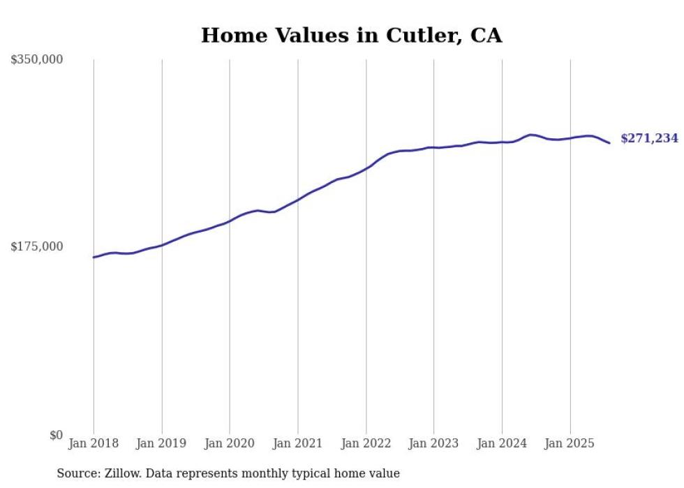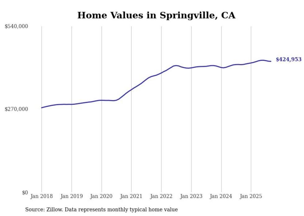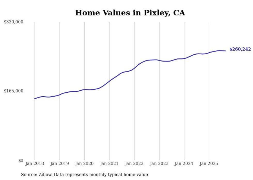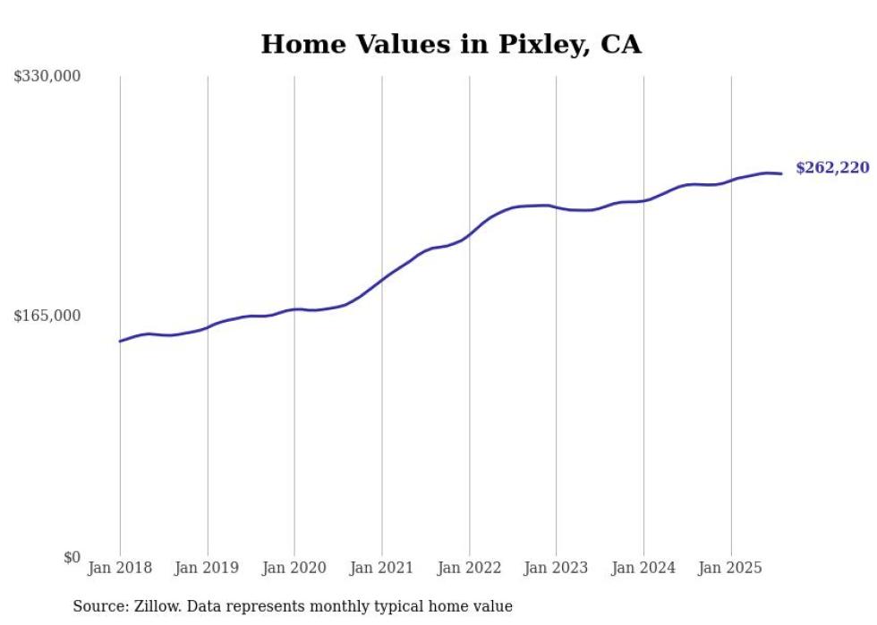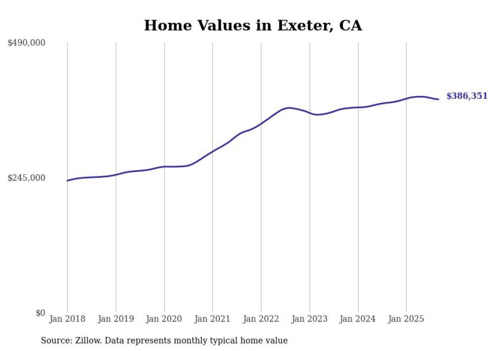 Stacker compiled a list of cities with the most expensive homes in the Visalia metro area using data from Zillow. Charts show the monthly typical home value since January 2018. All 24 cities and towns with data available were included in the list.