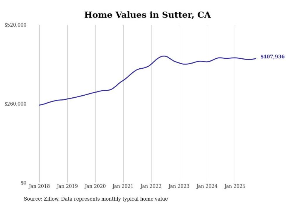 Stacker compiled a list of cities with the most expensive homes in the Yuba City, CA metro area using data from Zillow. Charts show the monthly typical home value since January 2018.