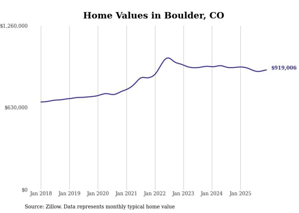 Stacker compiled a list of cities with the most expensive homes in the Boulder, CO metro area using data from Zillow. Charts show the monthly typical home value since January 2018.