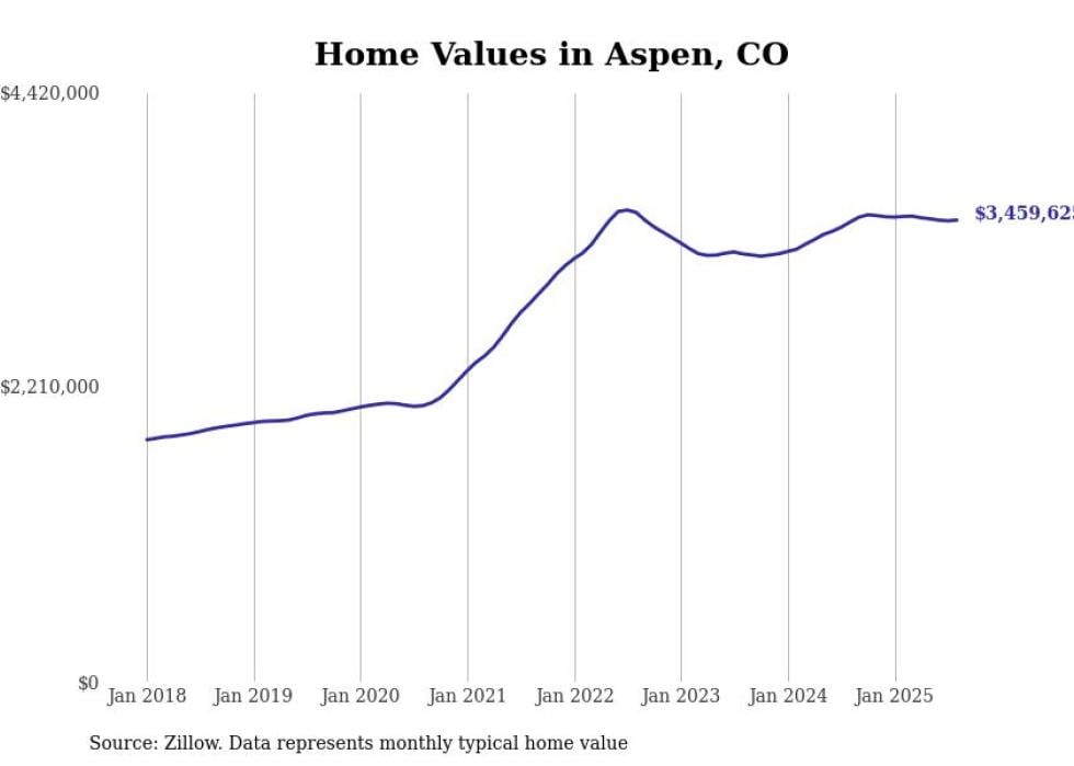 Stacker compiled a list of cities with the most expensive homes in Colorado using data from Zillow. Cities are ranked by the Zillow Home Values Index for all homes as of August 2025. The charts in this story were created automatically using Matplotlib.
