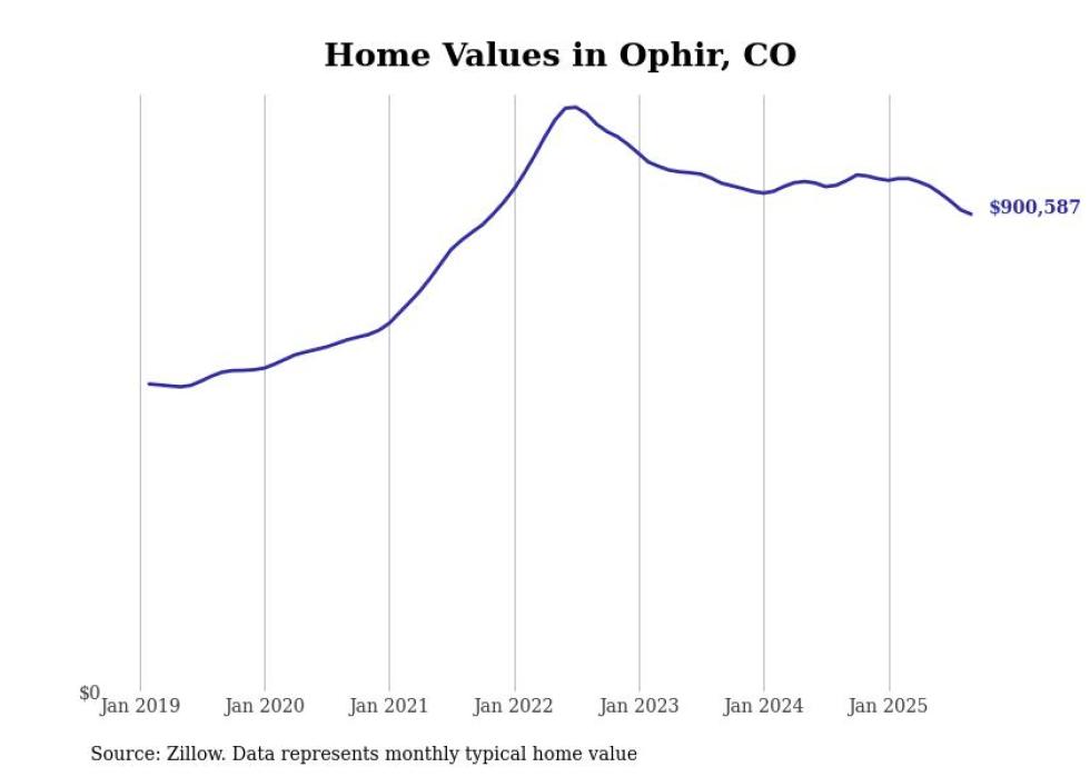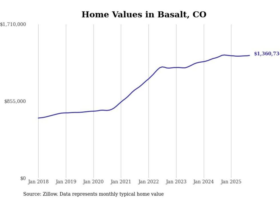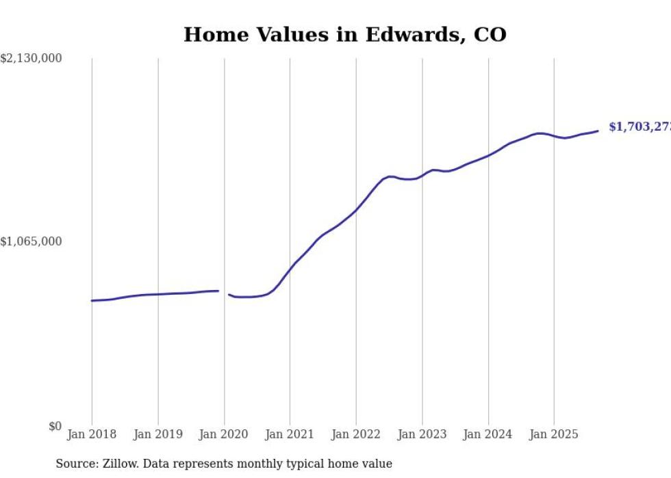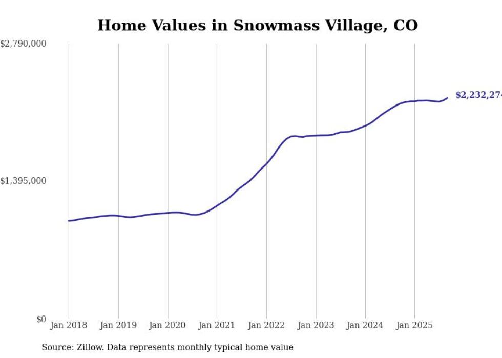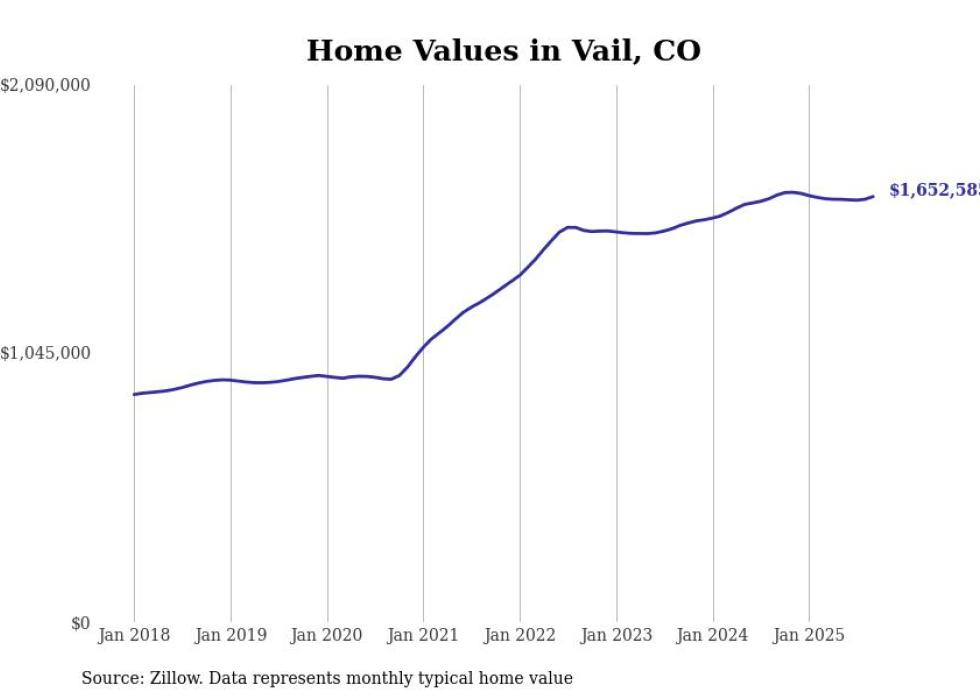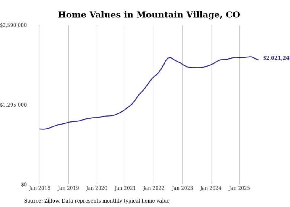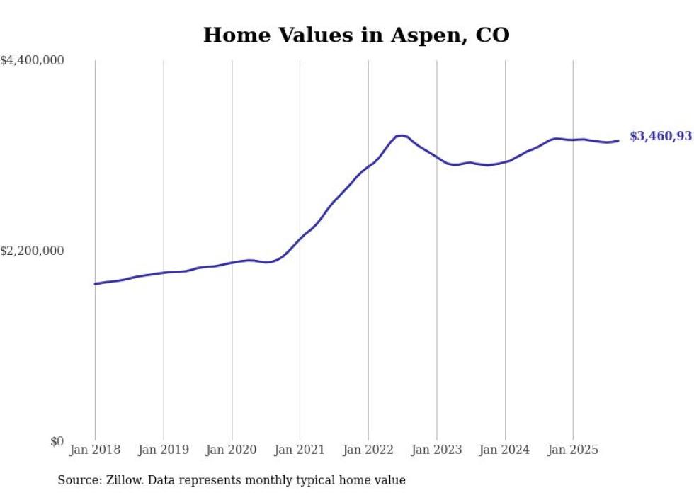 Stacker compiled a list of cities with the most expensive homes in Colorado using data from Zillow. Cities are ranked by the Zillow Home Values Index for all homes as of September 2025. The charts in this story were created automatically using Matplotlib.