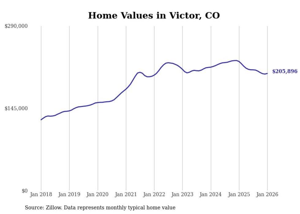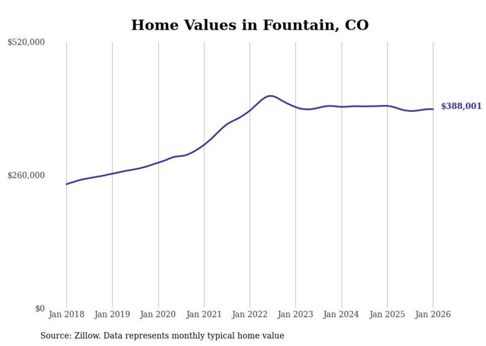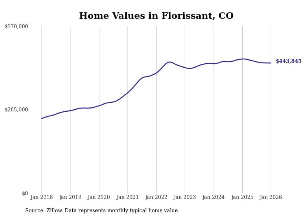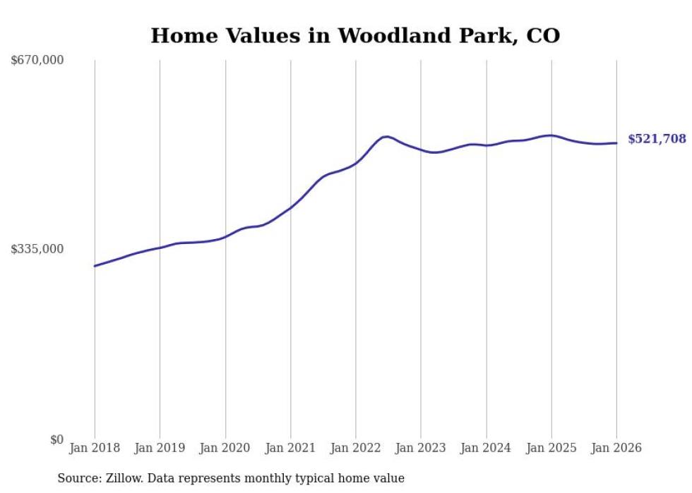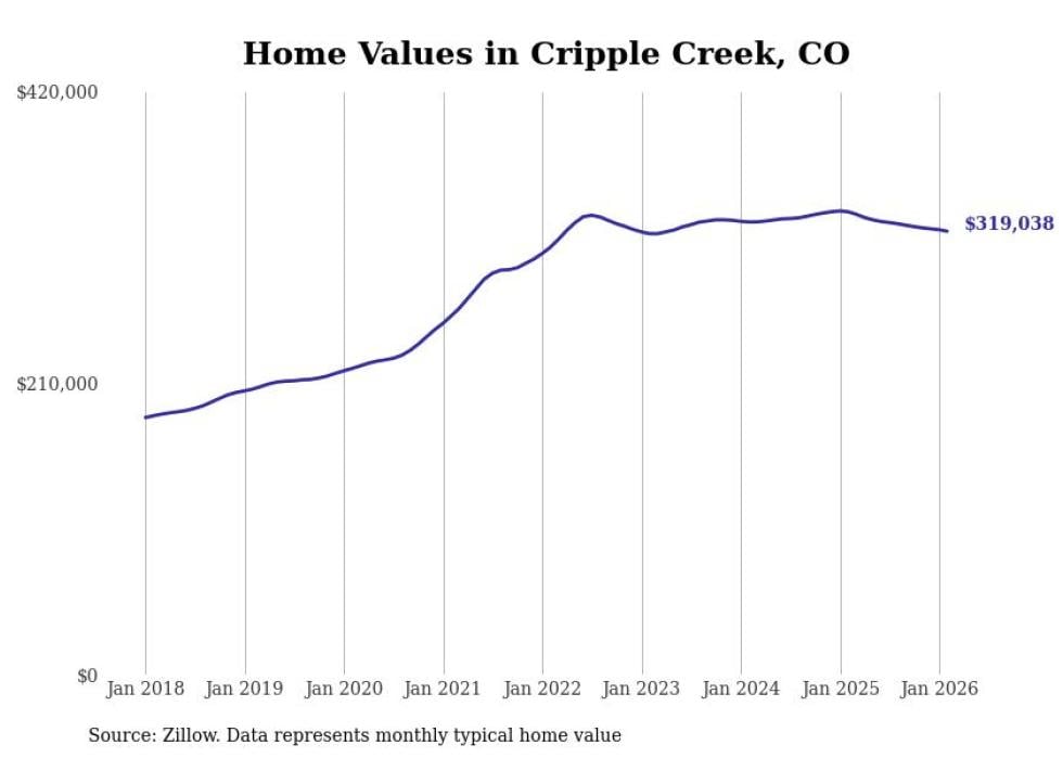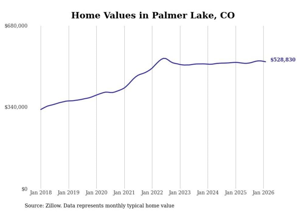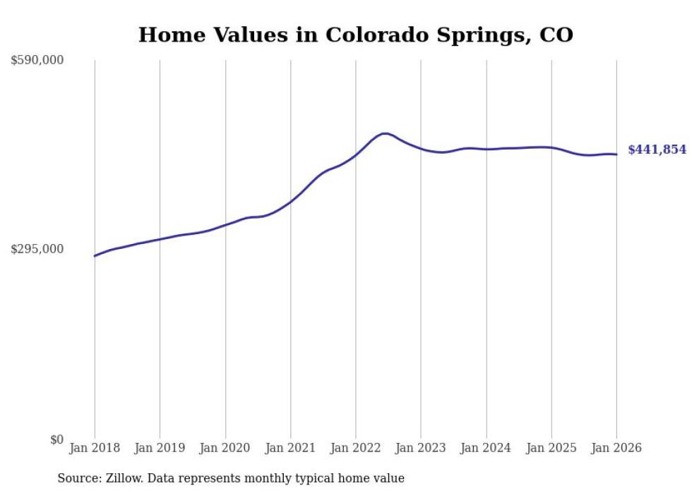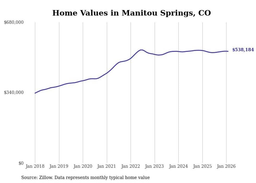 Stacker compiled a list of cities with the most expensive homes in the Colorado Springs metro area using data from Zillow. Charts show the monthly typical home value since January 2018. All 16 cities and towns with data available were included in the list.