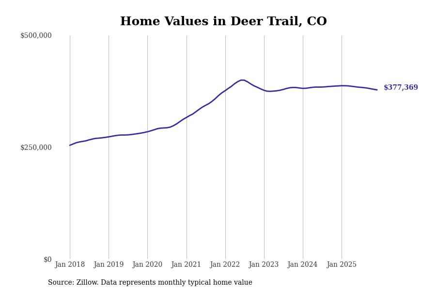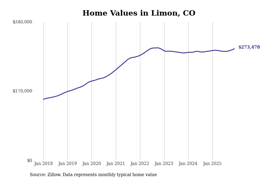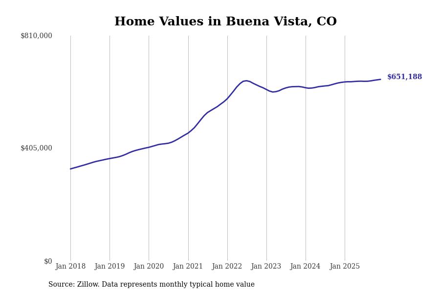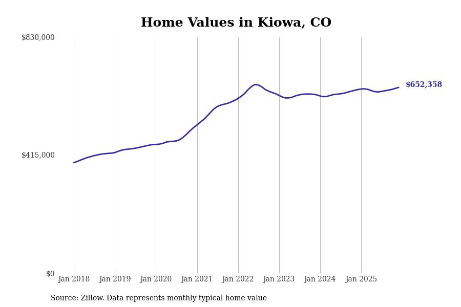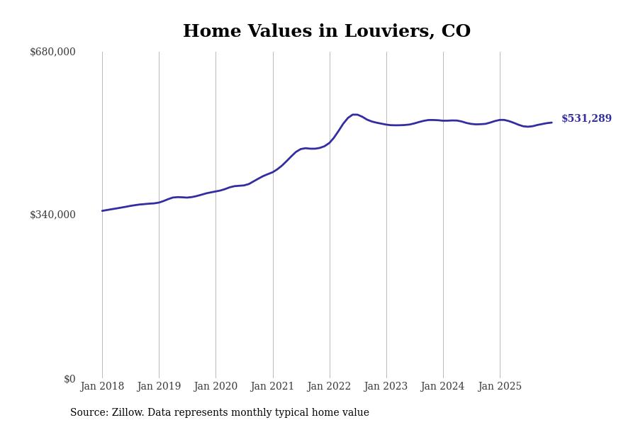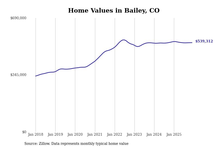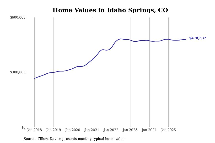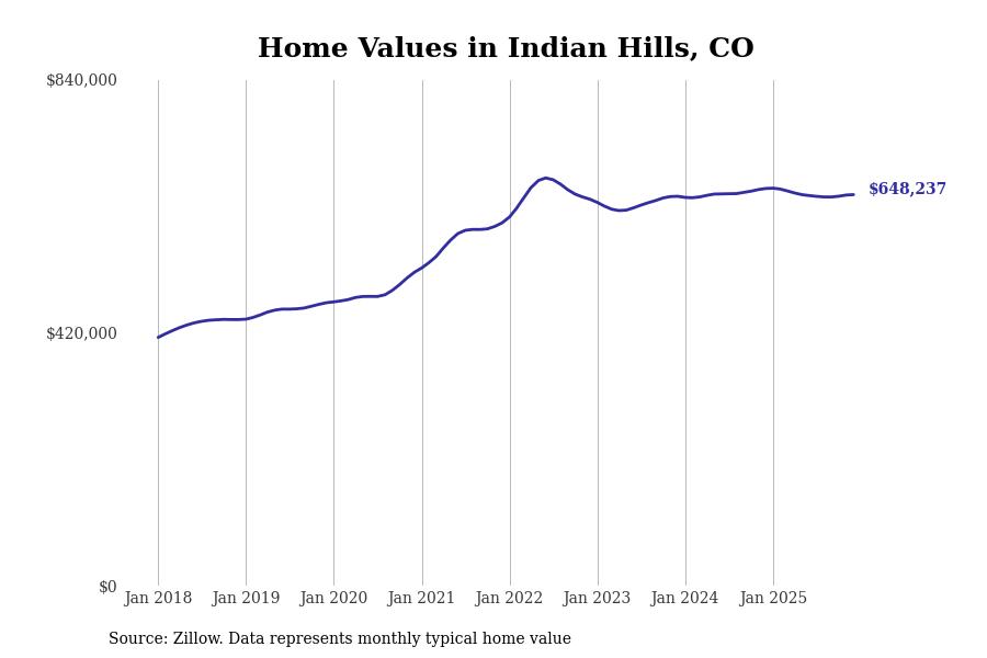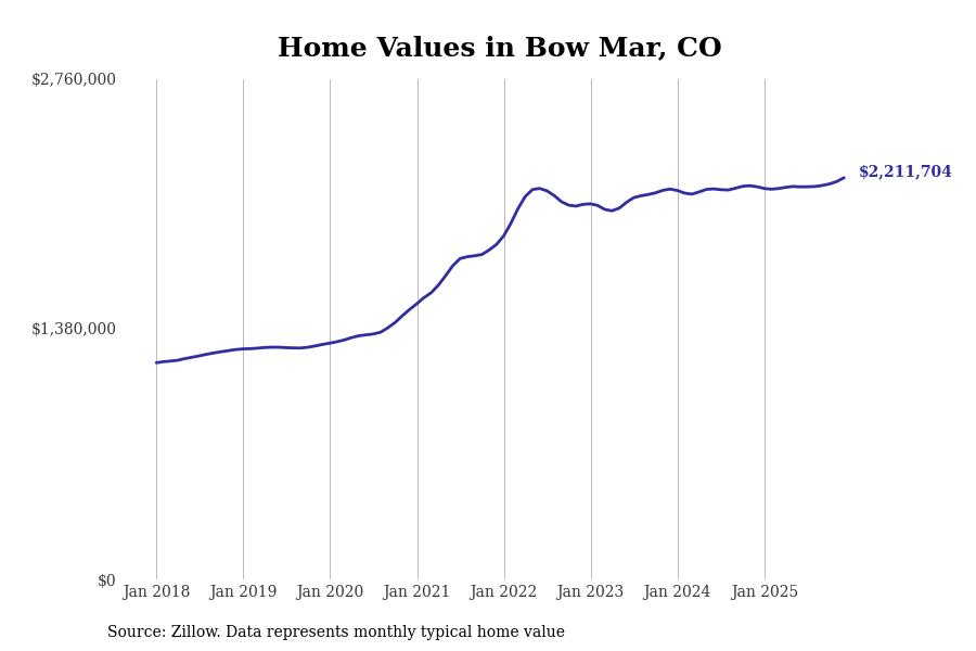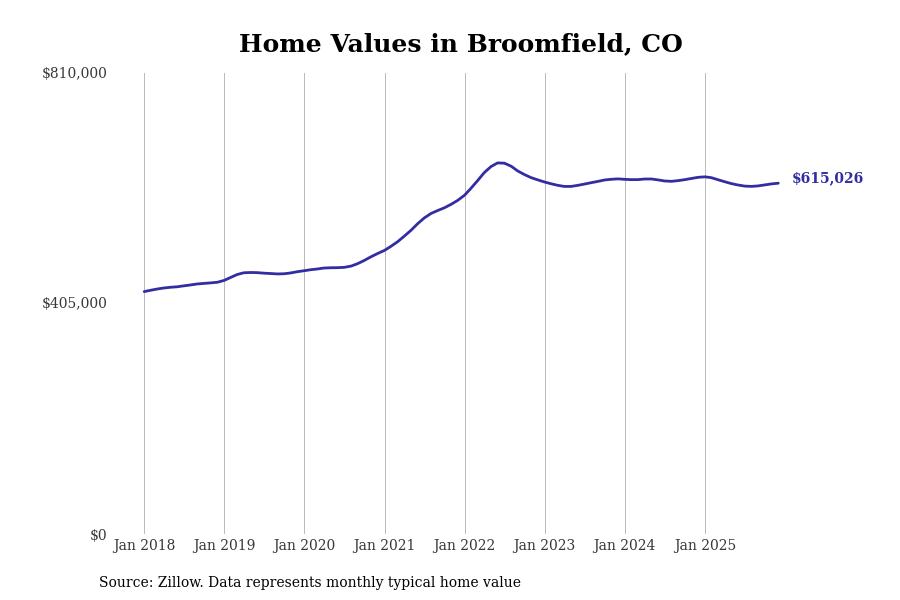 Stacker compiled a list of cities with the most expensive homes in the Denver-Aurora-Lakewood, CO metro area using data from Zillow. Charts show the monthly typical home value since January 2018.