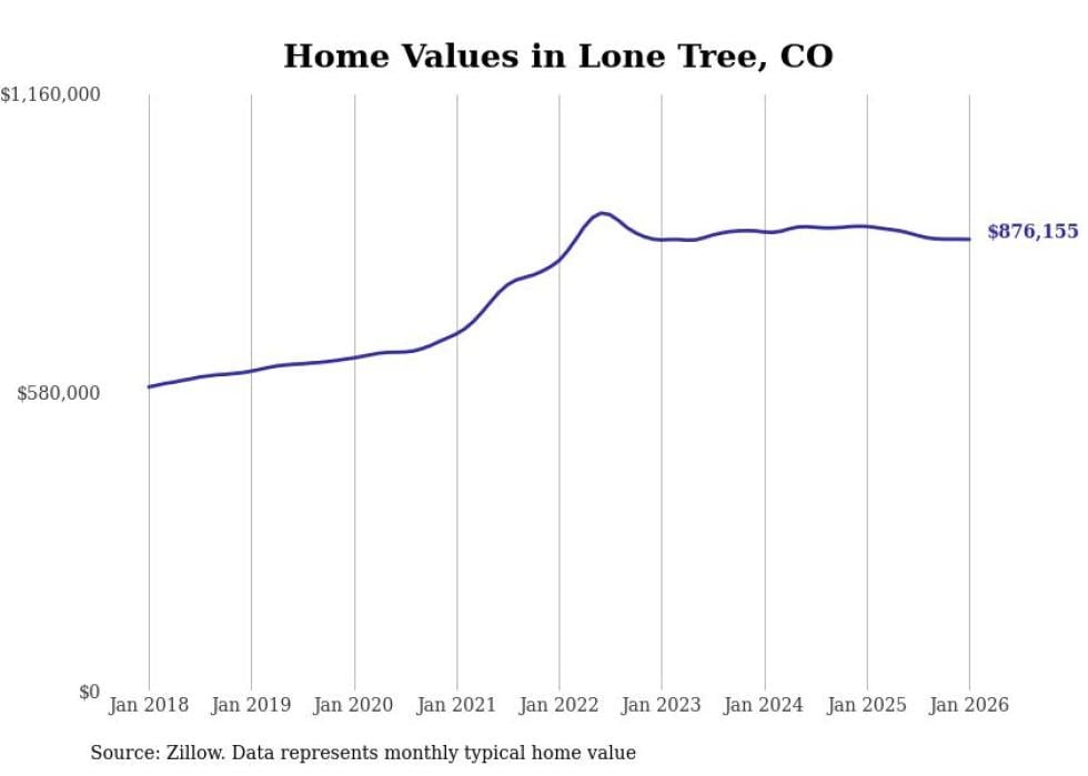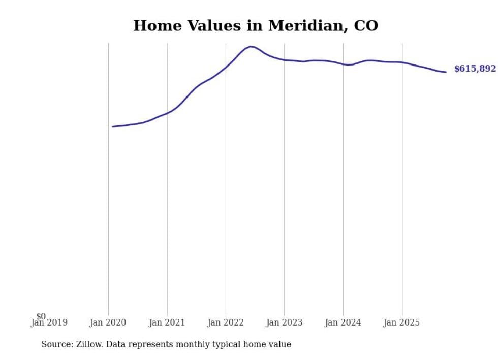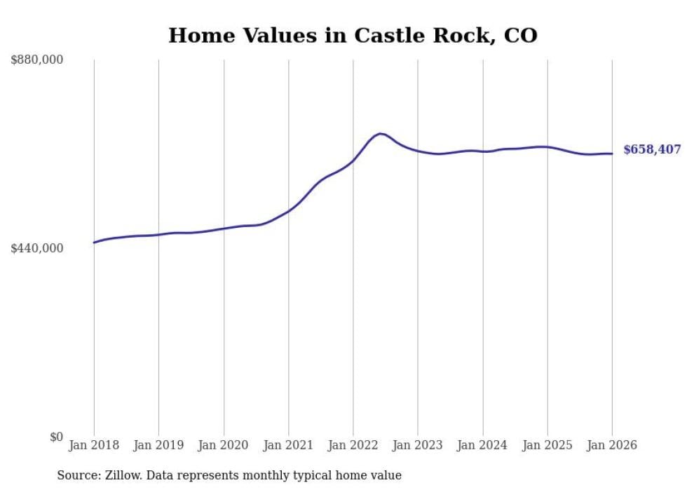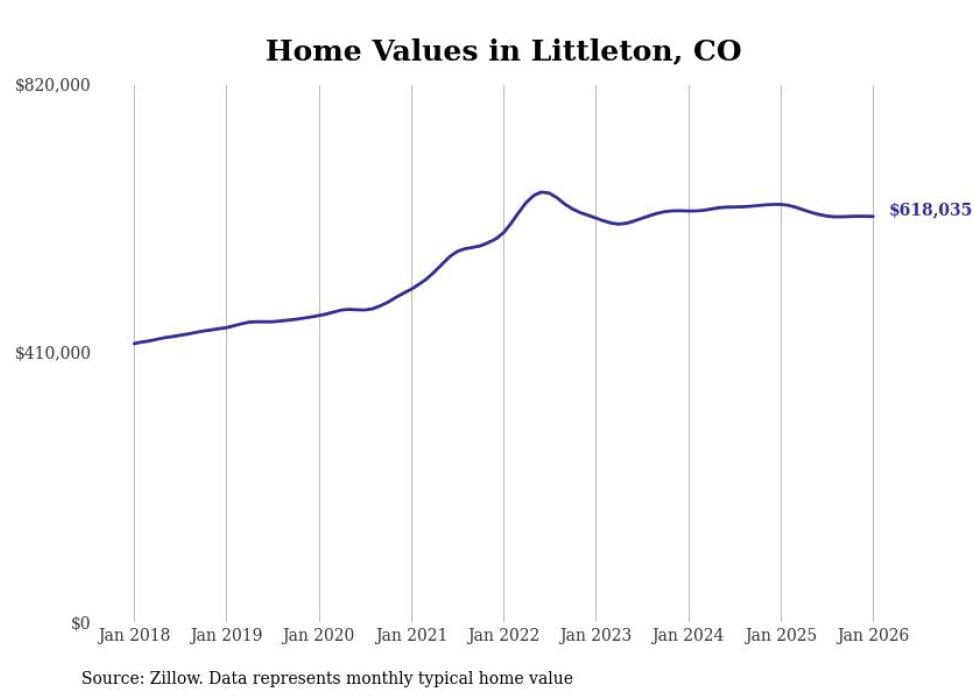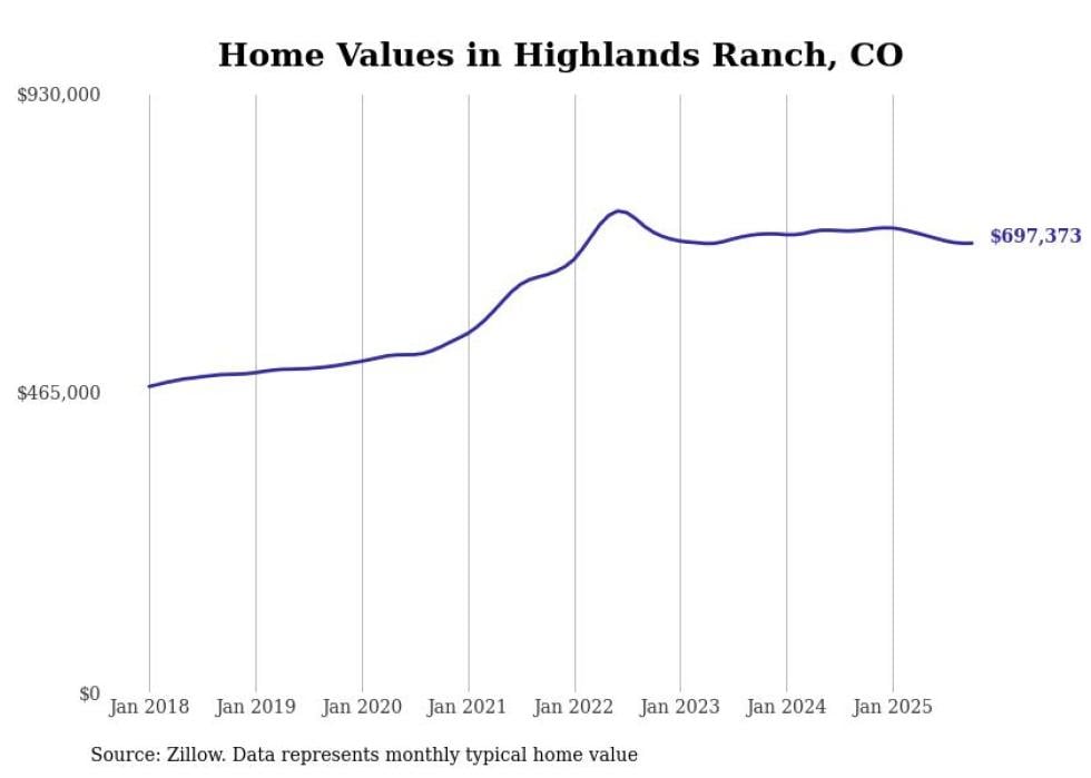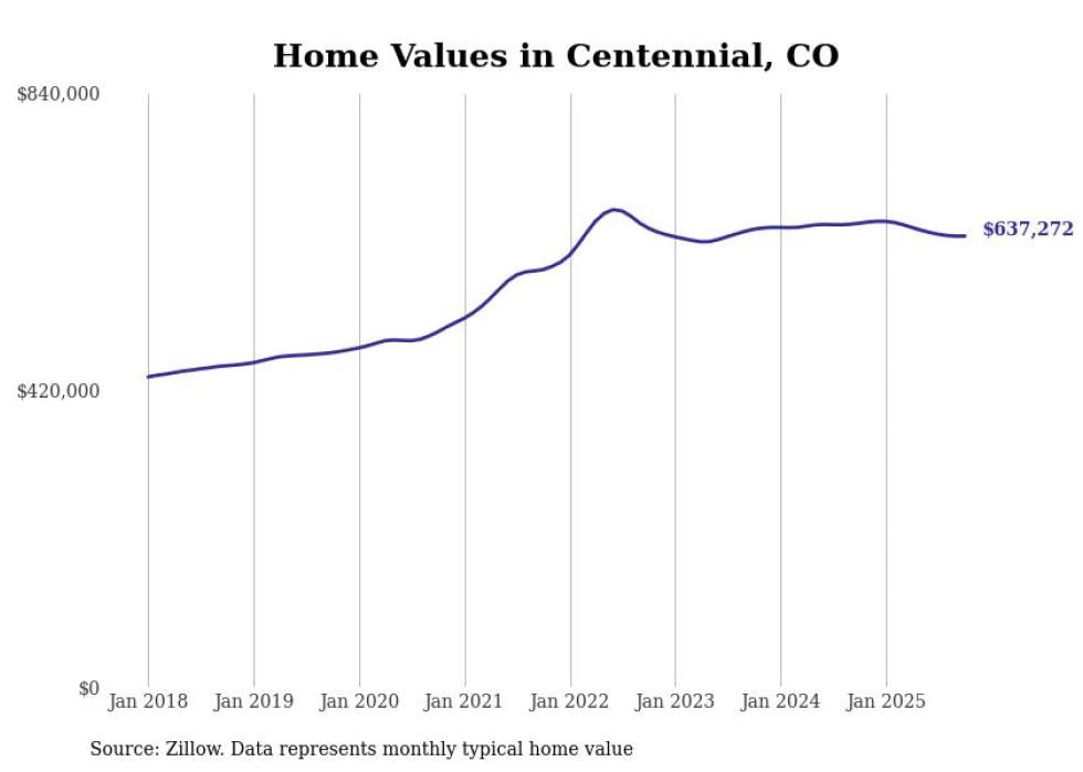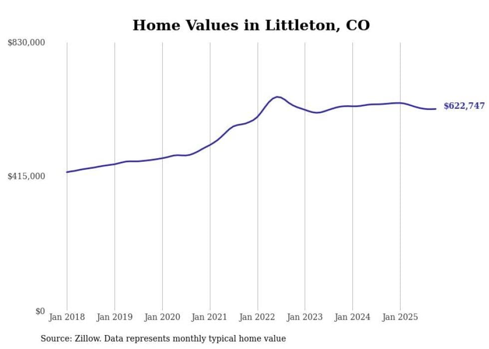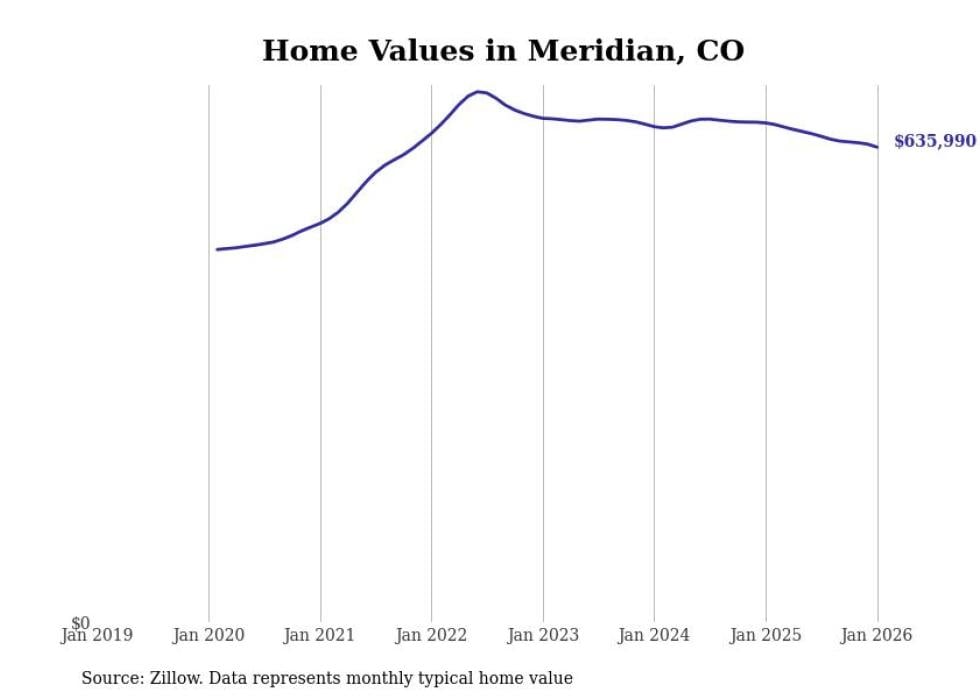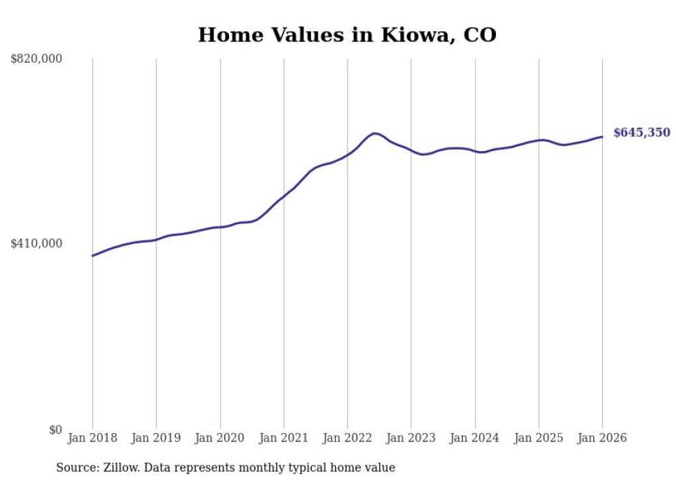 Stacker compiled a list of cities with the most expensive homes in the Denver metro area using data from Zillow. Charts show the monthly typical home value since January 2018. Data was available for 76 cities and towns.