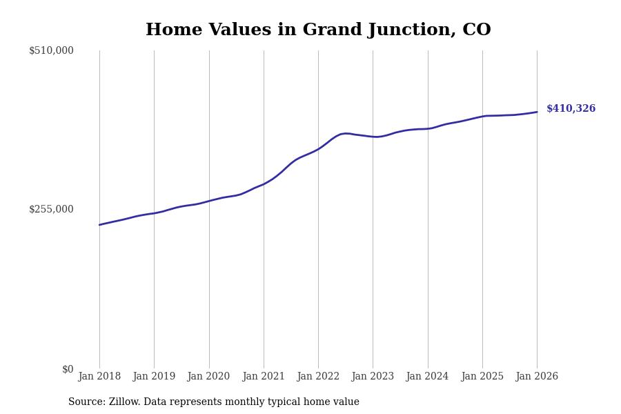 Stacker compiled a list of cities with the most expensive homes in the Grand Junction, CO metro area using data from Zillow. Charts show the monthly typical home value since January 2018.