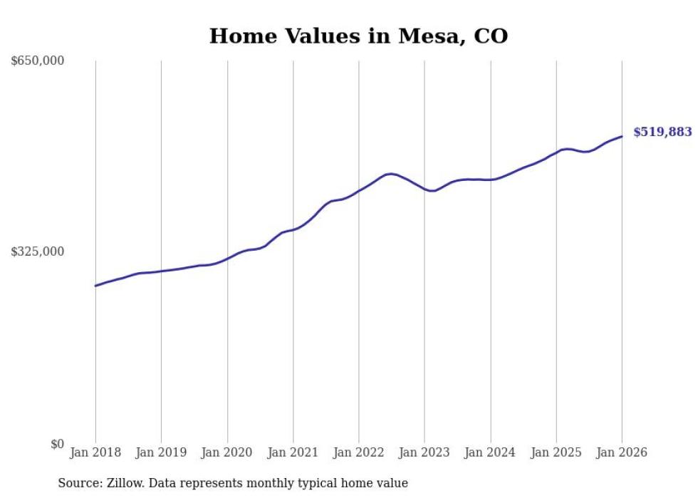 Stacker compiled a list of cities with the most expensive homes in the Grand Junction metro area using data from Zillow. Charts show the monthly typical home value since January 2018. All 11 cities and towns with data available were included in the list.