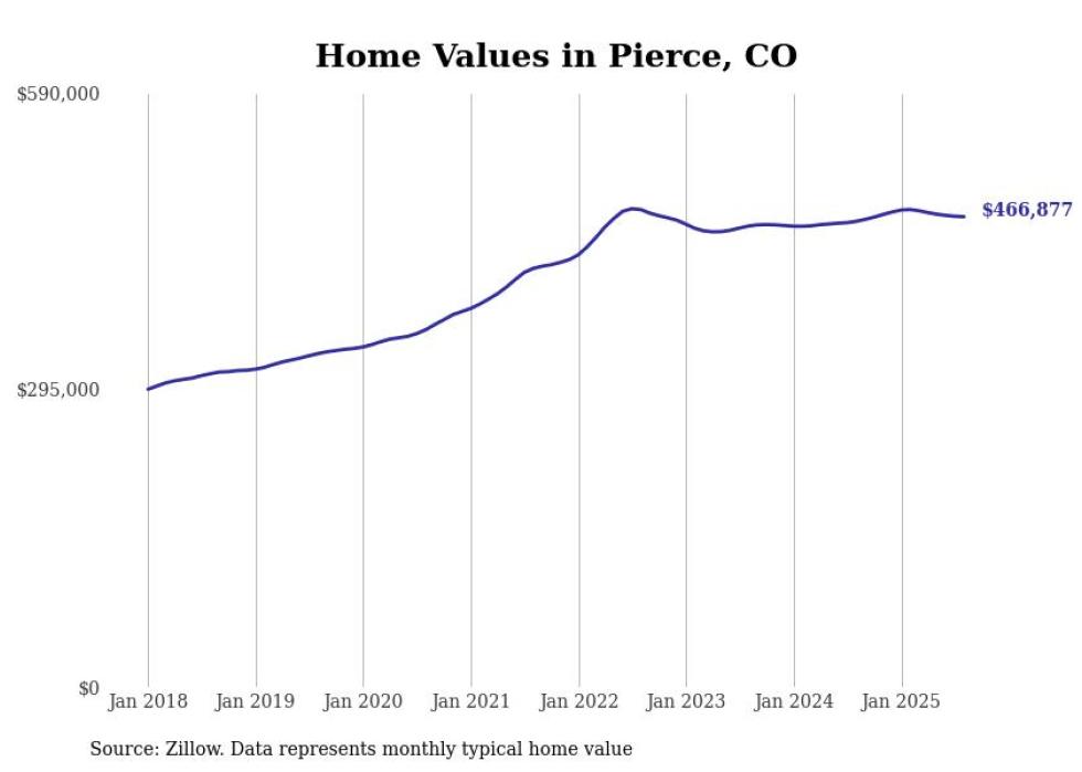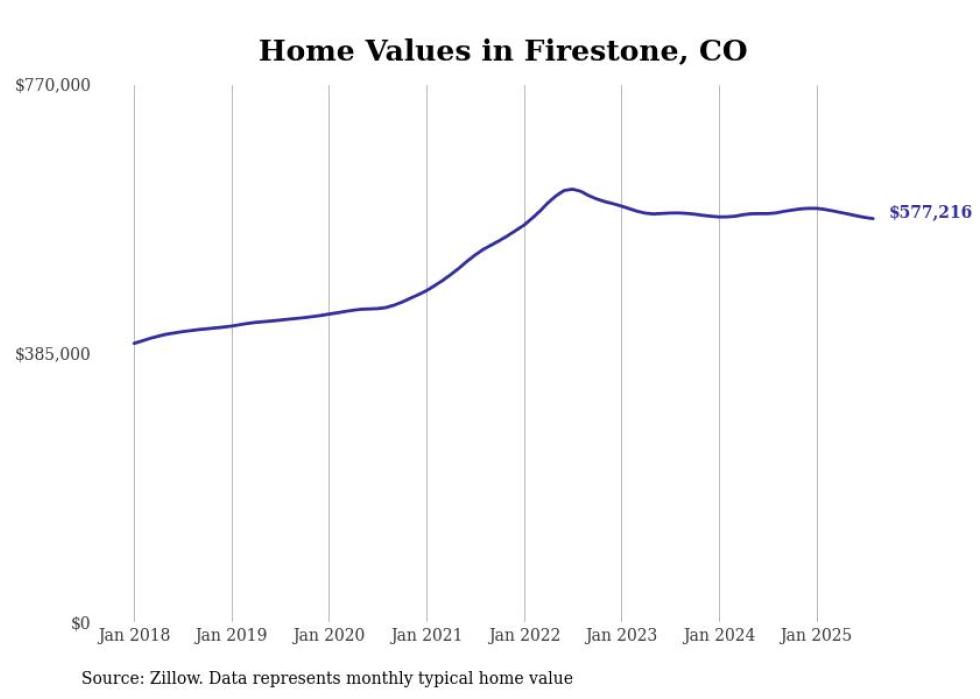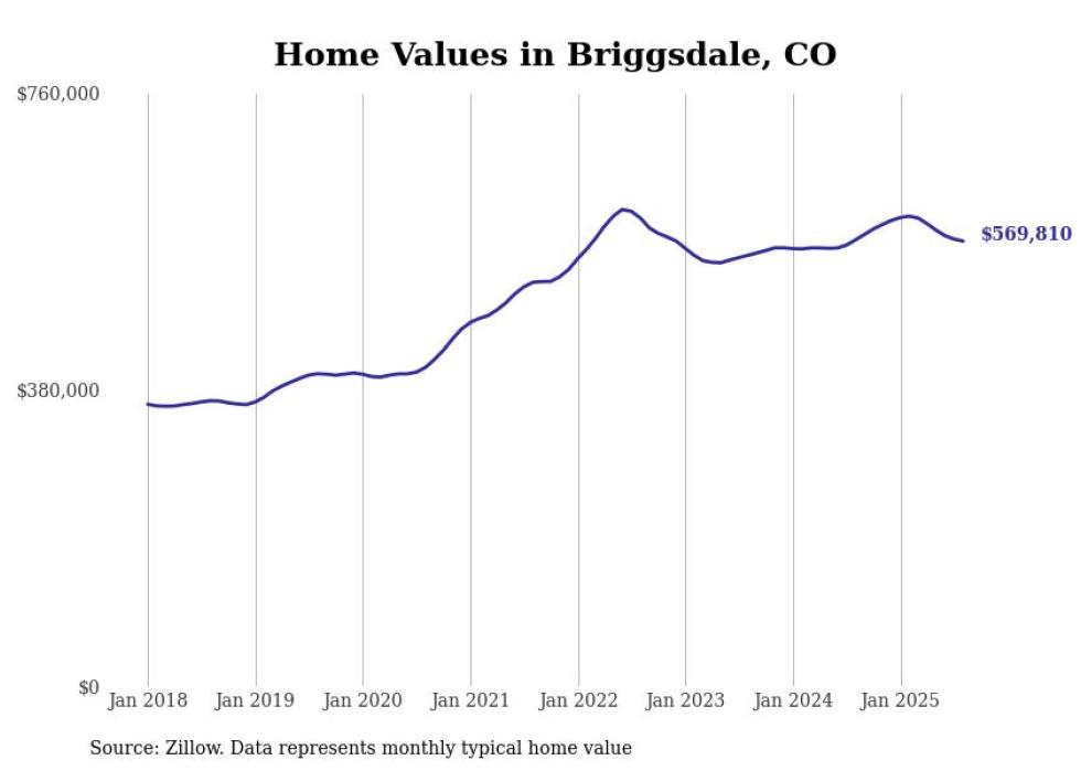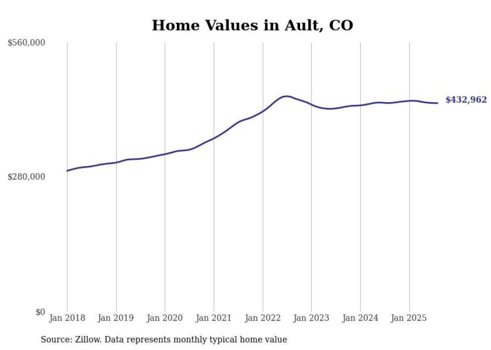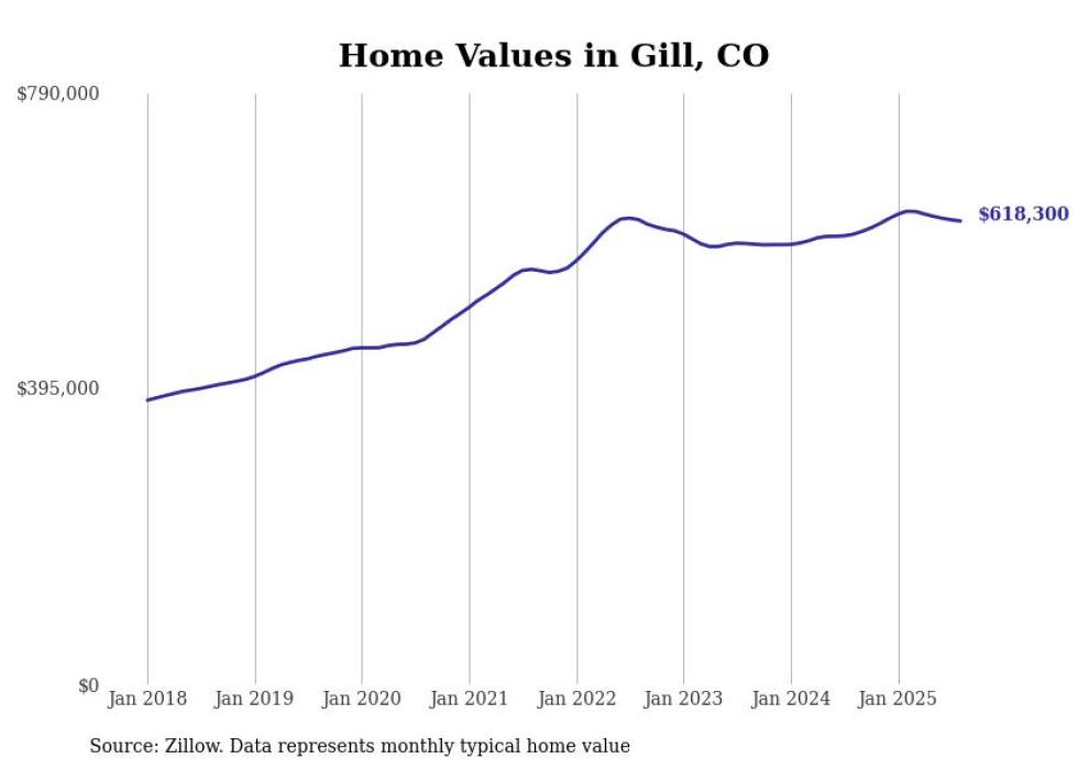 Stacker compiled a list of cities with the most expensive homes in the Greeley, CO metro area using data from Zillow. Charts show the monthly typical home value since January 2018.