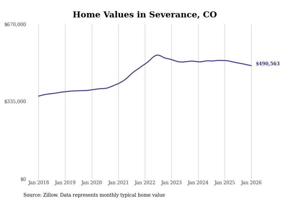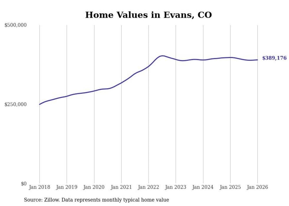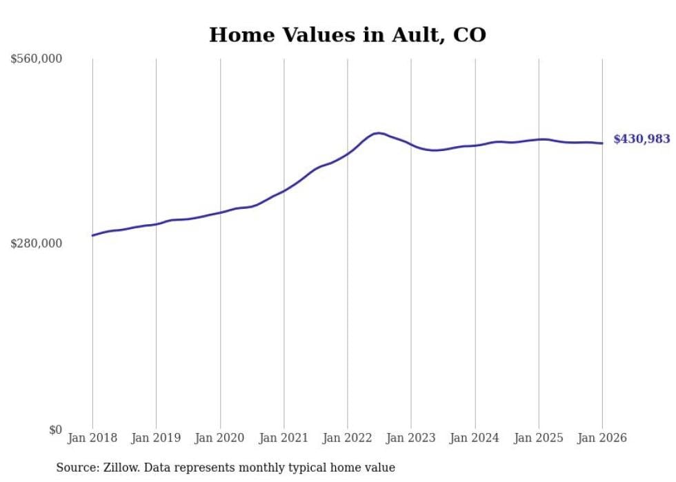 Stacker compiled a list of cities with the most expensive homes in the Greeley metro area using data from Zillow. Charts show the monthly typical home value since January 2018. All 25 cities and towns with data available were included in the list.