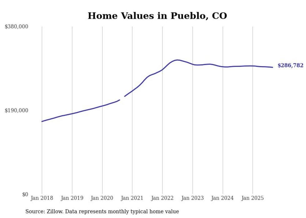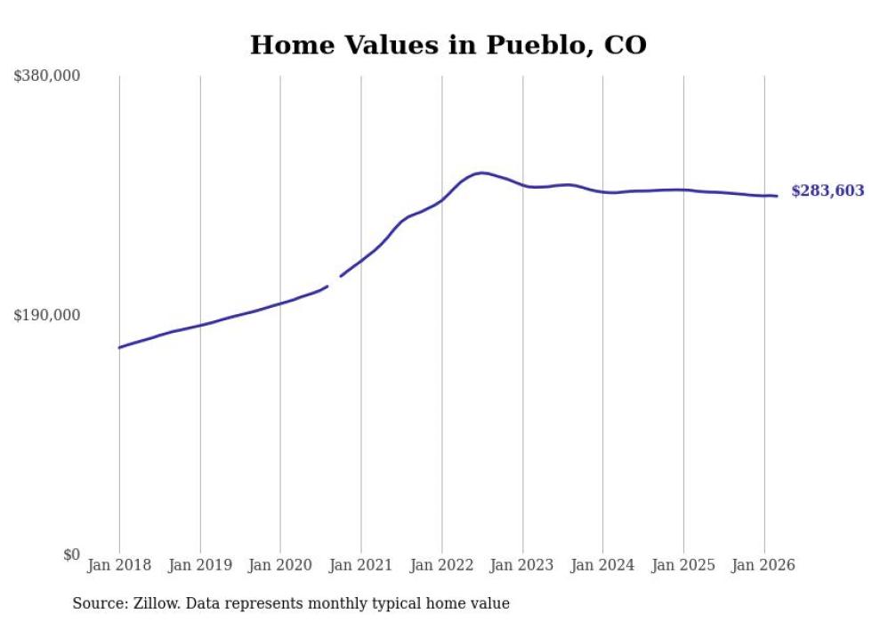 Stacker compiled a list of cities with the most expensive homes in the Pueblo metro area using data from Zillow. Charts show the monthly typical home value since January 2018. All 7 cities and towns with data available were included in the list.