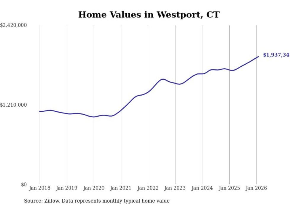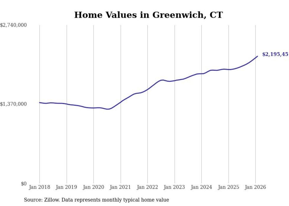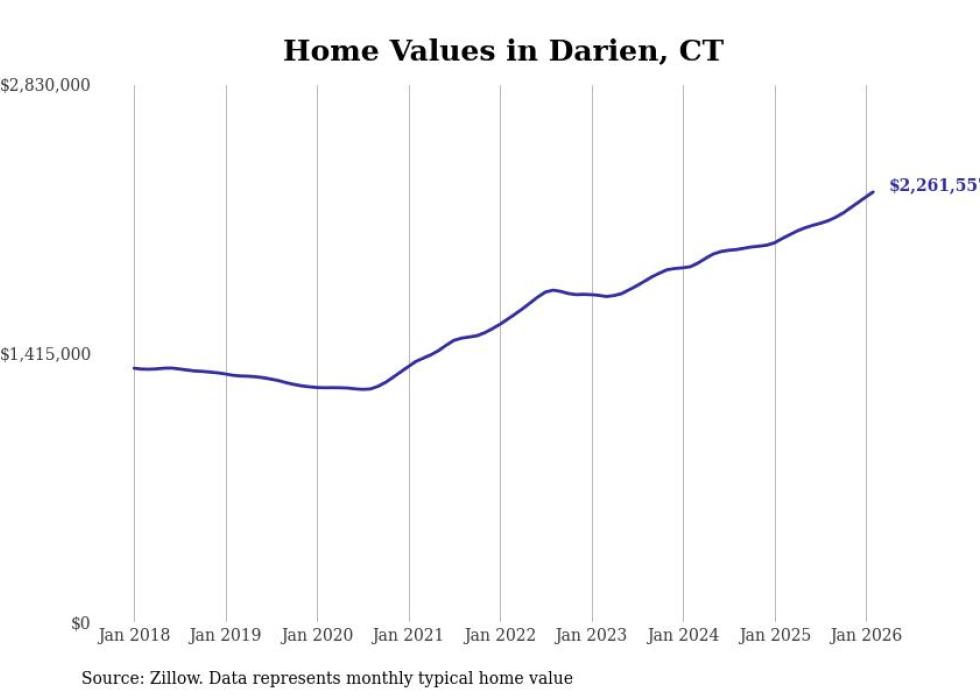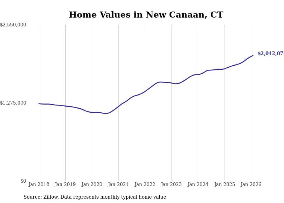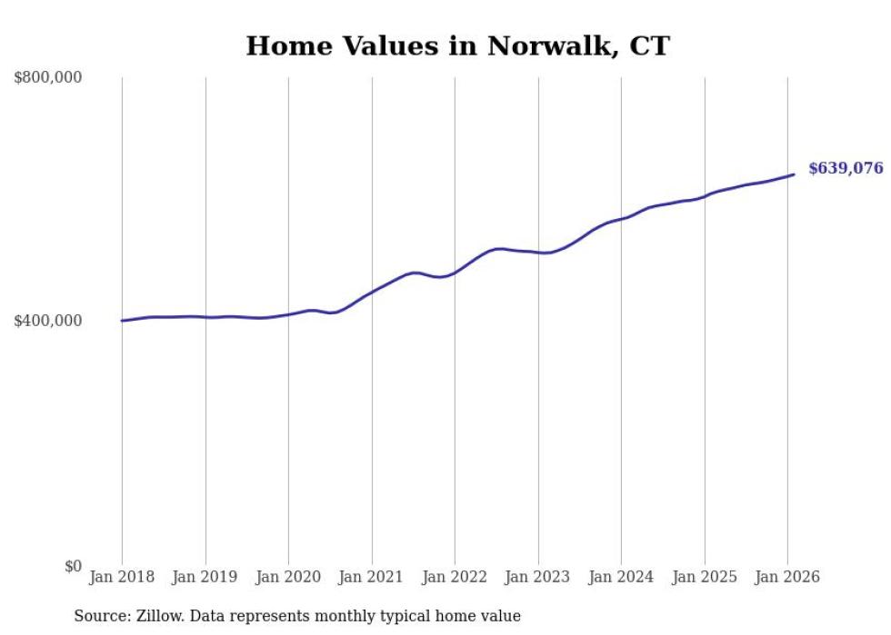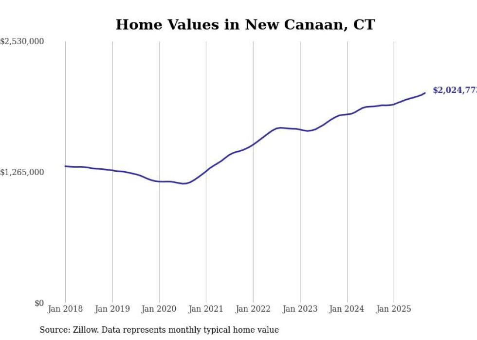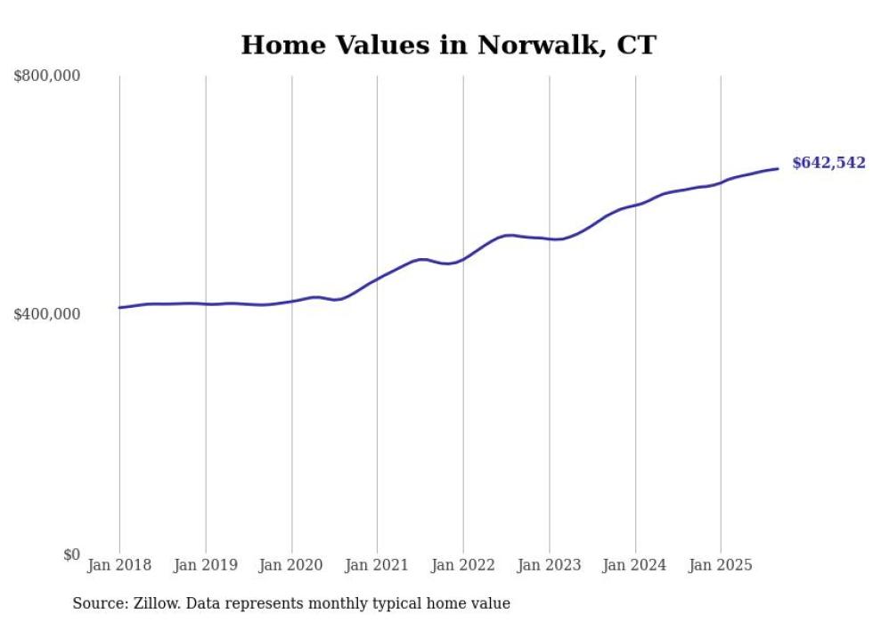 Stacker compiled a list of cities with the most expensive homes in the Bridgeport-Stamford-Norwalk, CT metro area using data from Zillow. Charts show the monthly typical home value since January 2018.
