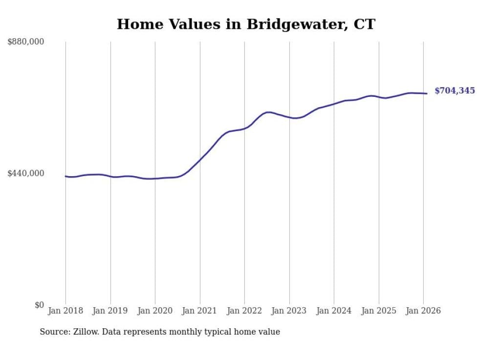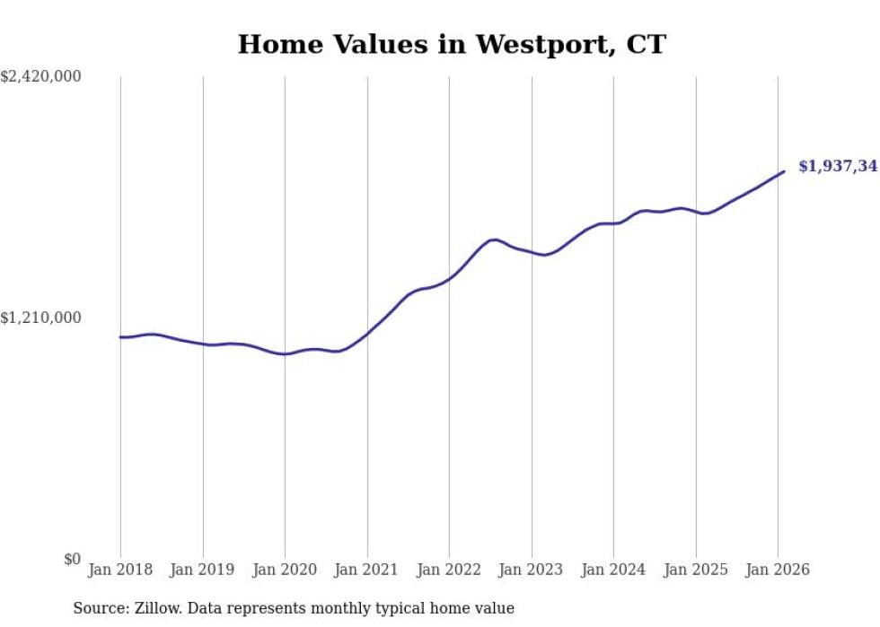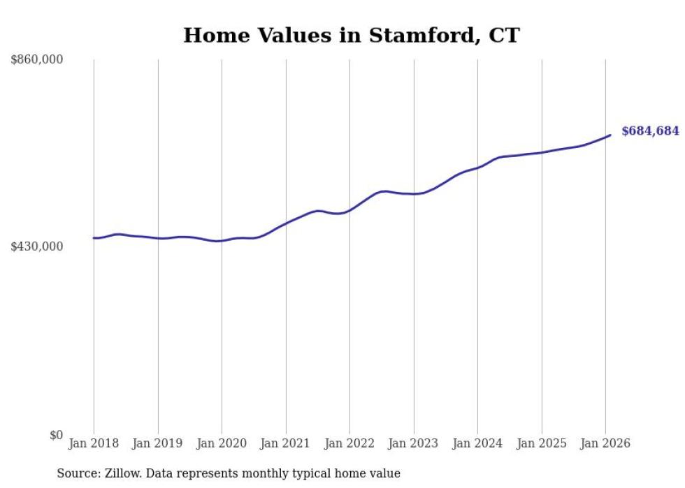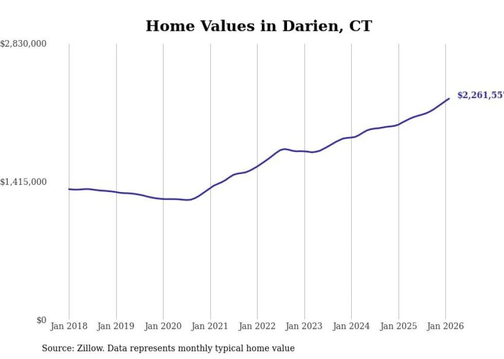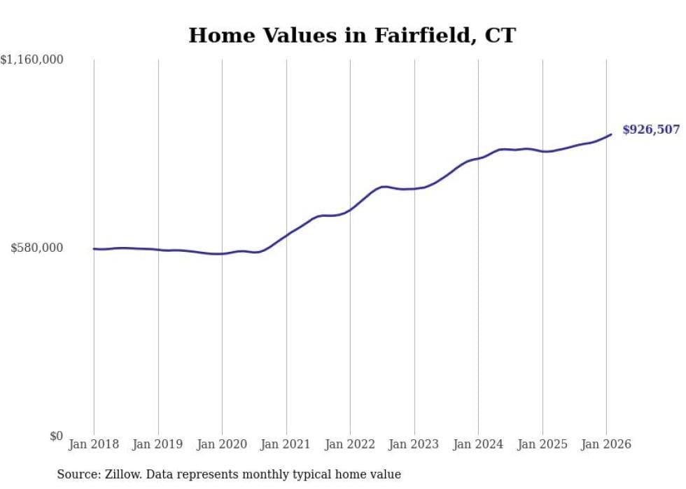 Stacker compiled a list of cities with the most expensive homes in Connecticut using data from Zillow. Cities are ranked by the Zillow Home Values Index for all homes as of February 2026. The charts in this story were created automatically using Matplotlib.
