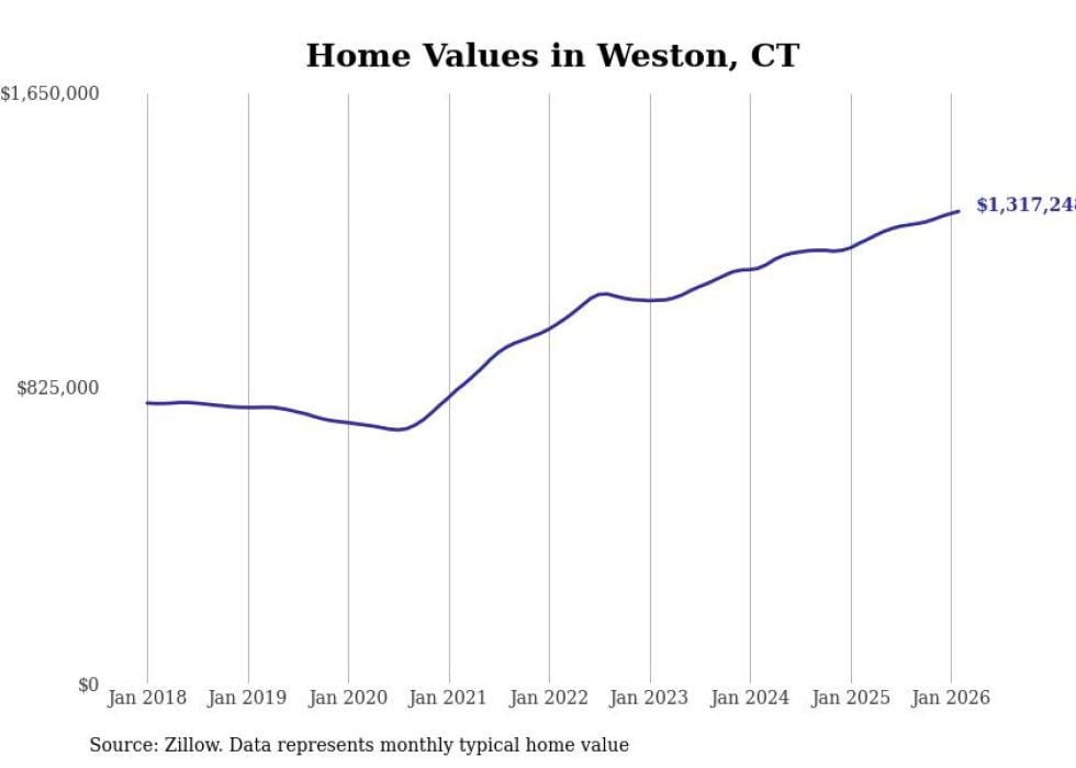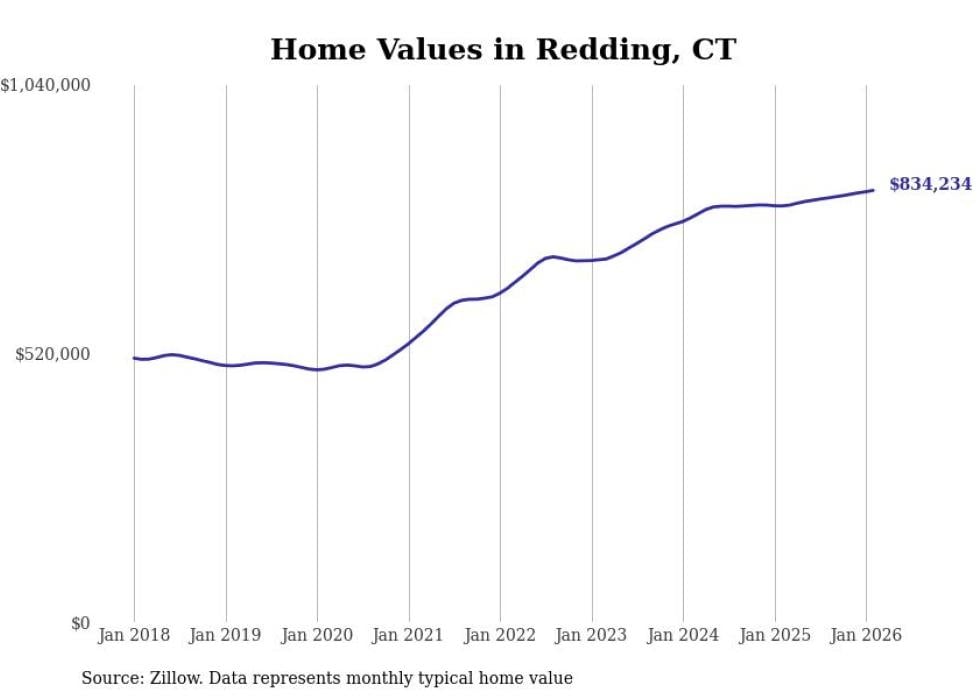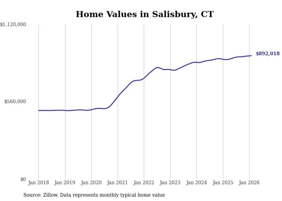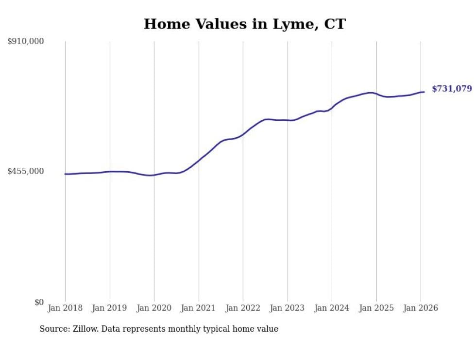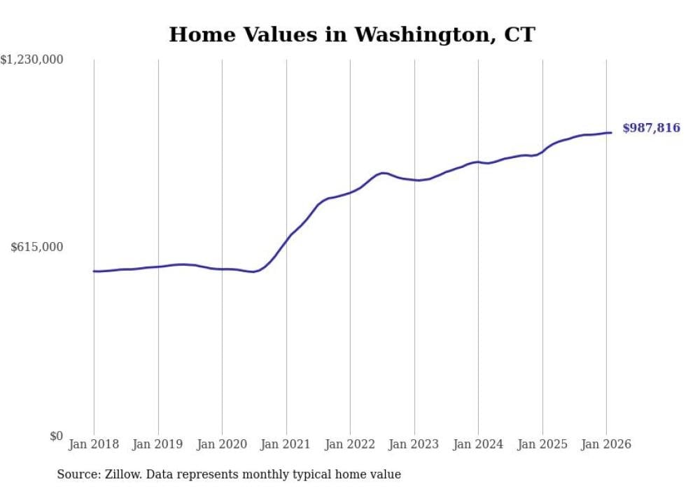 Stacker compiled a list of cities with the most expensive homes in Connecticut using data from Zillow. Cities are ranked by the Zillow Home Values Index for all homes as of February 2026. The charts in this story were created automatically using Matplotlib.