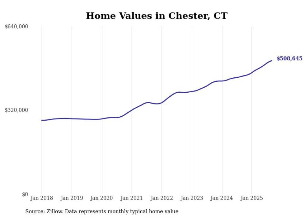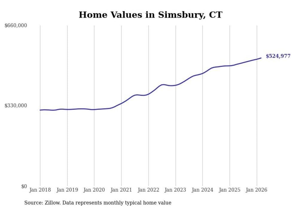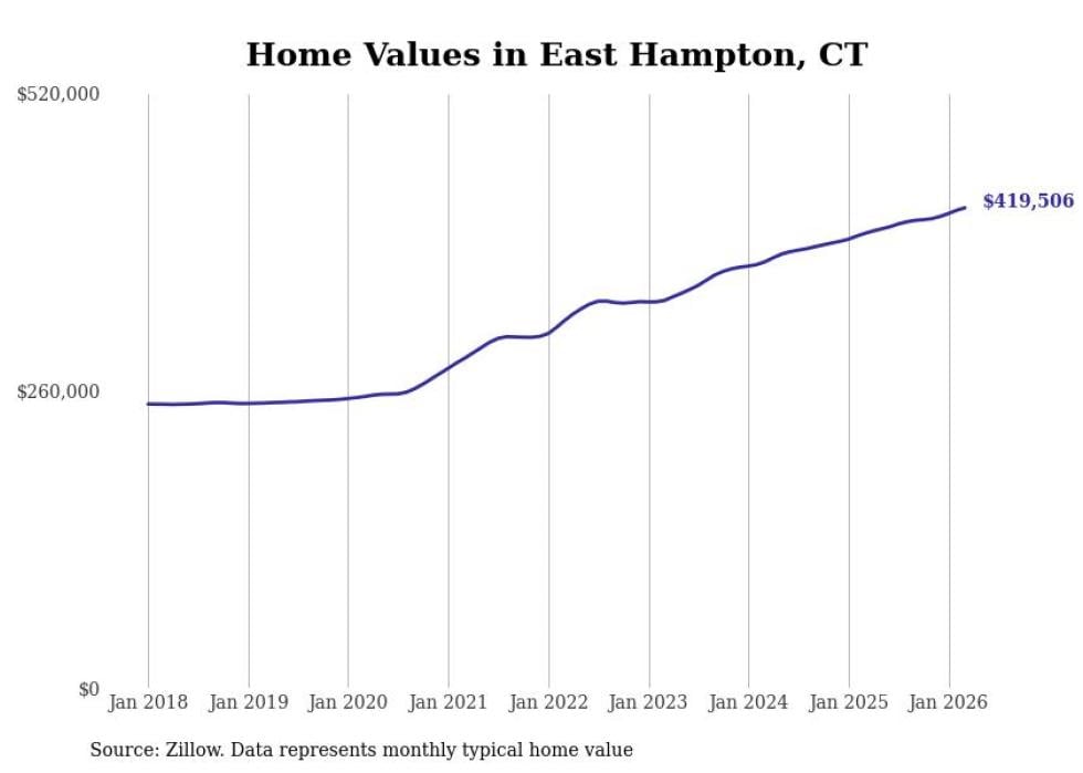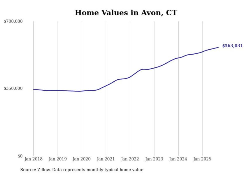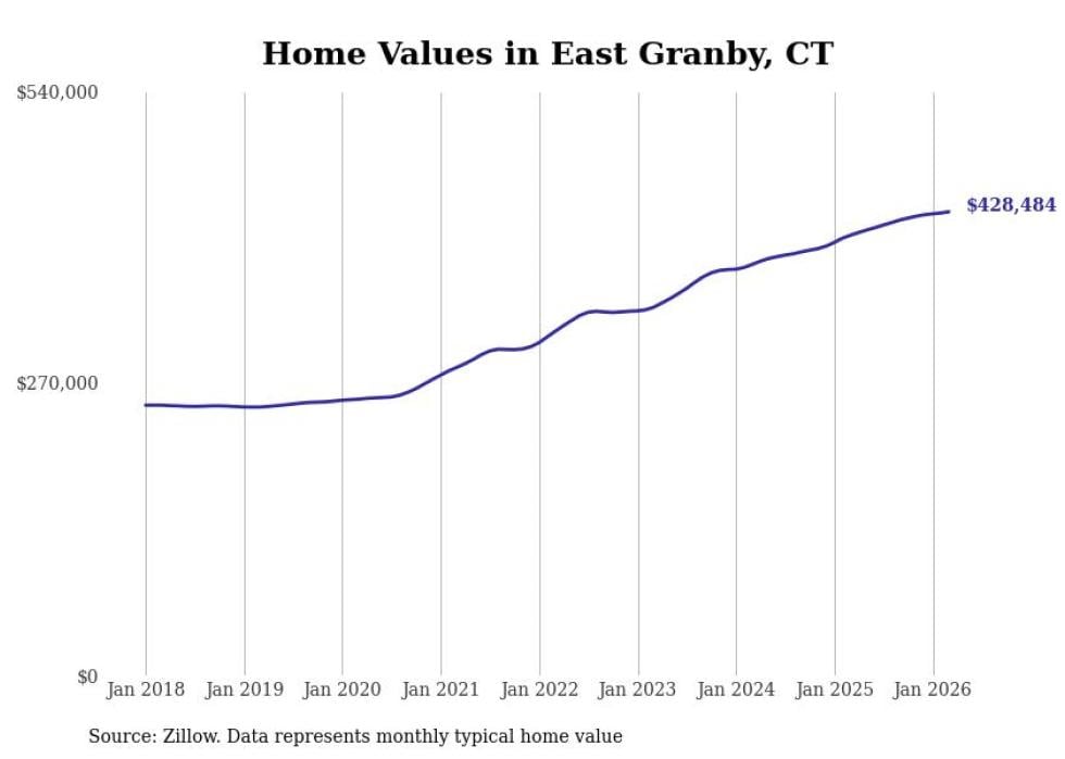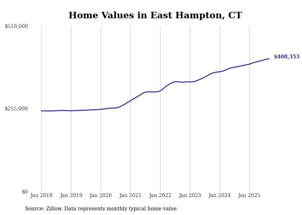 Stacker compiled a list of cities with the most expensive homes in the Hartford-East Hartford-Middletown, CT metro area using data from Zillow. Charts show the monthly typical home value since January 2018.