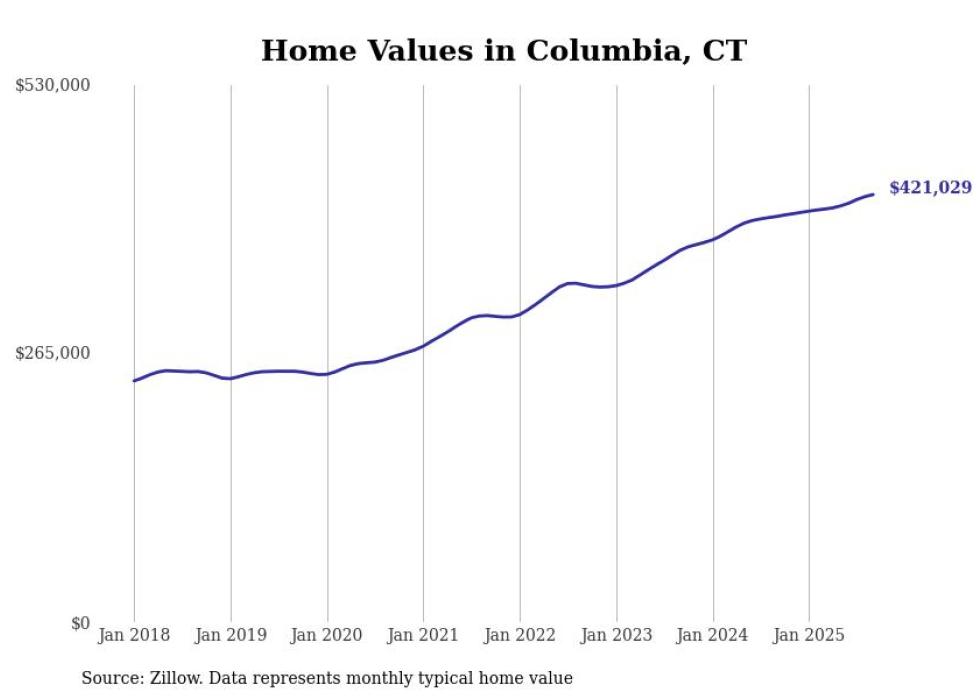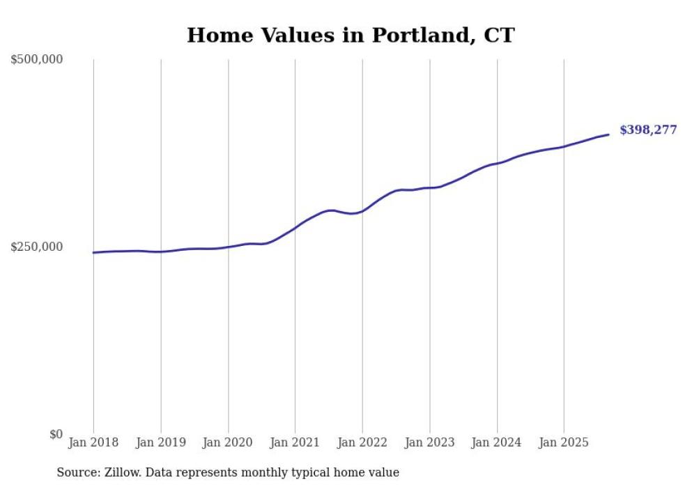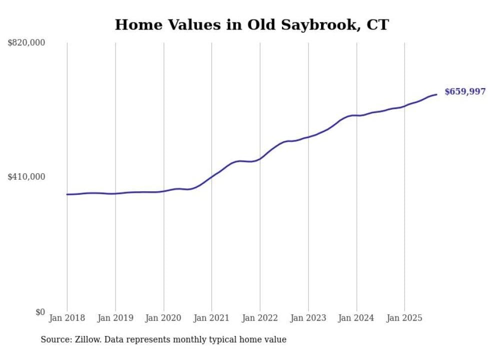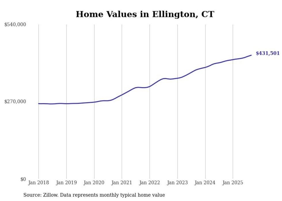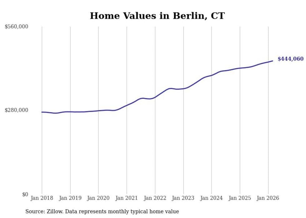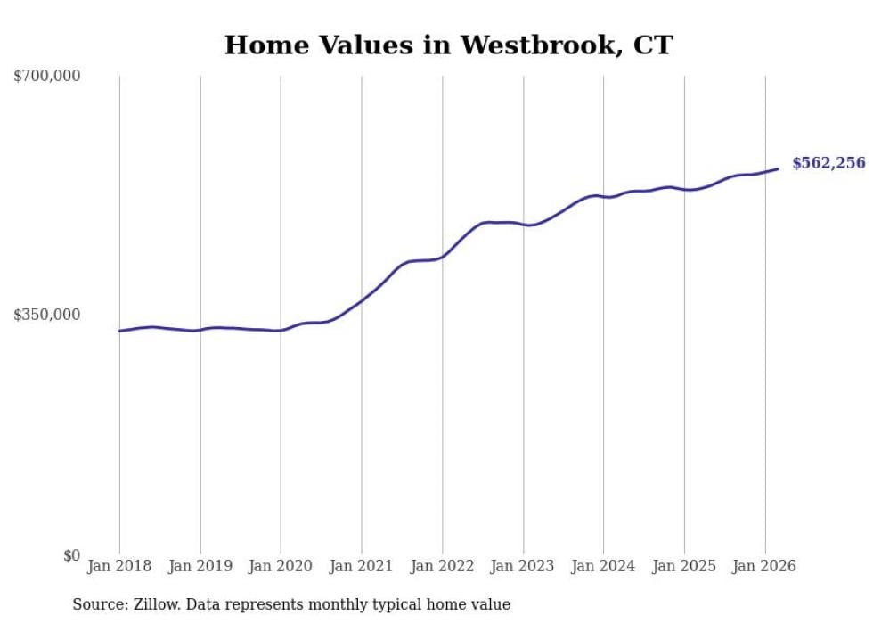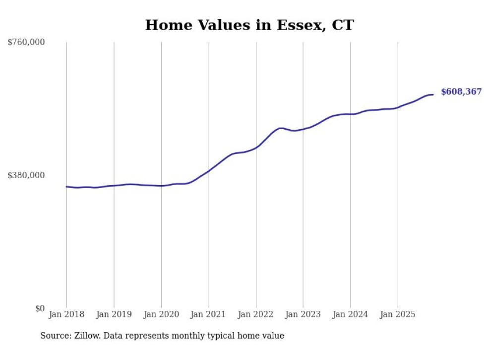 Stacker compiled a list of cities with the most expensive homes in the Hartford-East Hartford-Middletown, CT metro area using data from Zillow. Charts show the monthly typical home value since January 2018.