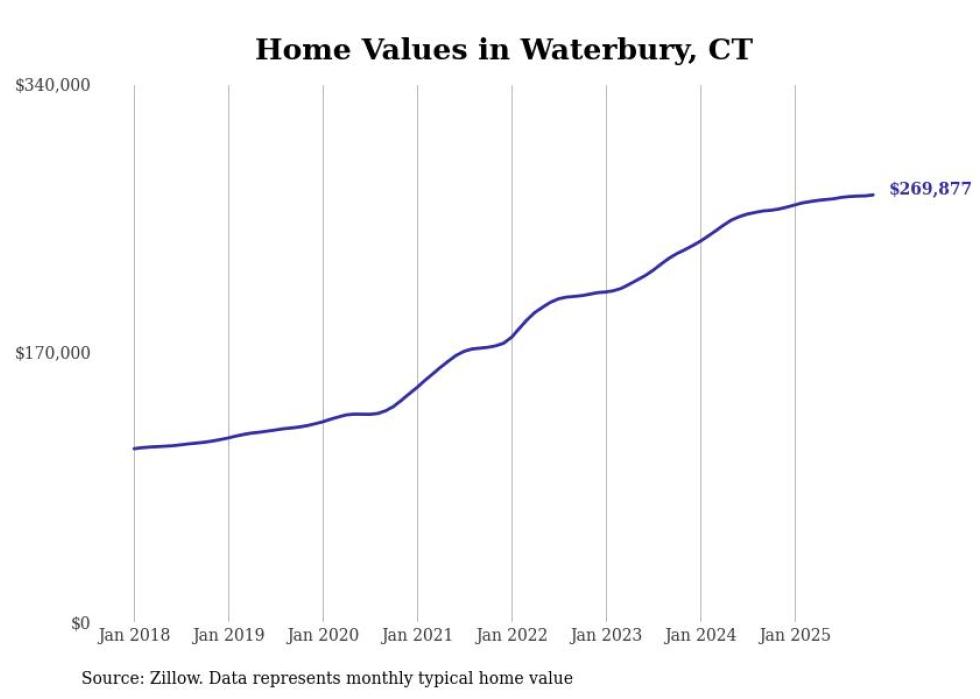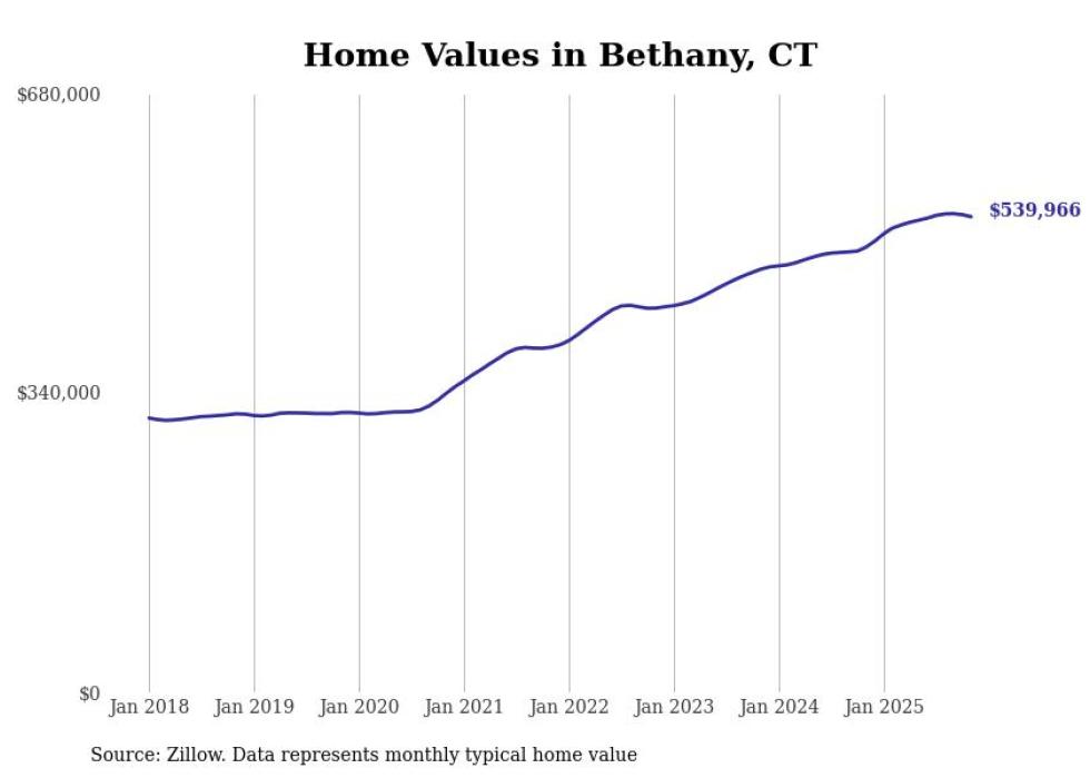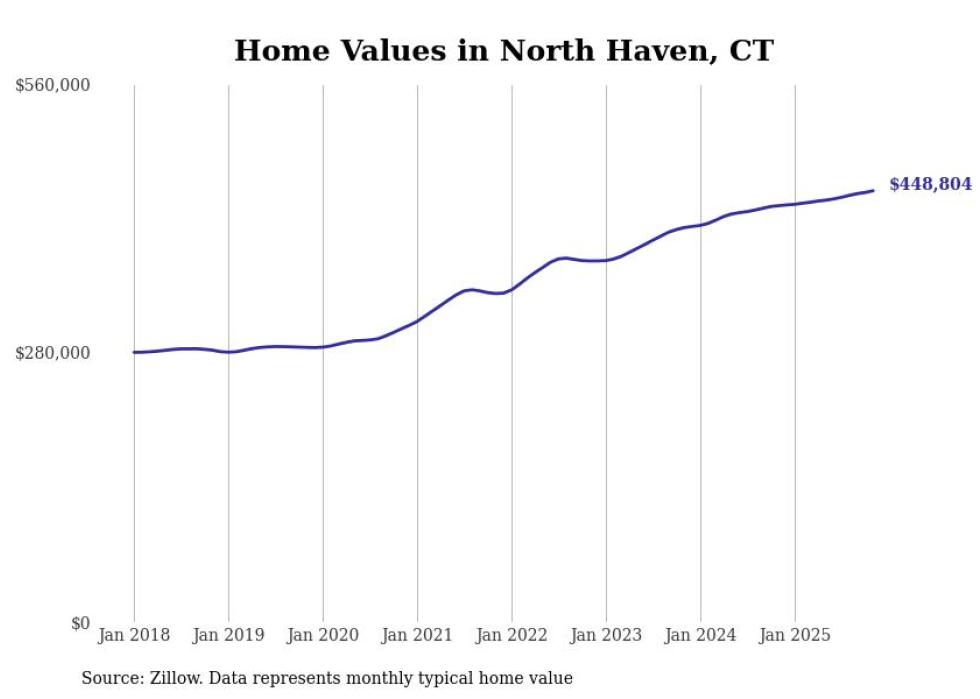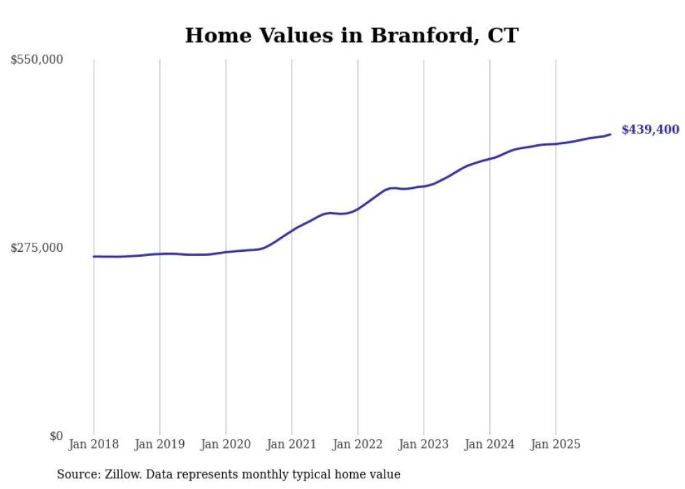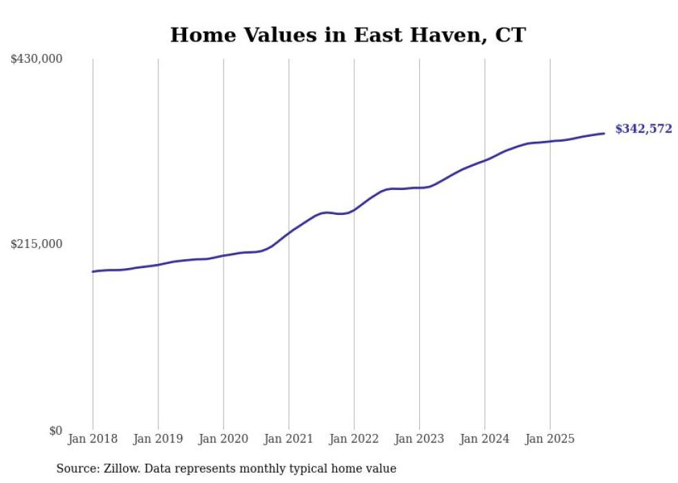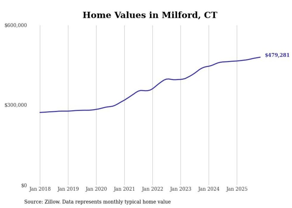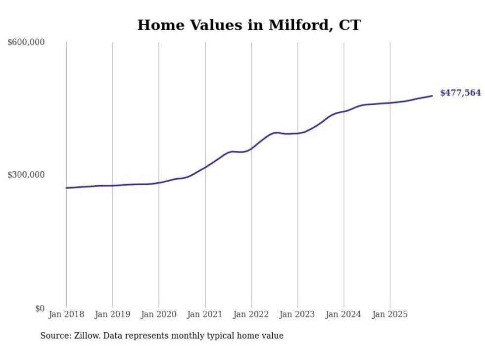 Stacker compiled a list of cities with the most expensive homes in the New Haven-Milford, CT metro area using data from Zillow. Charts show the monthly typical home value since January 2018.