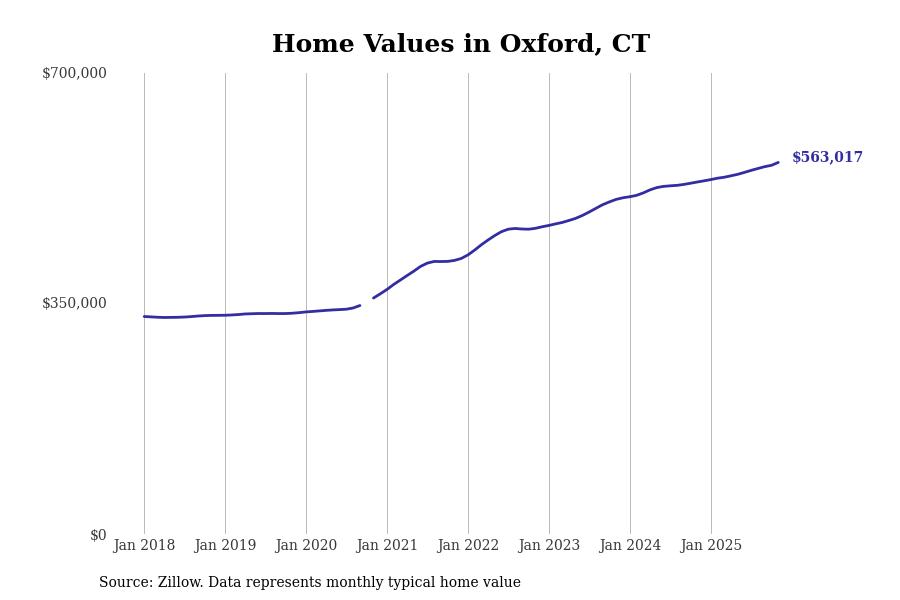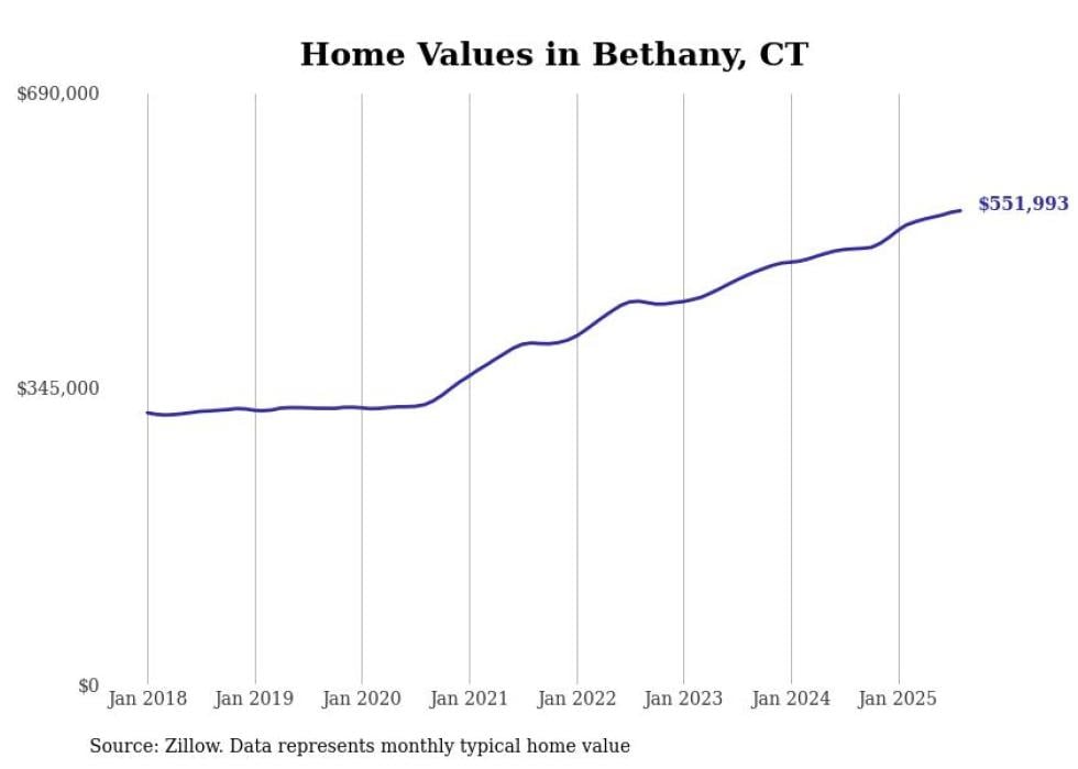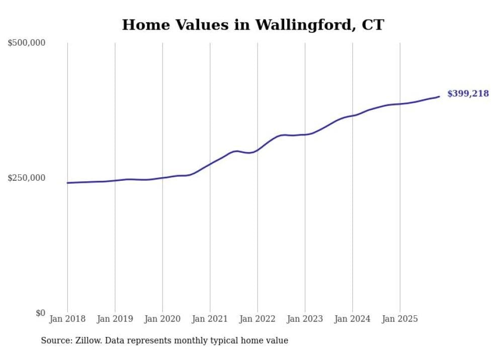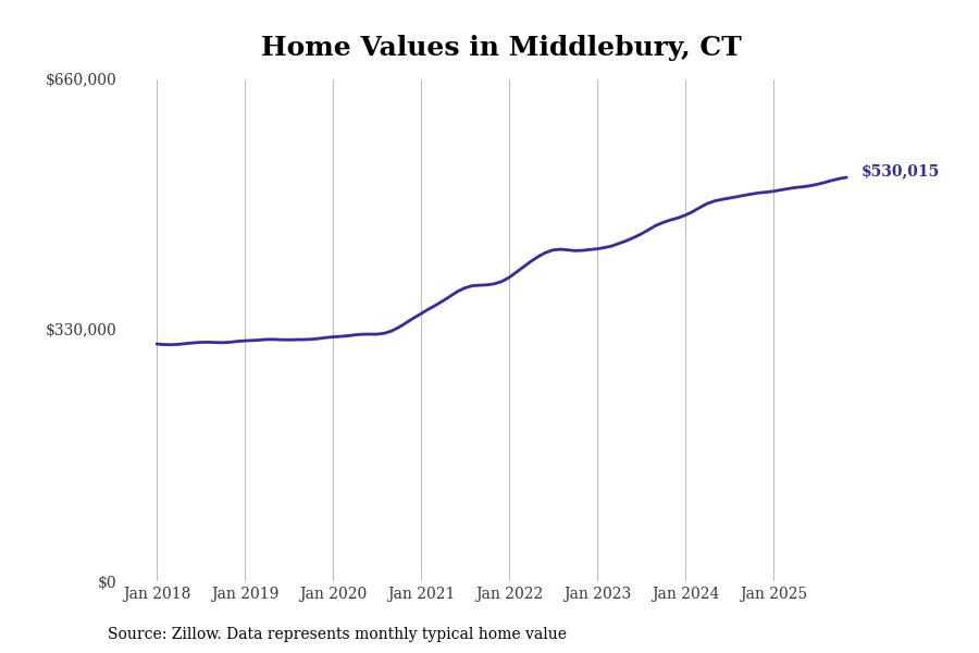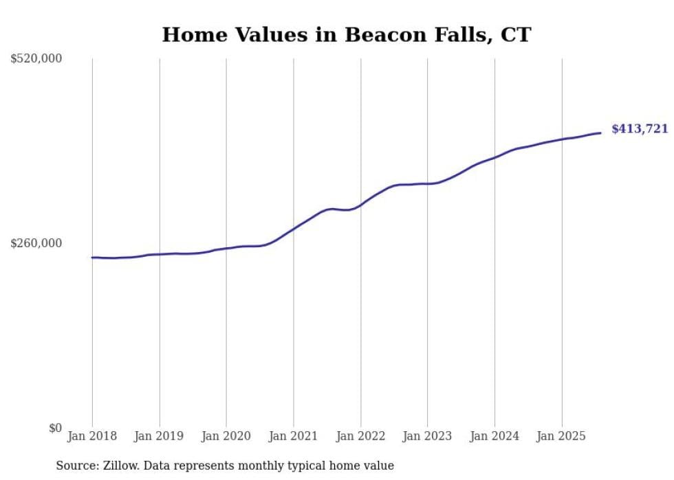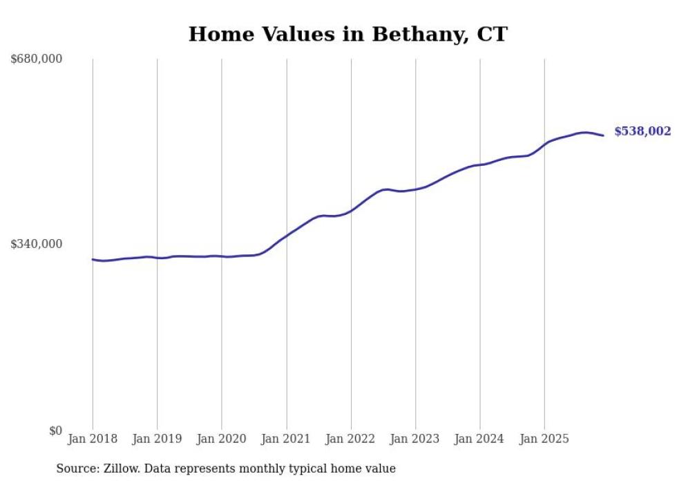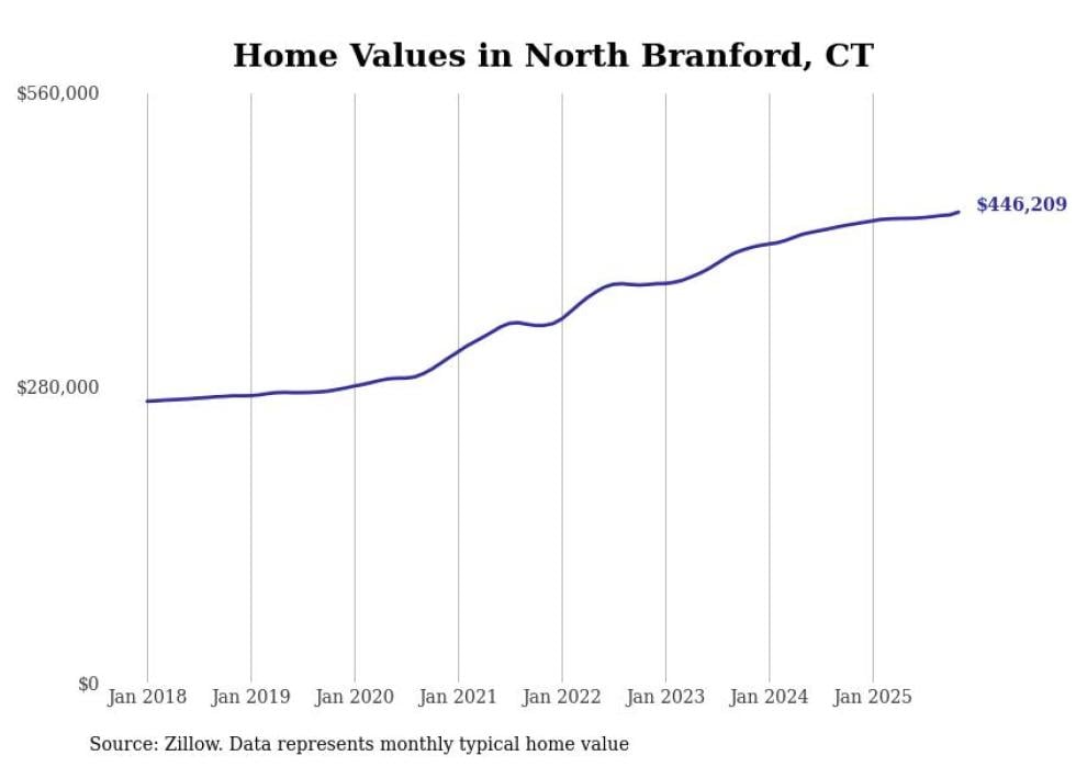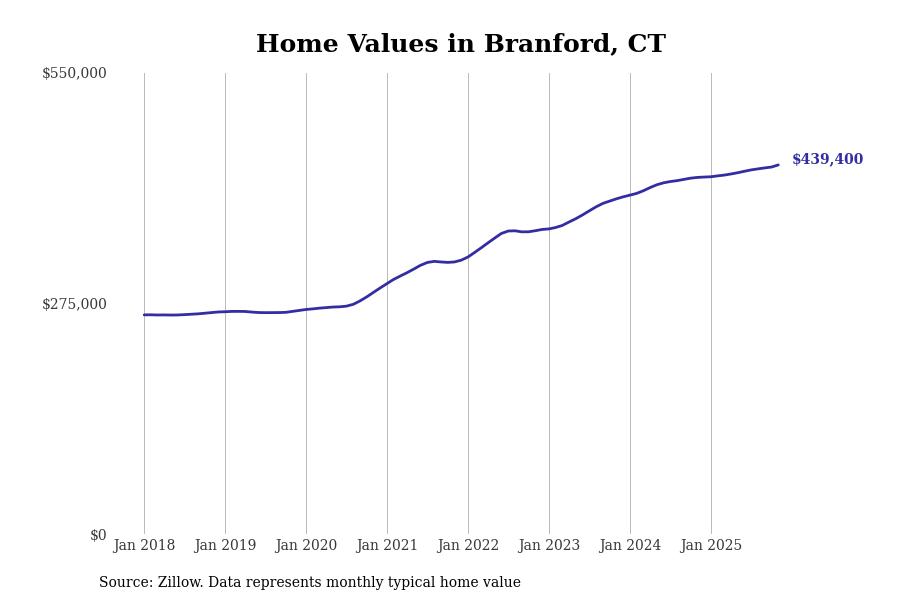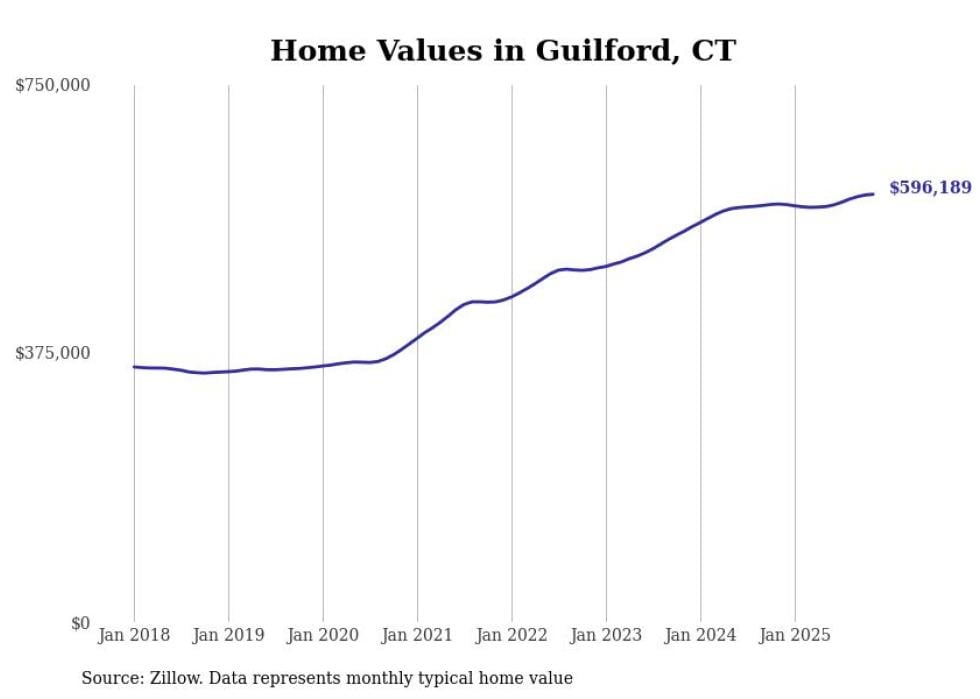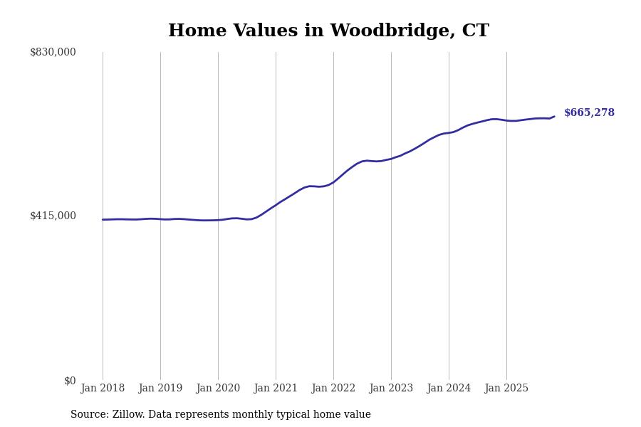 Stacker compiled a list of cities with the most expensive homes in the New Haven metro area using data from Zillow. Charts show the monthly typical home value since January 2018. All 27 cities and towns with data available were included in the list.