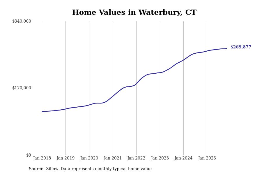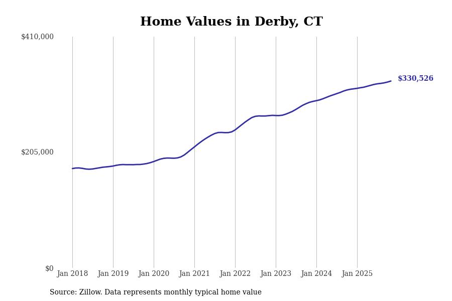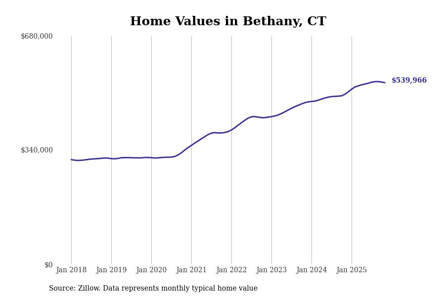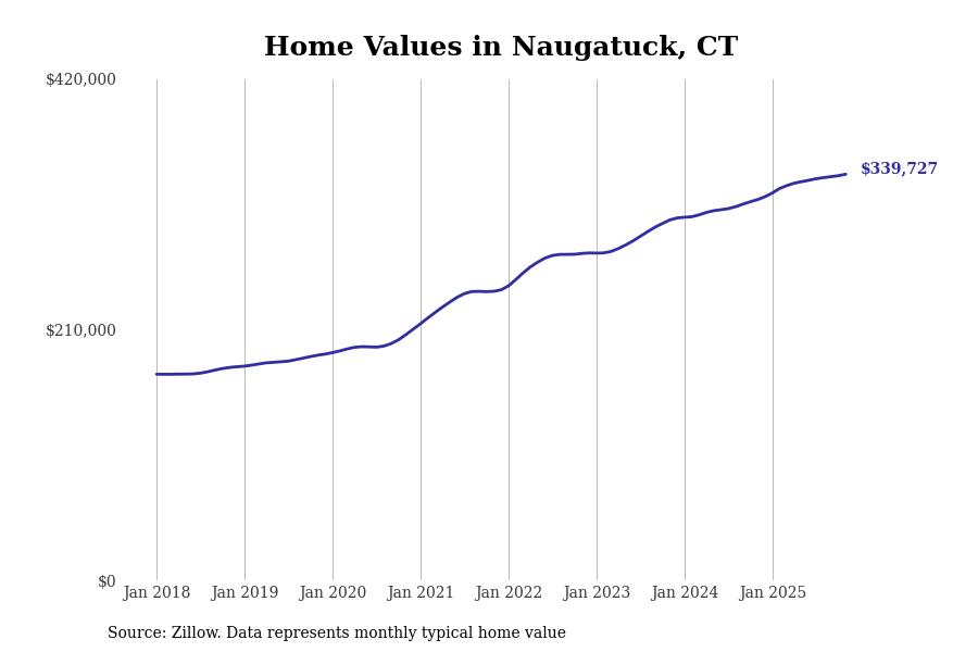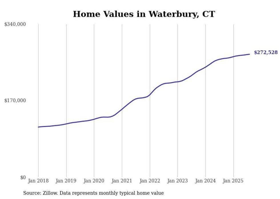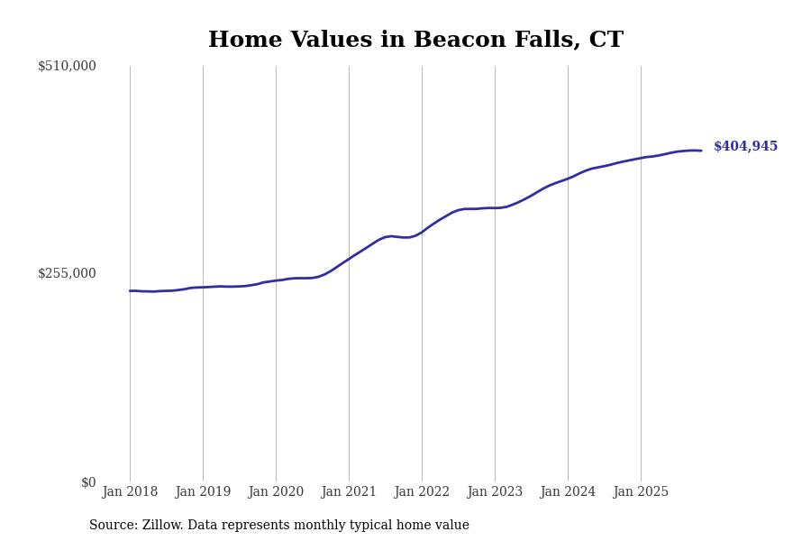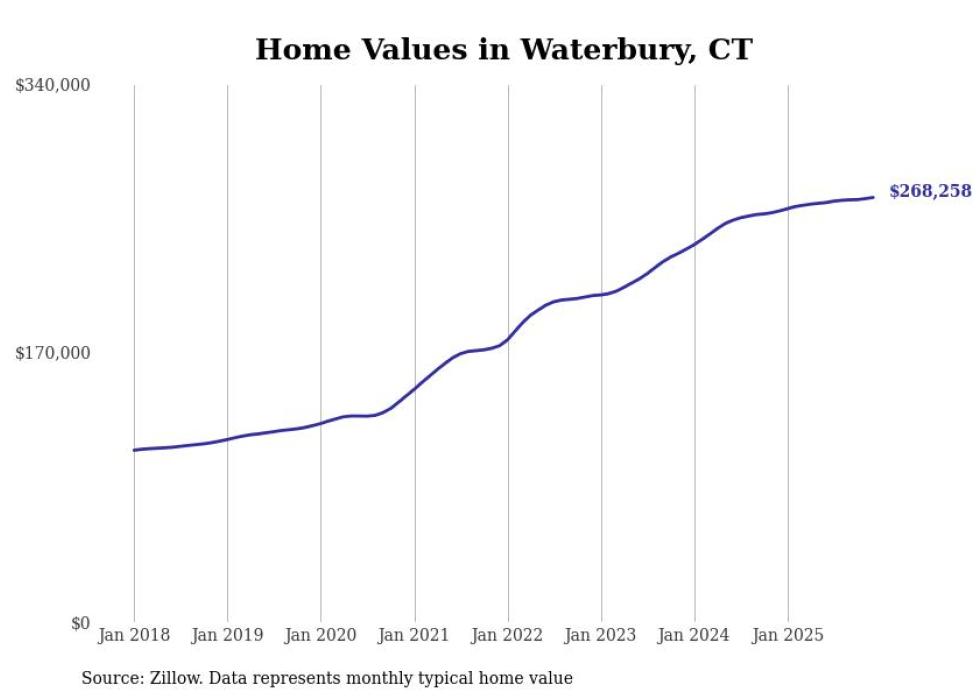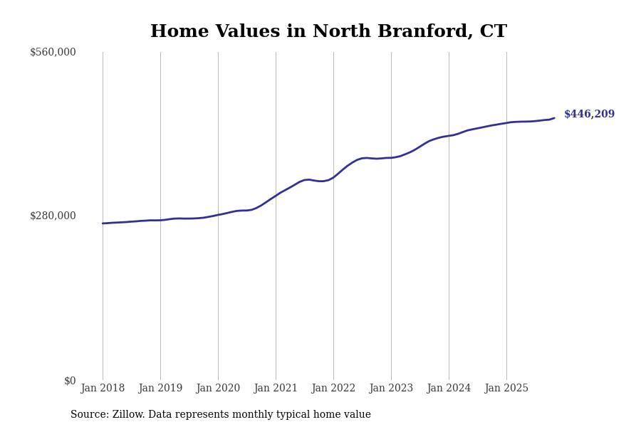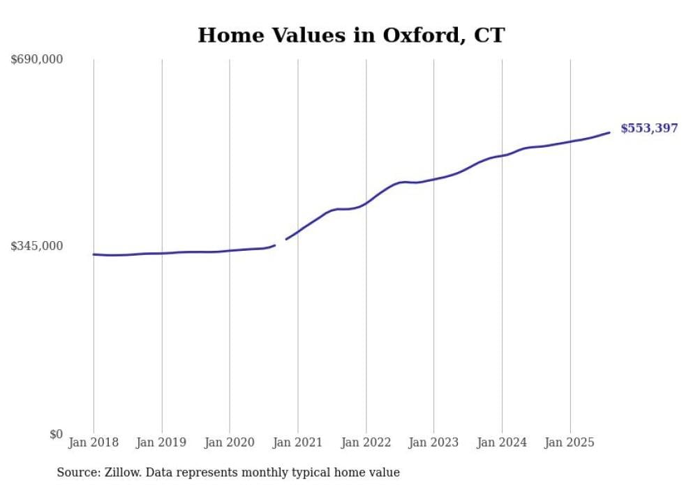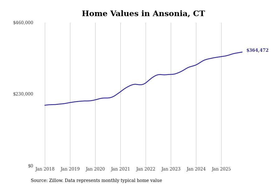 Stacker compiled a list of cities with the most expensive homes in the New Haven metro area using data from Zillow. Charts show the monthly typical home value since January 2018. All 27 cities and towns with data available were included in the list.