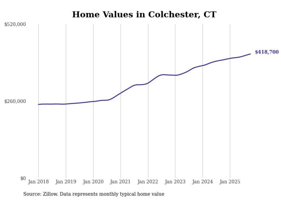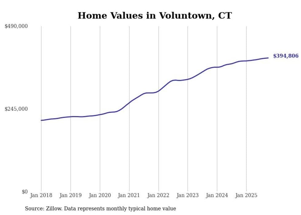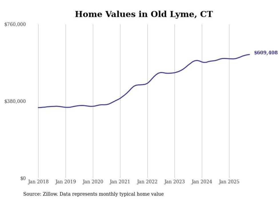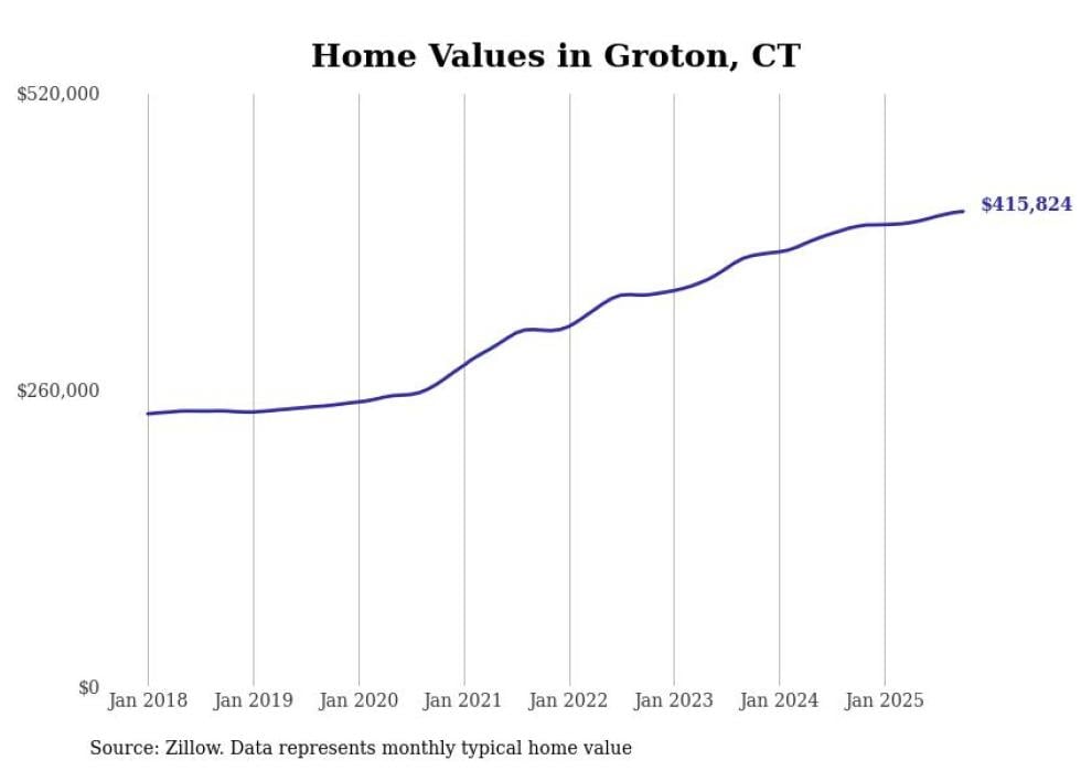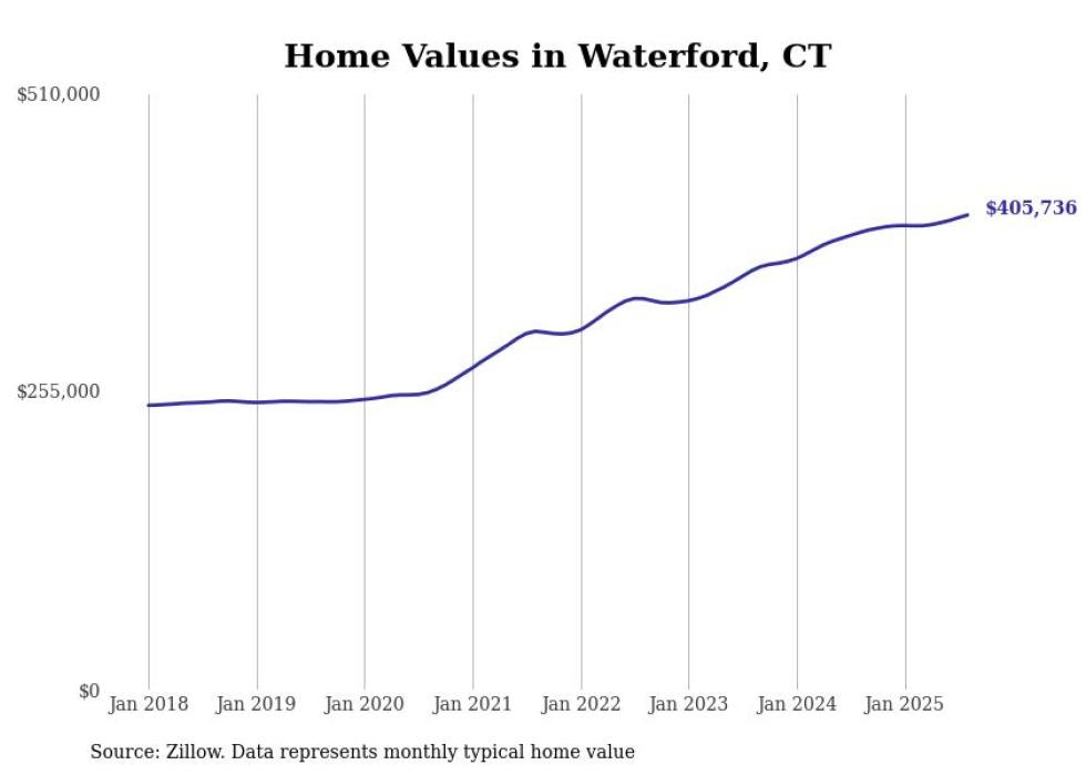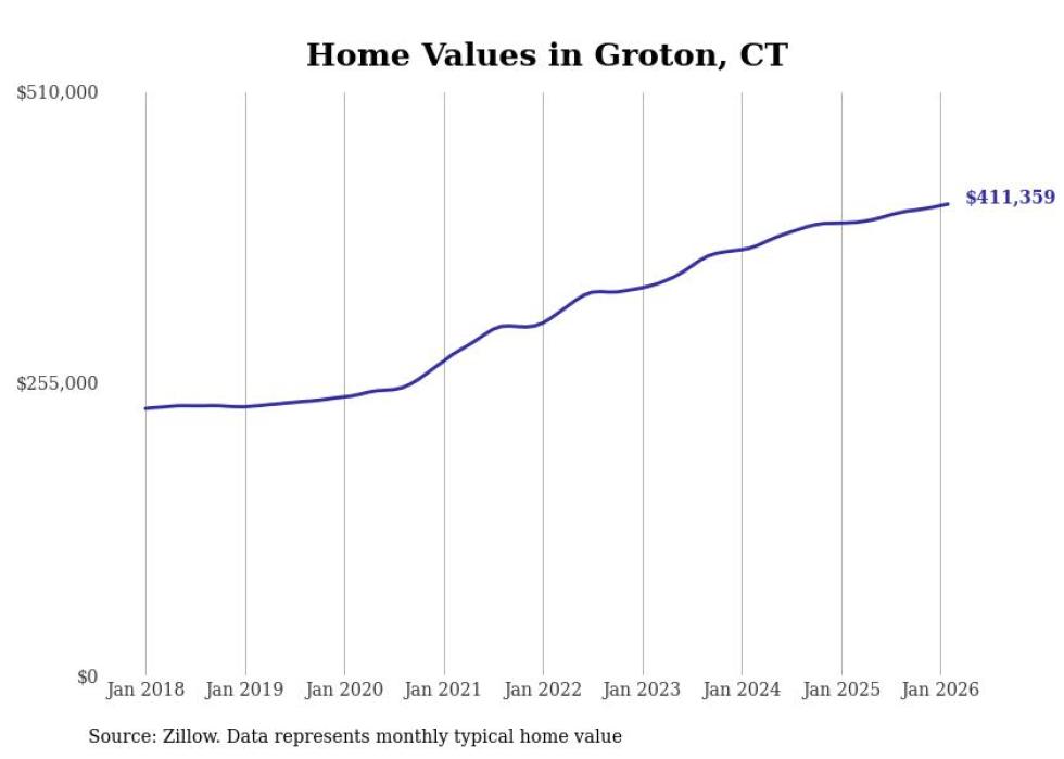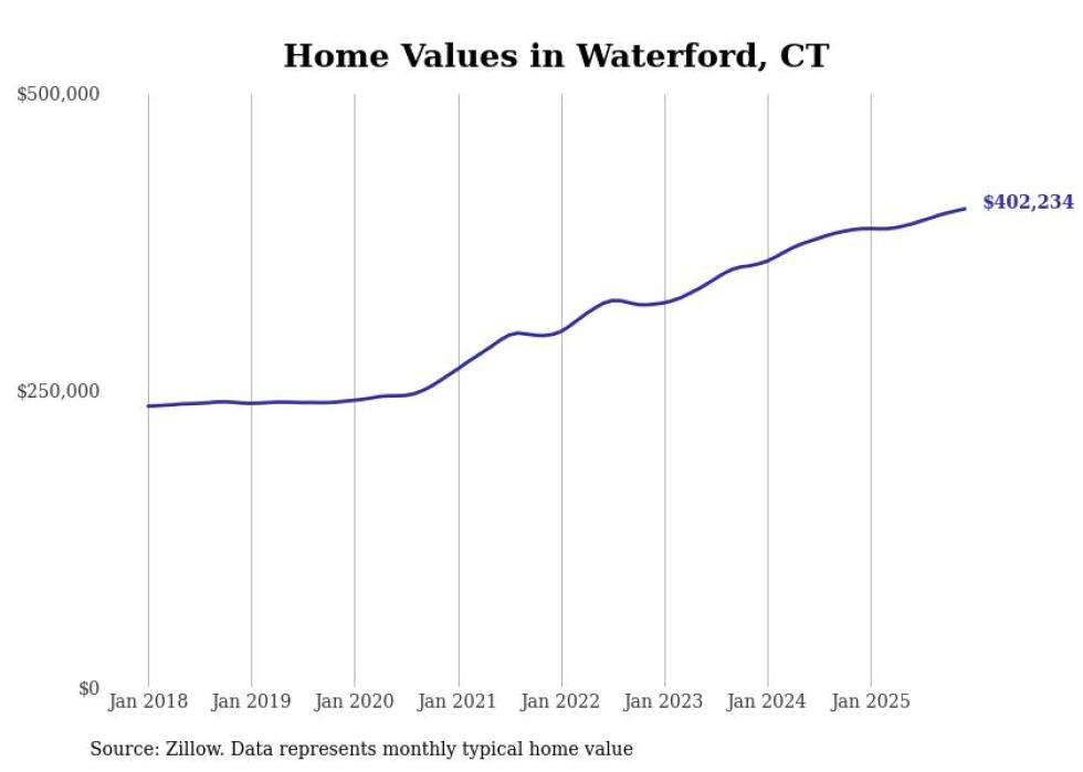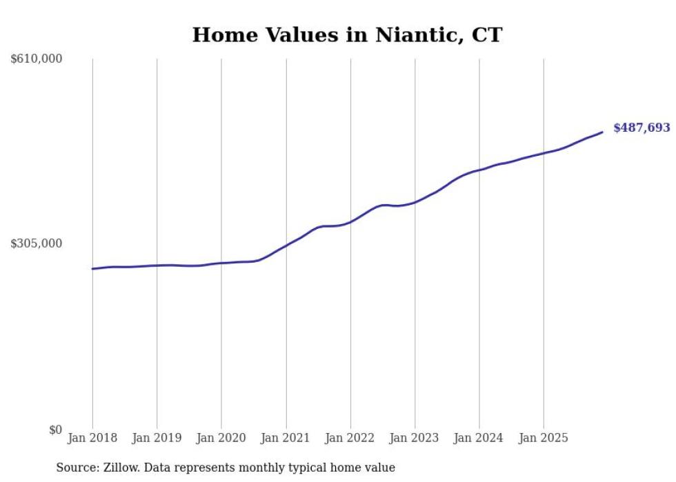 Stacker compiled a list of cities with the most expensive homes in the Norwich-New London, CT metro area using data from Zillow. Charts show the monthly typical home value since January 2018.