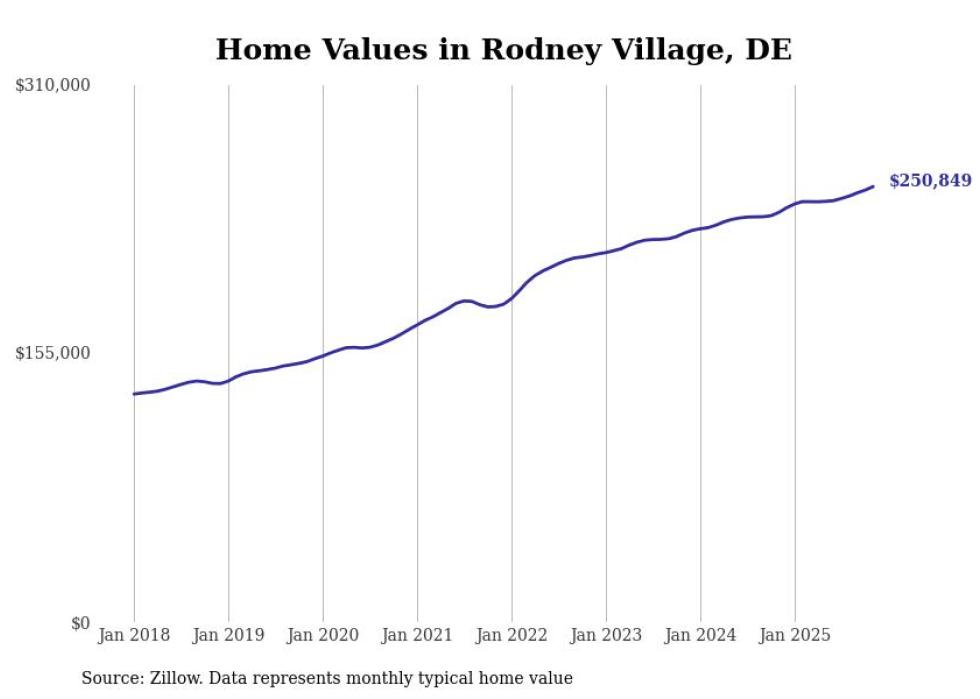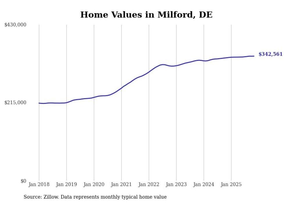 Stacker compiled a list of cities with the most expensive homes in the Dover, DE metro area using data from Zillow. Charts show the monthly typical home value since January 2018.