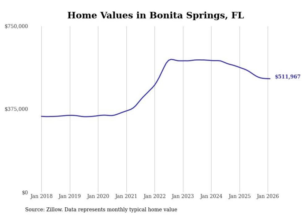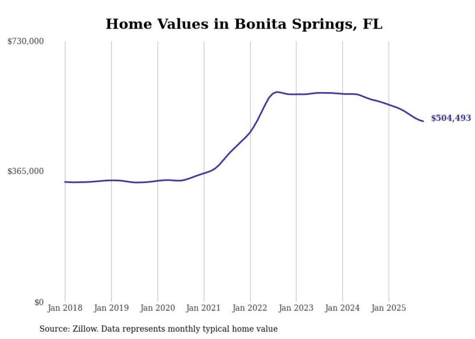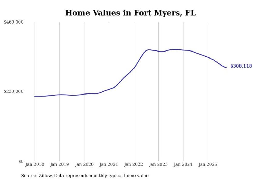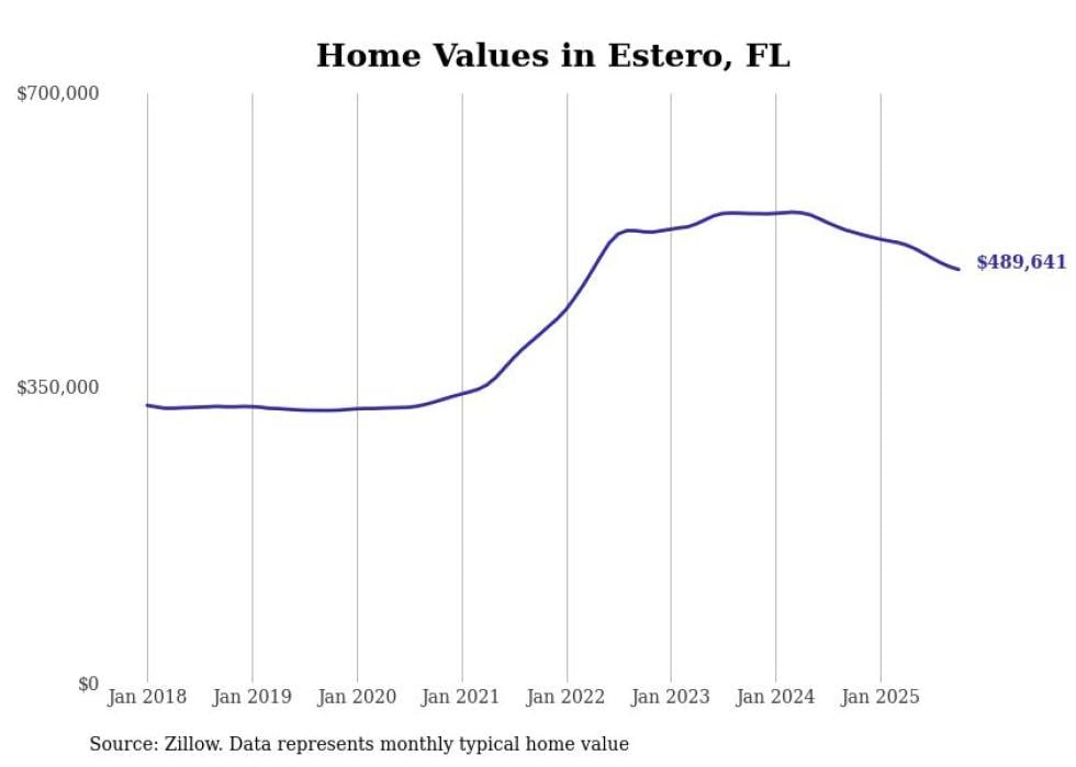 Stacker compiled a list of cities with the most expensive homes in the Cape Coral-Fort Myers, FL metro area using data from Zillow. Charts show the monthly typical home value since January 2018.