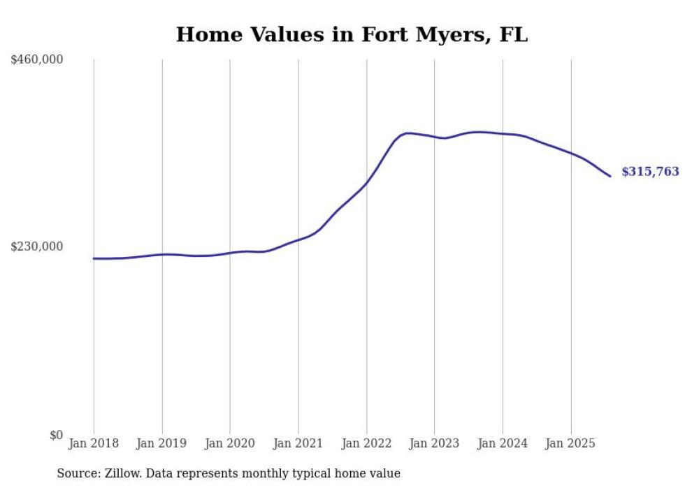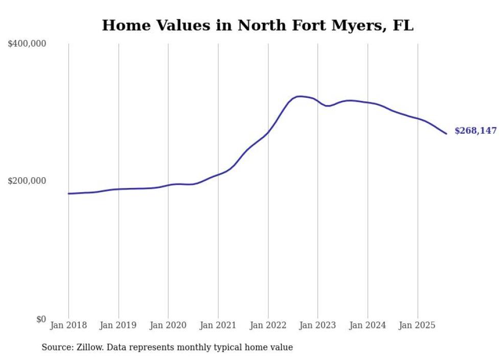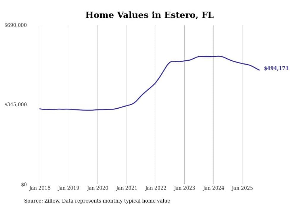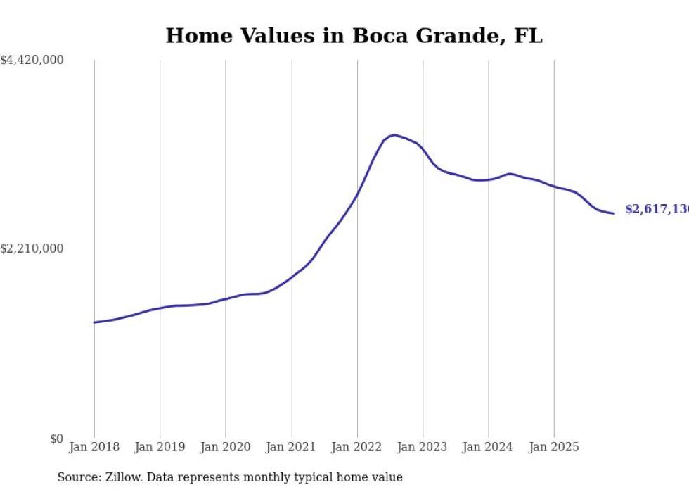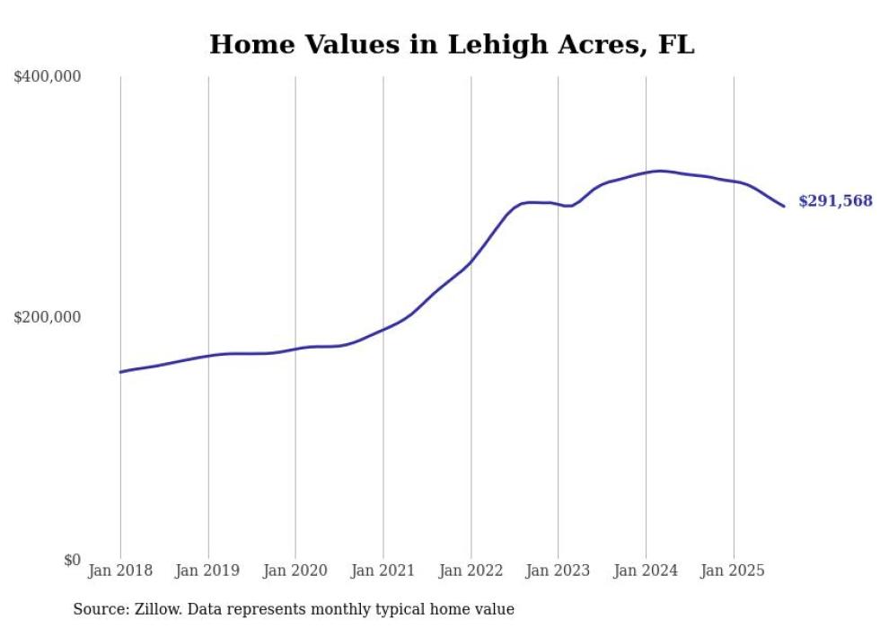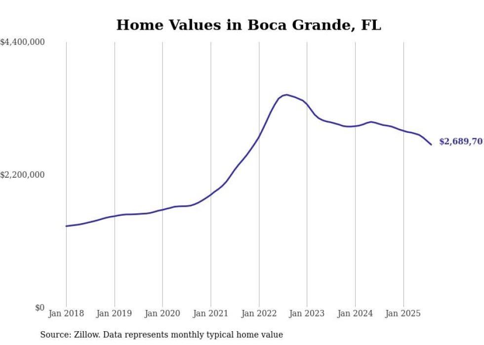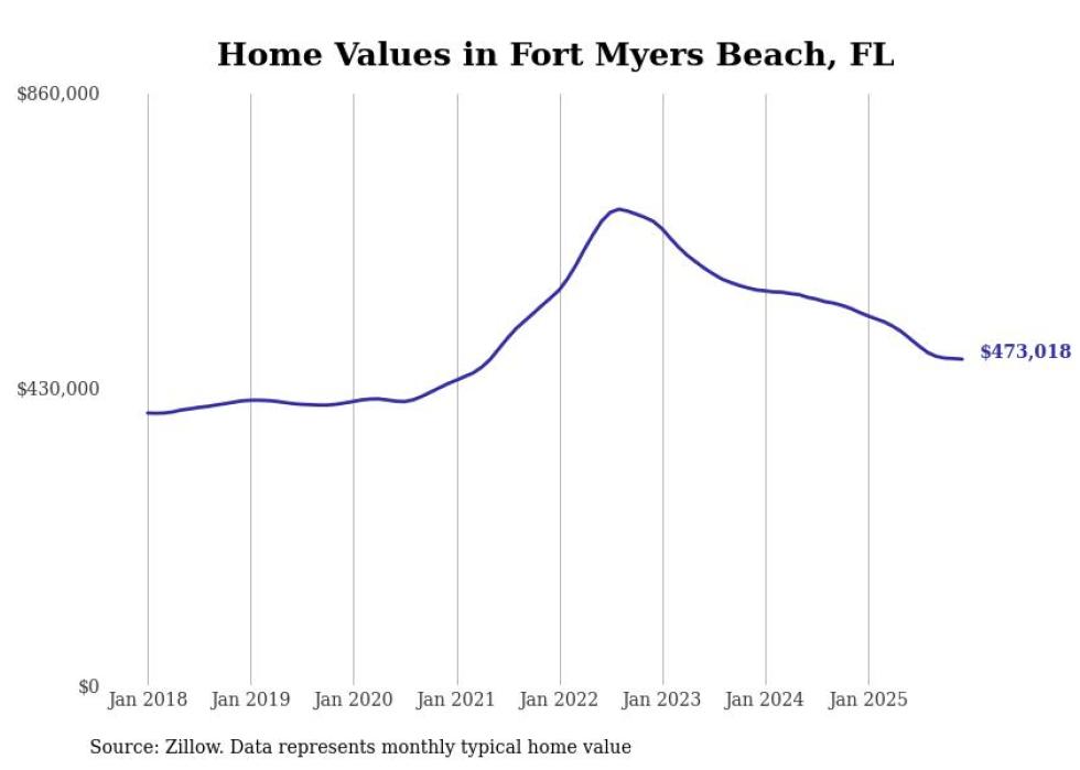 Stacker compiled a list of cities with the most expensive homes in the Cape Coral metro area using data from Zillow. Charts show the monthly typical home value since January 2018. All 14 cities and towns with data available were included in the list.