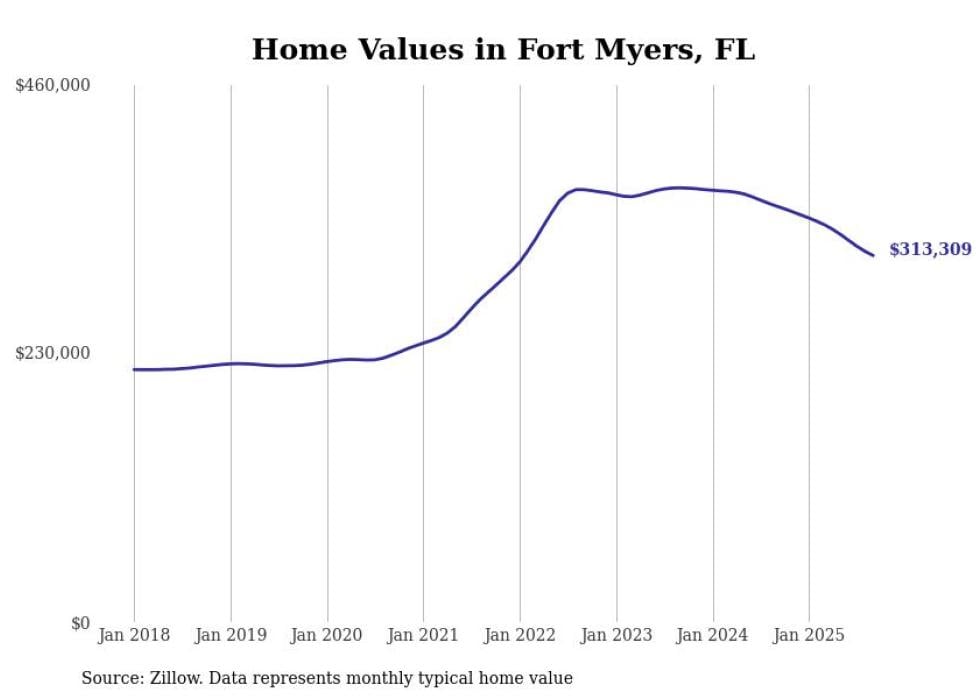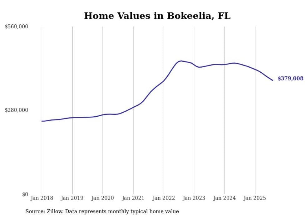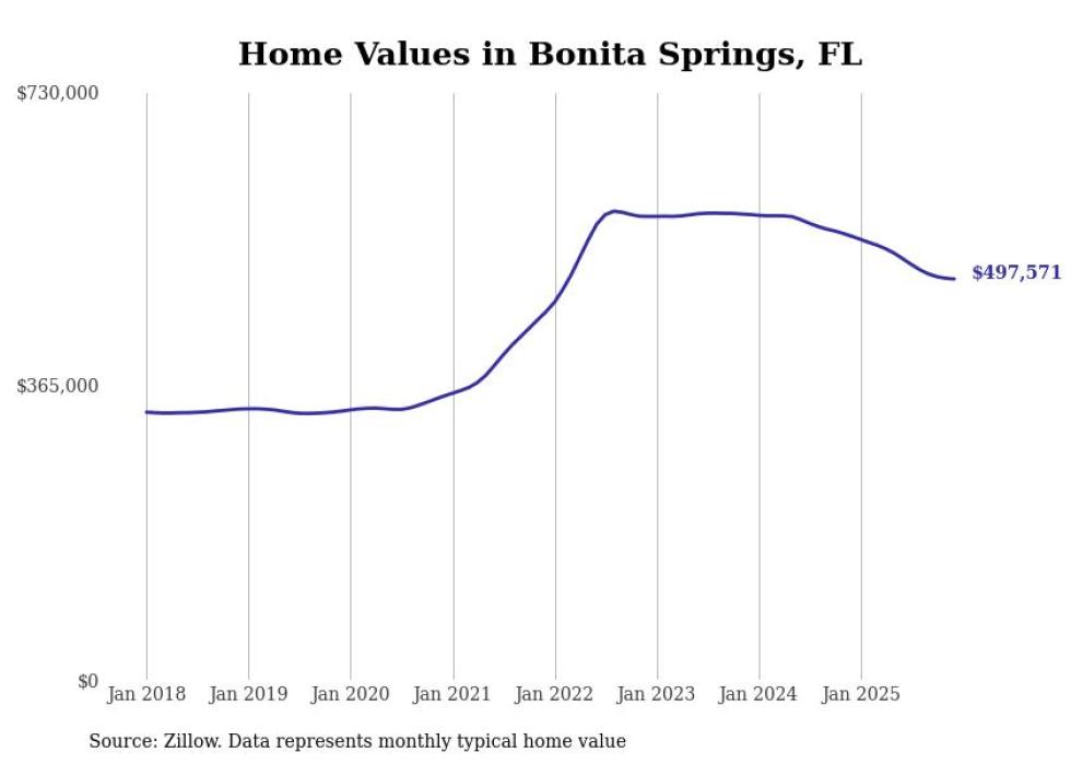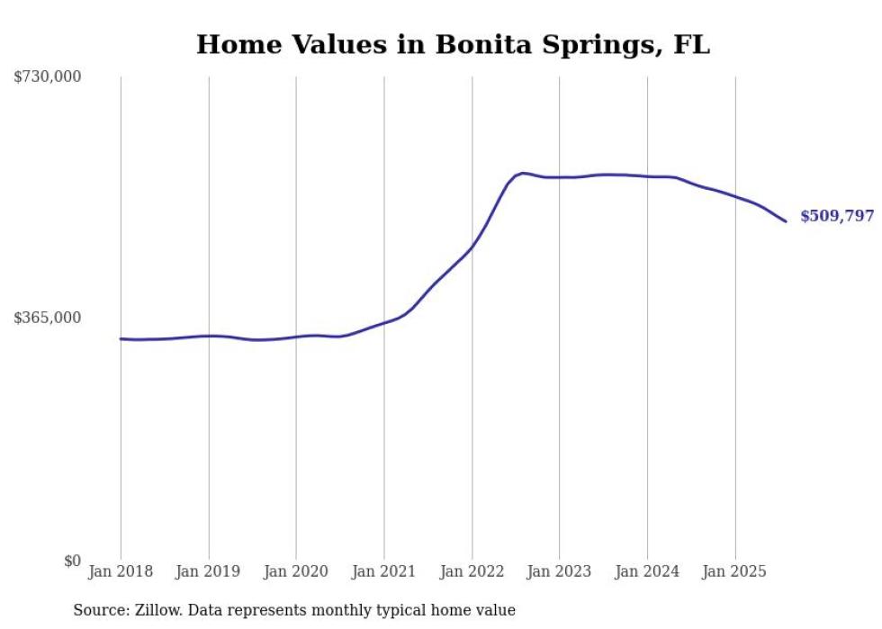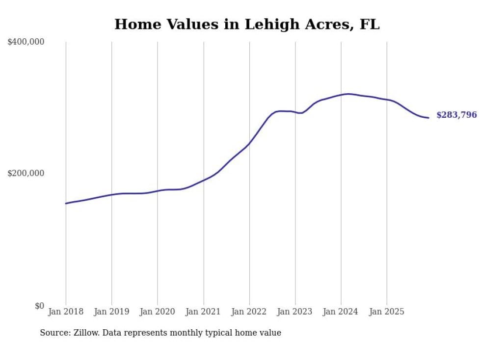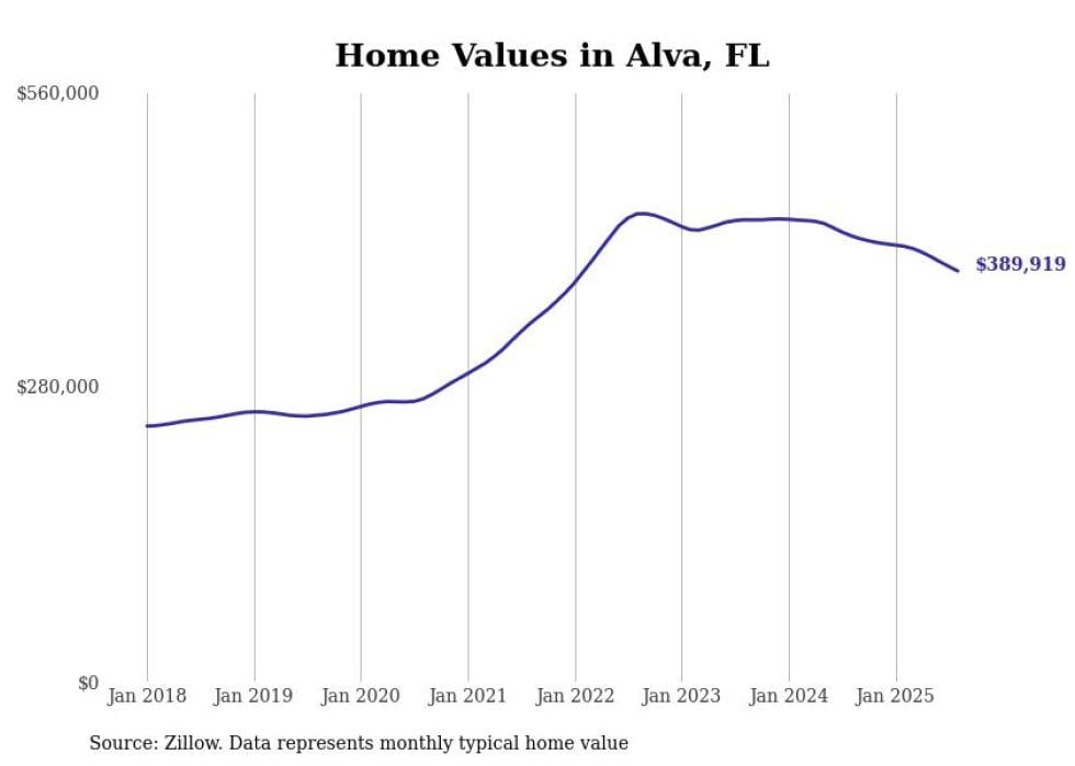 Stacker compiled a list of cities with the most expensive homes in the Cape Coral metro area using data from Zillow. Charts show the monthly typical home value since January 2018. All 14 cities and towns with data available were included in the list.