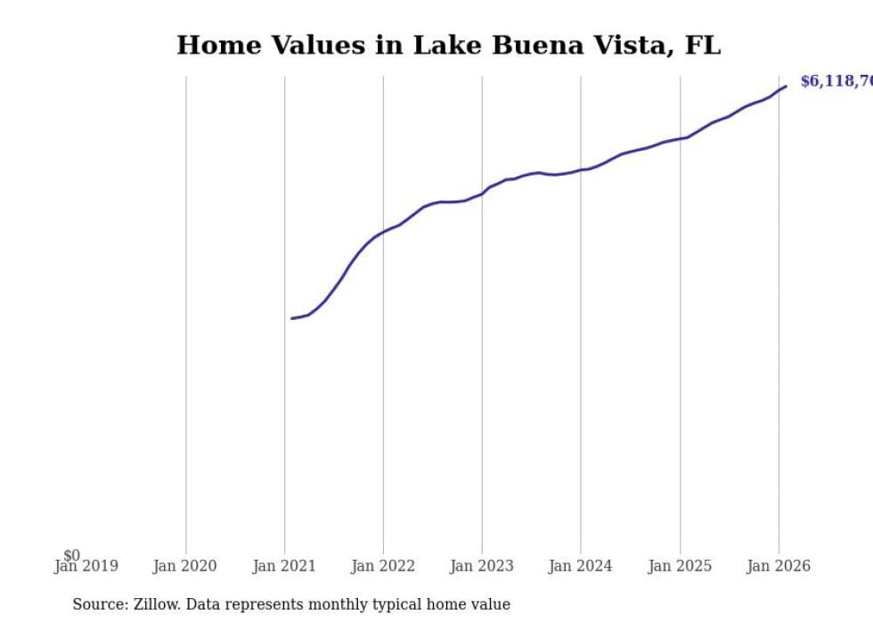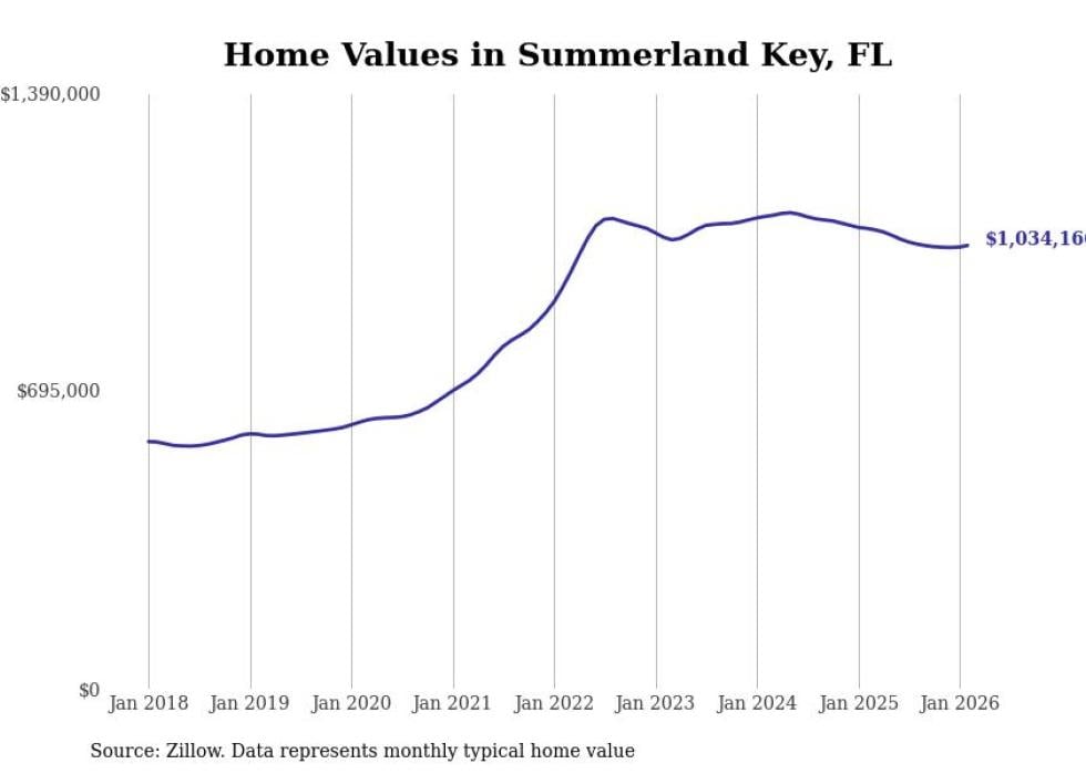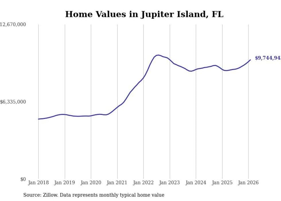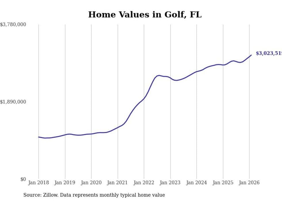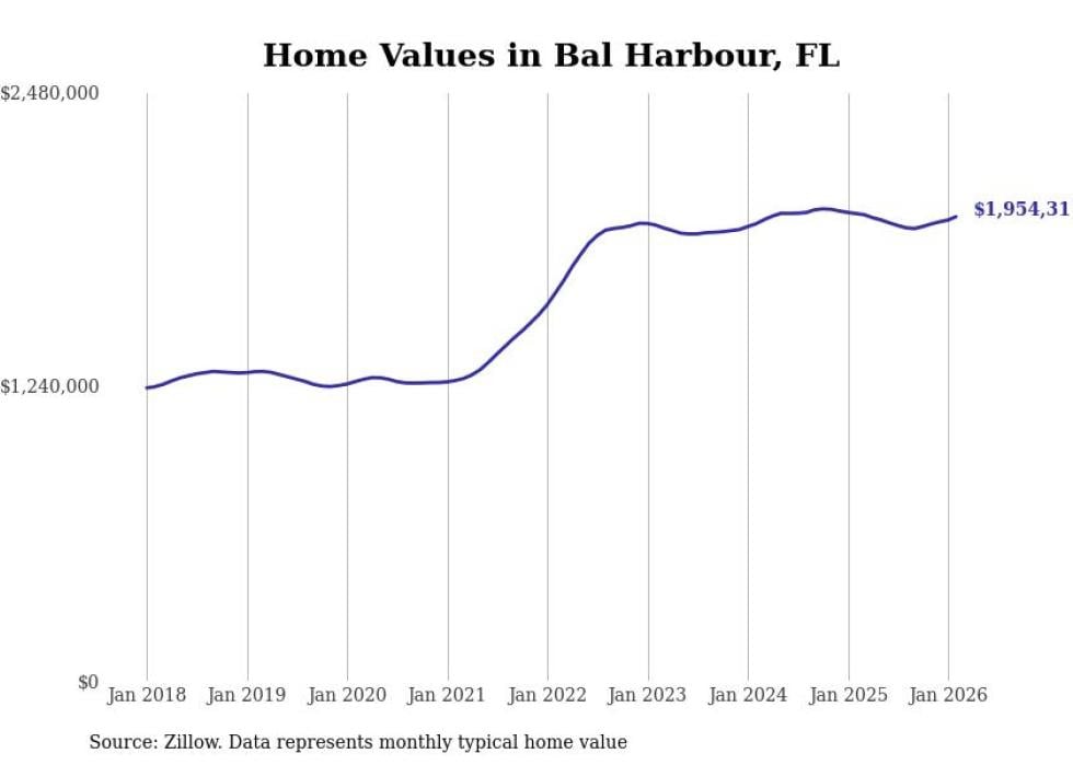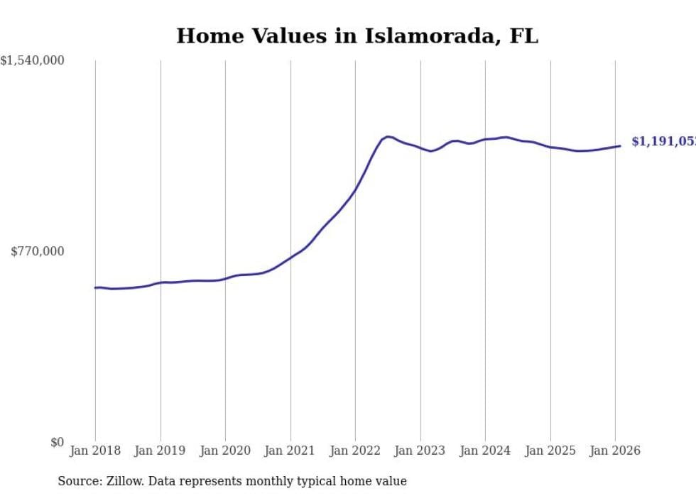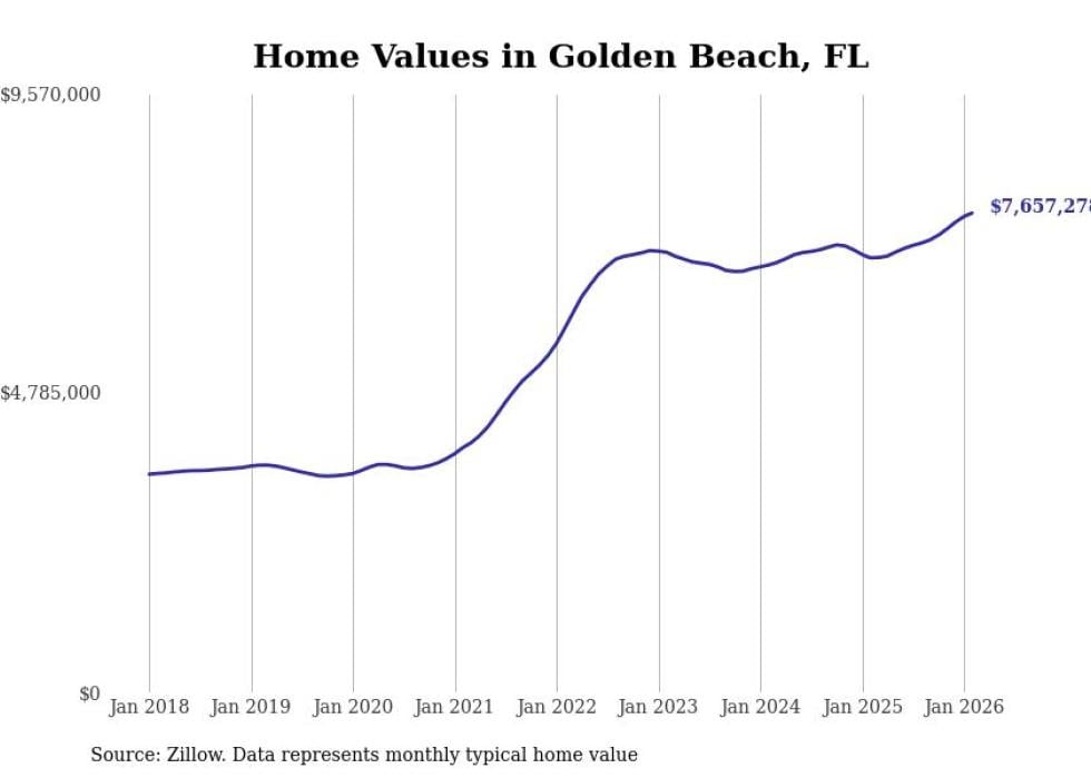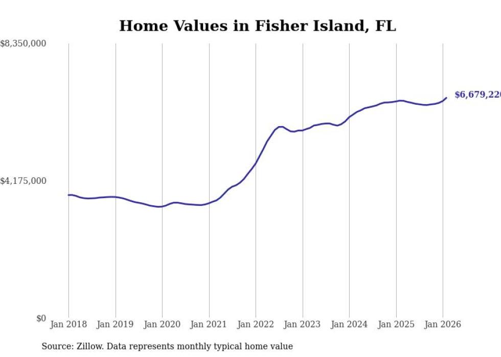 Stacker compiled a list of cities with the most expensive homes in Florida using data from Zillow. Cities are ranked by the Zillow Home Values Index for all homes as of February 2026. The charts in this story were created automatically using Matplotlib.