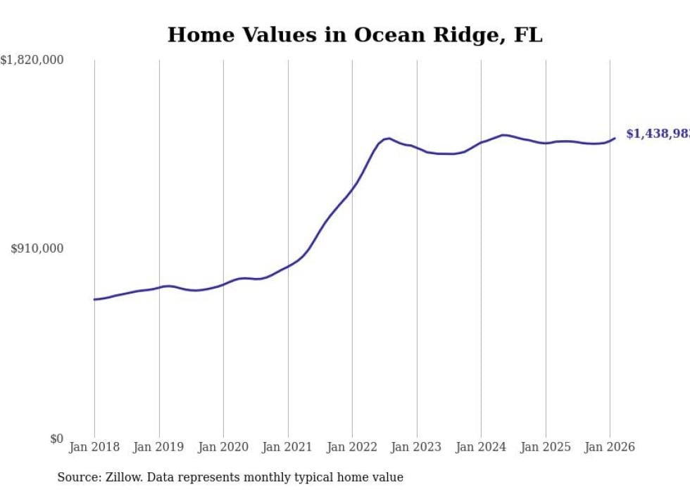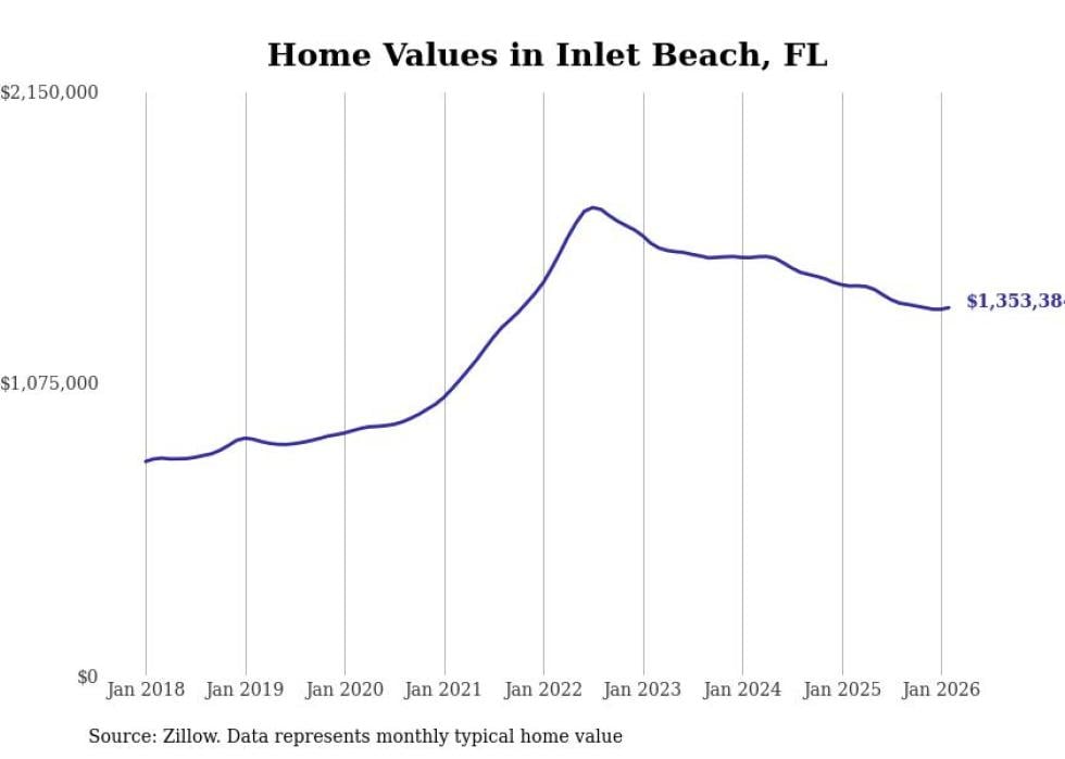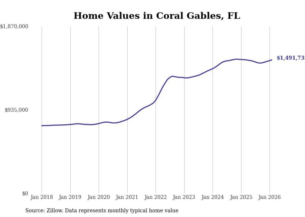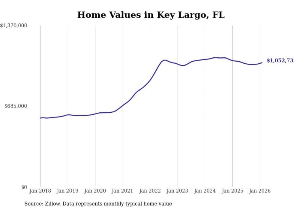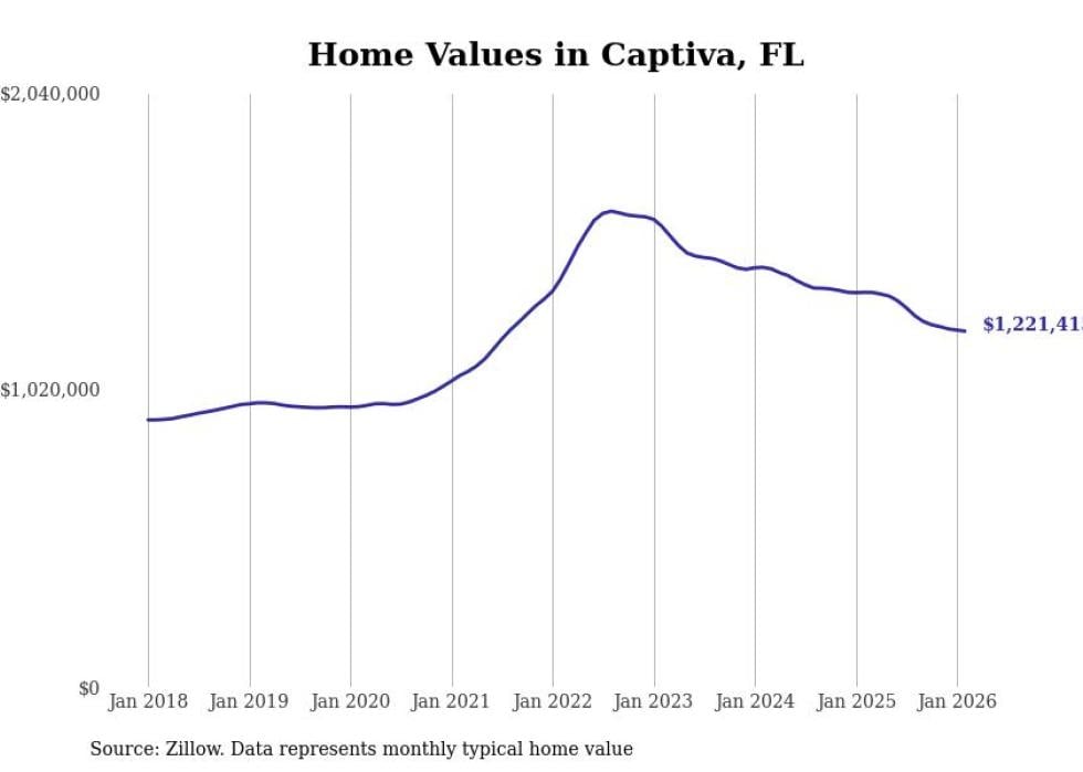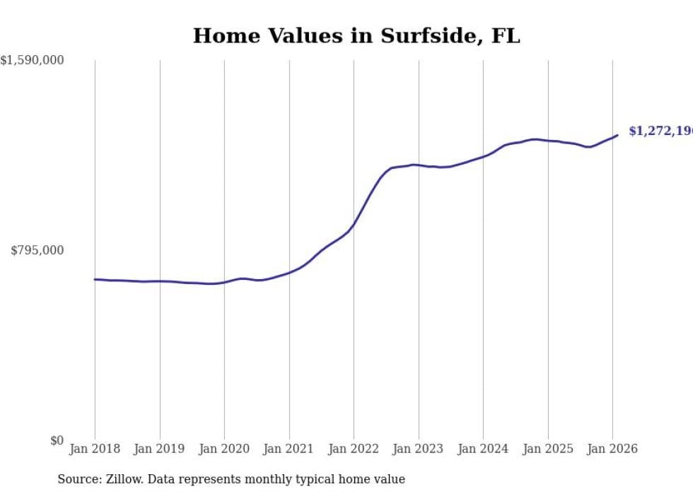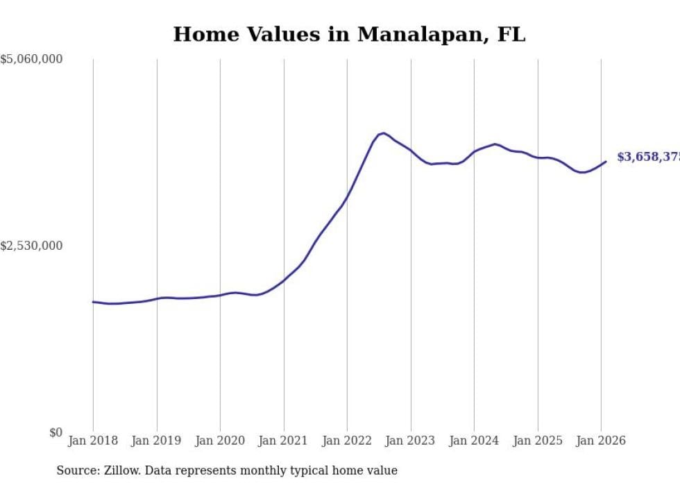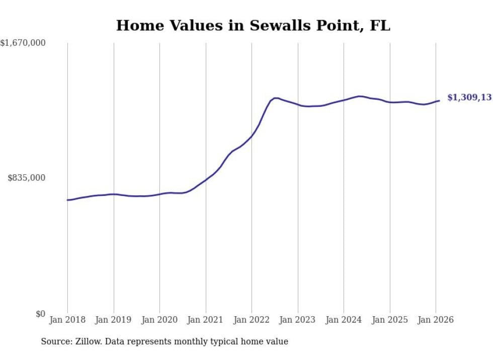 Stacker compiled a list of cities with the most expensive homes in Florida using data from Zillow. Cities are ranked by the Zillow Home Values Index for all homes as of February 2026. The charts in this story were created automatically using Matplotlib.
