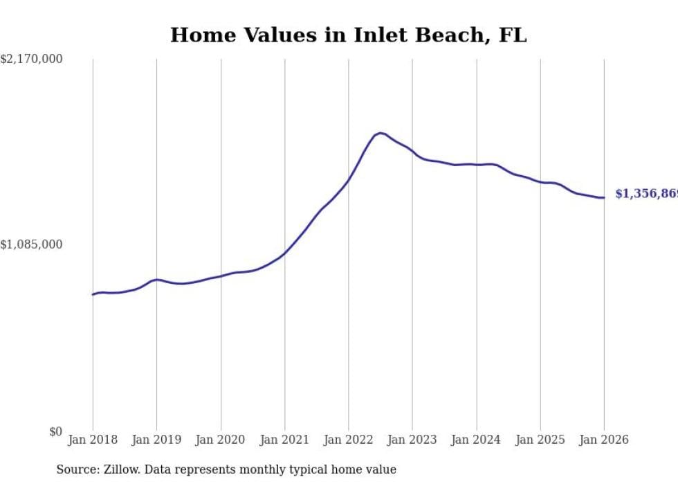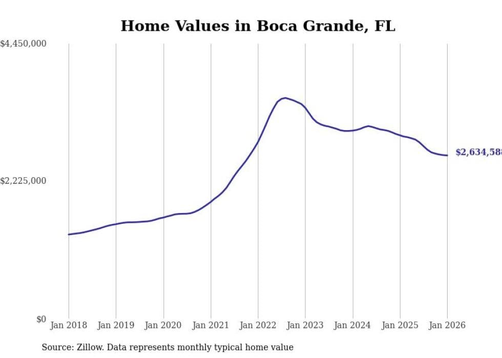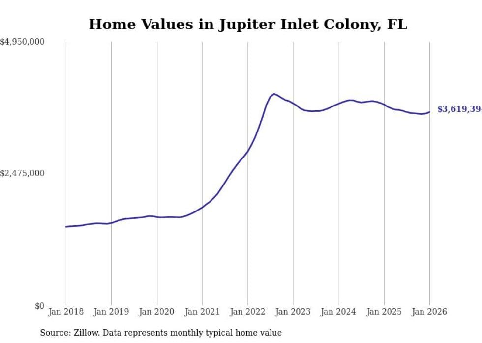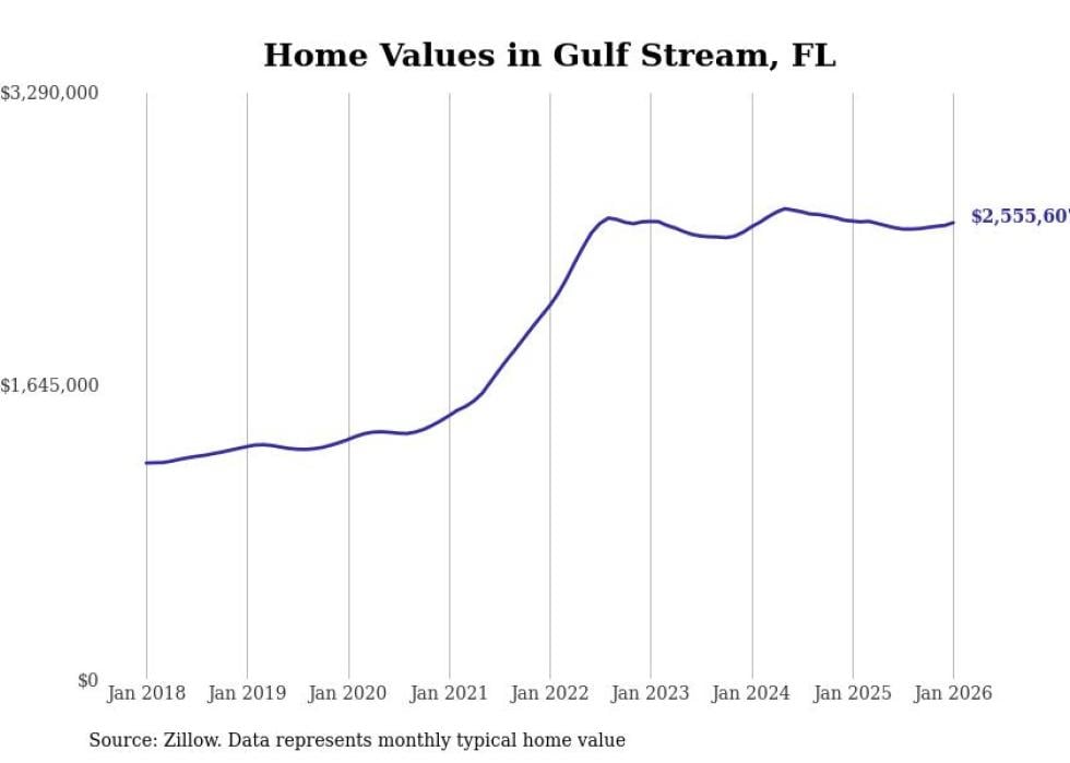 Stacker compiled a list of cities with the most expensive homes in Florida using data from Zillow. Cities are ranked by the Zillow Home Values Index for all homes as of January 2026. The charts in this story were created automatically using Matplotlib.