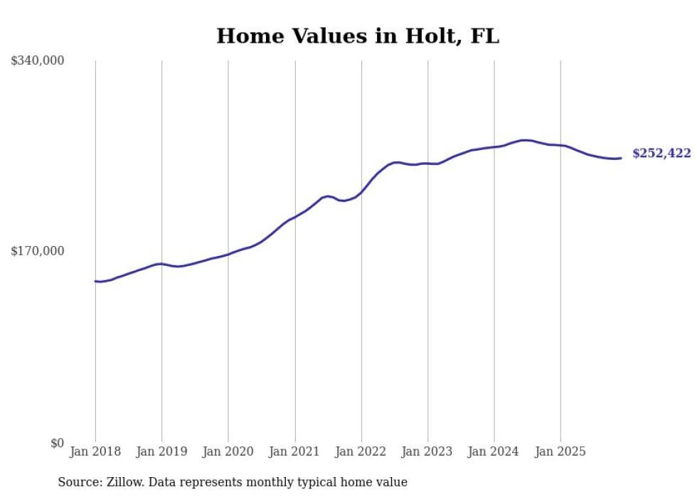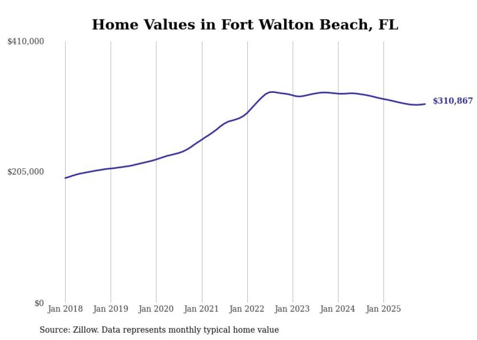Stacker compiled a list of cities with the most expensive homes in the Crestview metro area using data from Zillow. Charts show the monthly typical home value since January 2018. All 19 cities and towns with data available were included in the list.