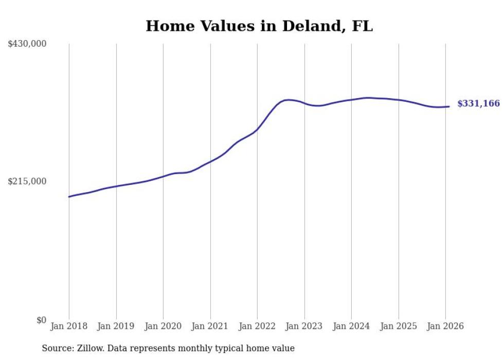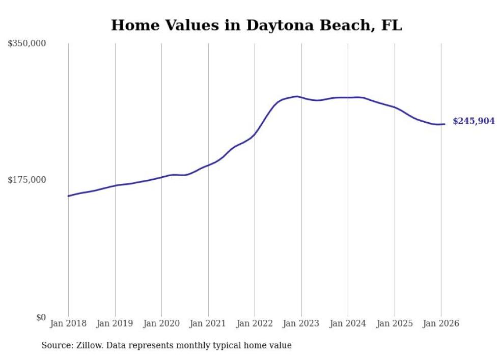 Stacker compiled a list of cities with the most expensive homes in the Deltona-Daytona Beach-Ormond Beach, FL metro area using data from Zillow. Charts show the monthly typical home value since January 2018.