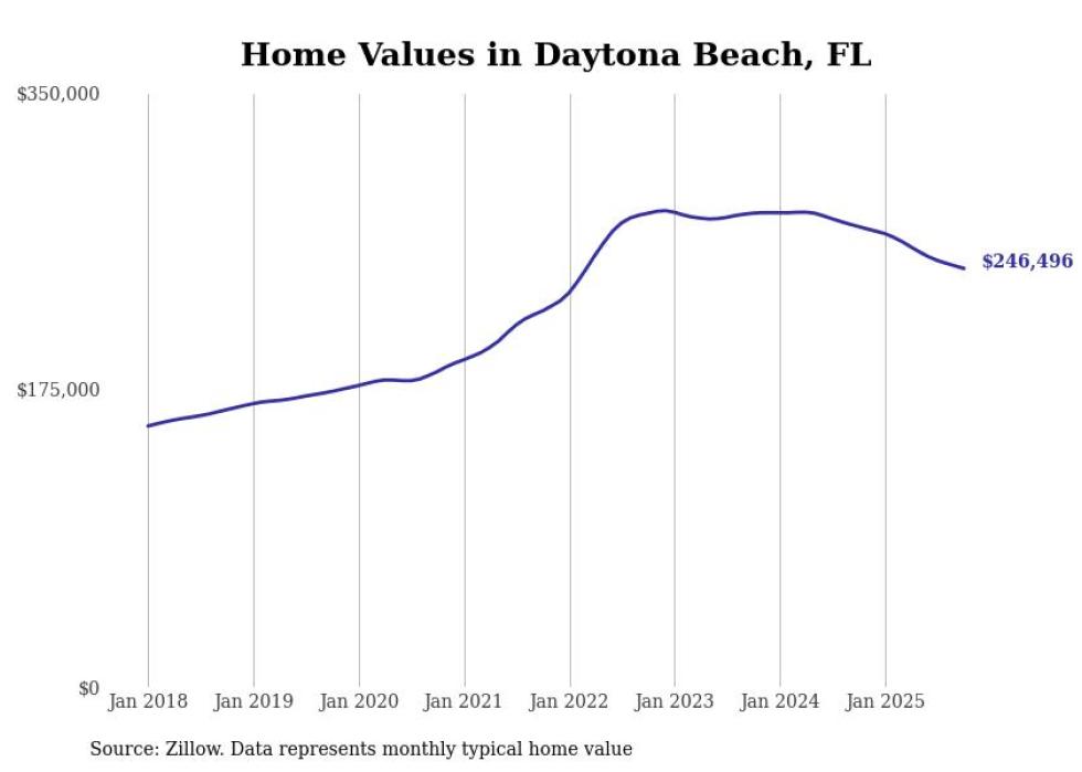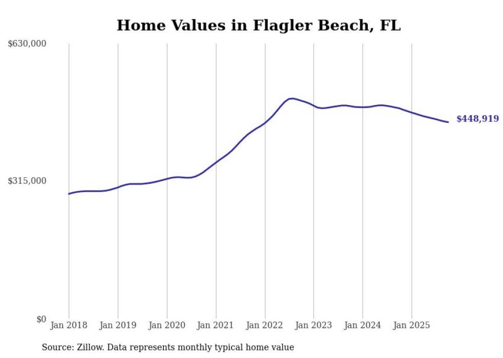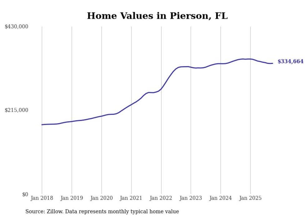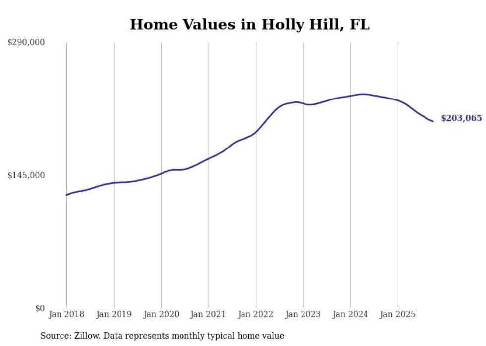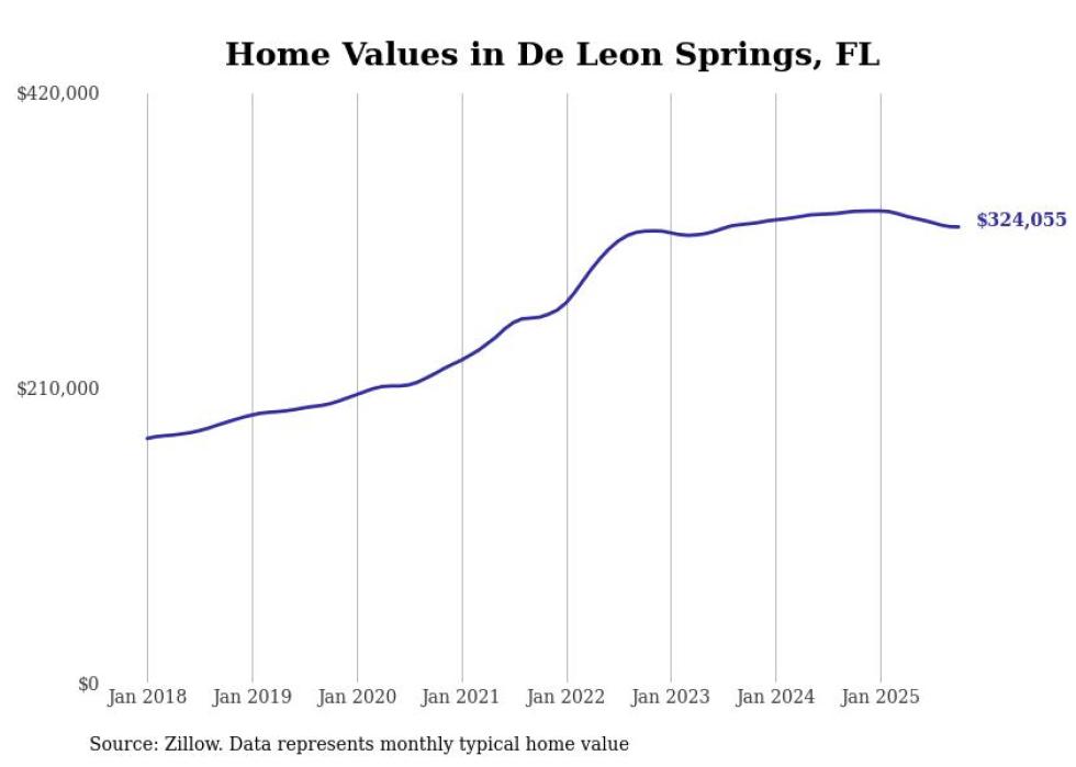 Stacker compiled a list of cities with the most expensive homes in the Deltona metro area using data from Zillow. Charts show the monthly typical home value since January 2018. All 22 cities and towns with data available were included in the list.