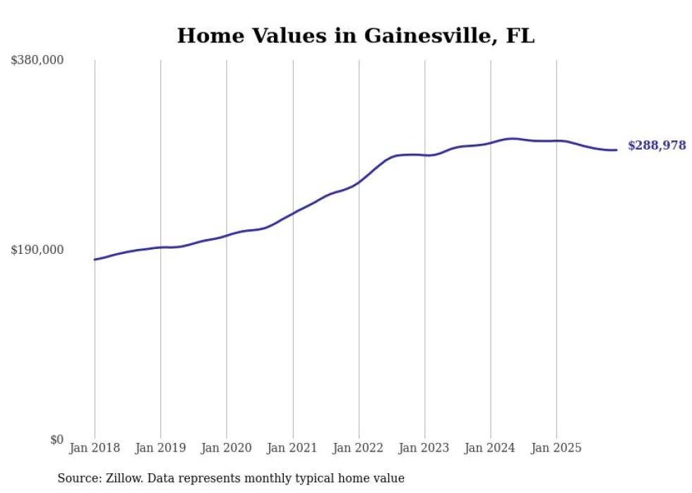 Stacker compiled a list of cities with the most expensive homes in the Gainesville, FL metro area using data from Zillow. Charts show the monthly typical home value since January 2018.