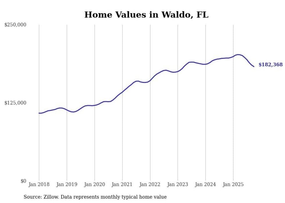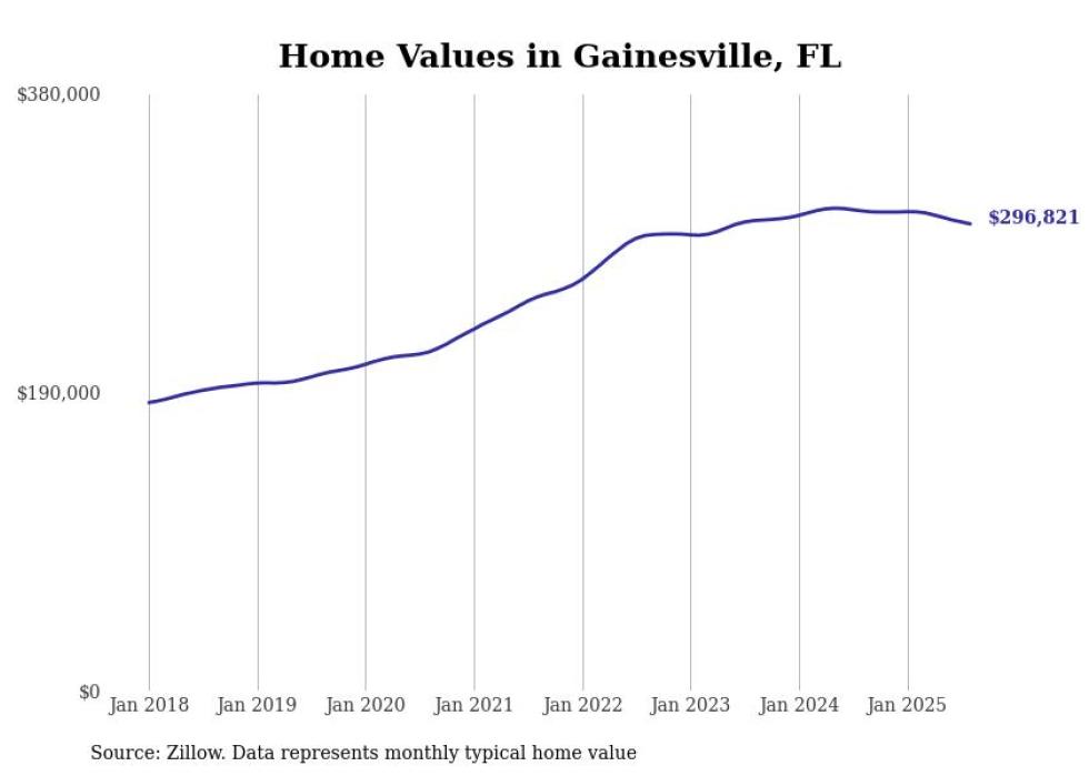 Stacker compiled a list of cities with the most expensive homes in the Gainesville metro area using data from Zillow. Charts show the monthly typical home value since January 2018. All 21 cities and towns with data available were included in the list.