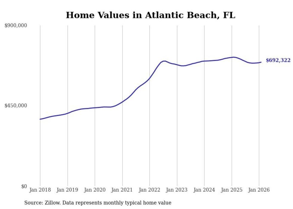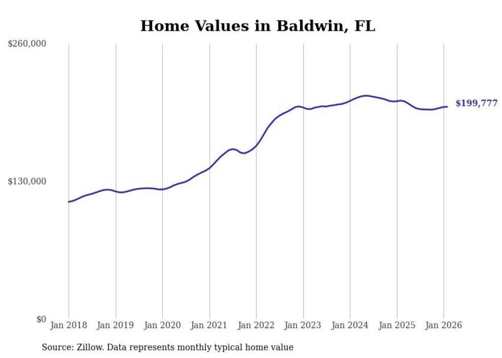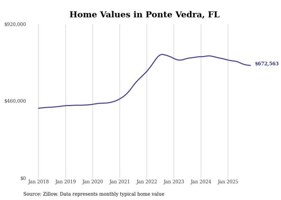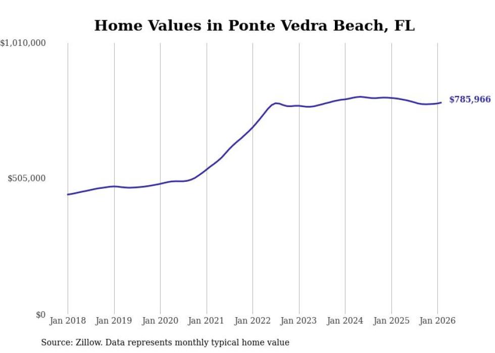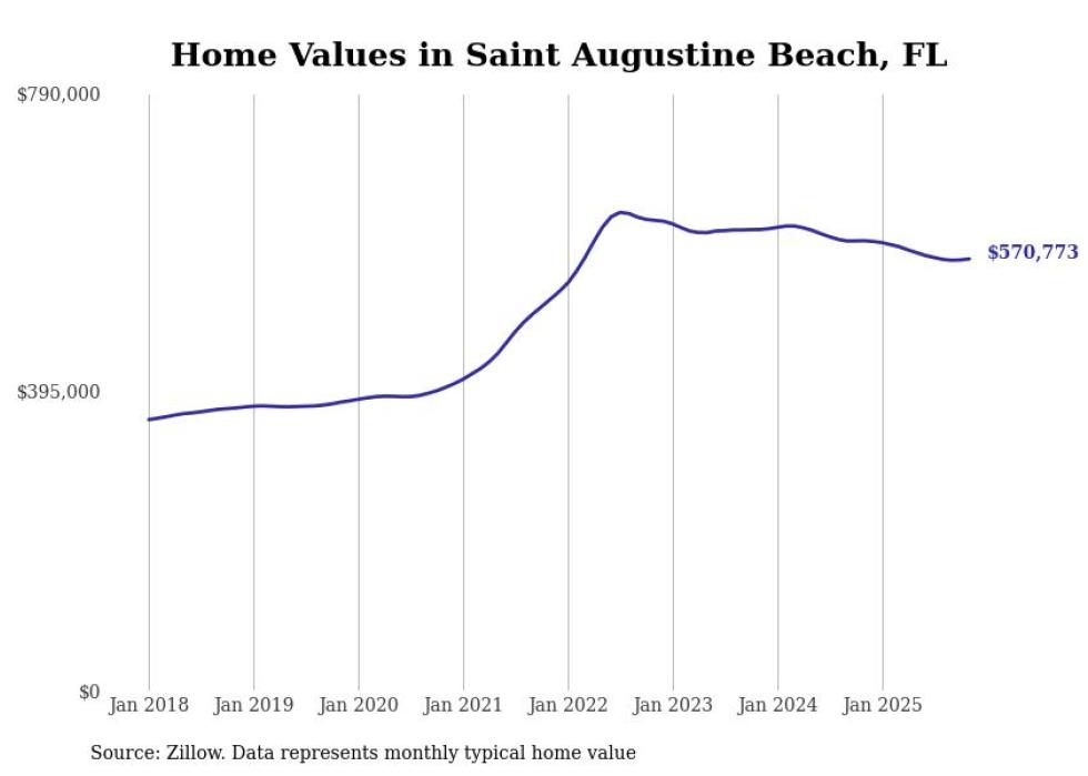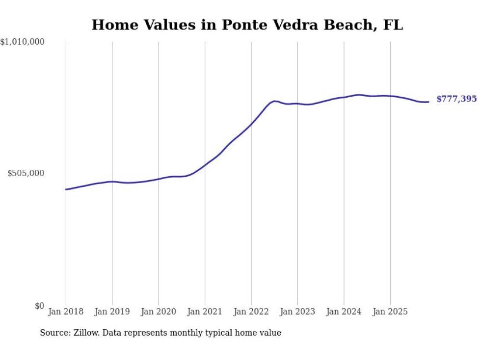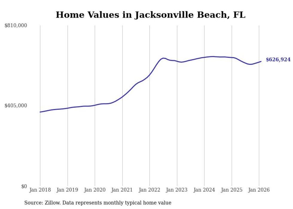 Stacker compiled a list of cities with the most expensive homes in the Jacksonville, FL metro area using data from Zillow. Charts show the monthly typical home value since January 2018.