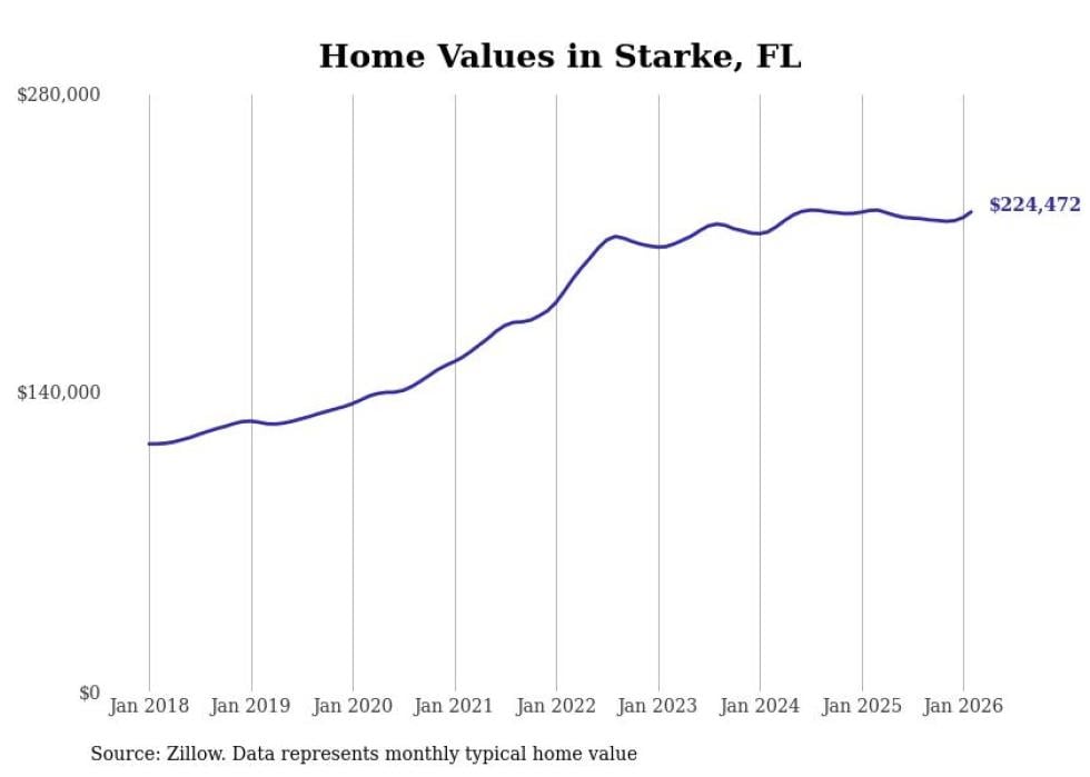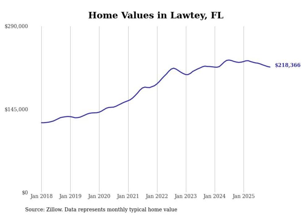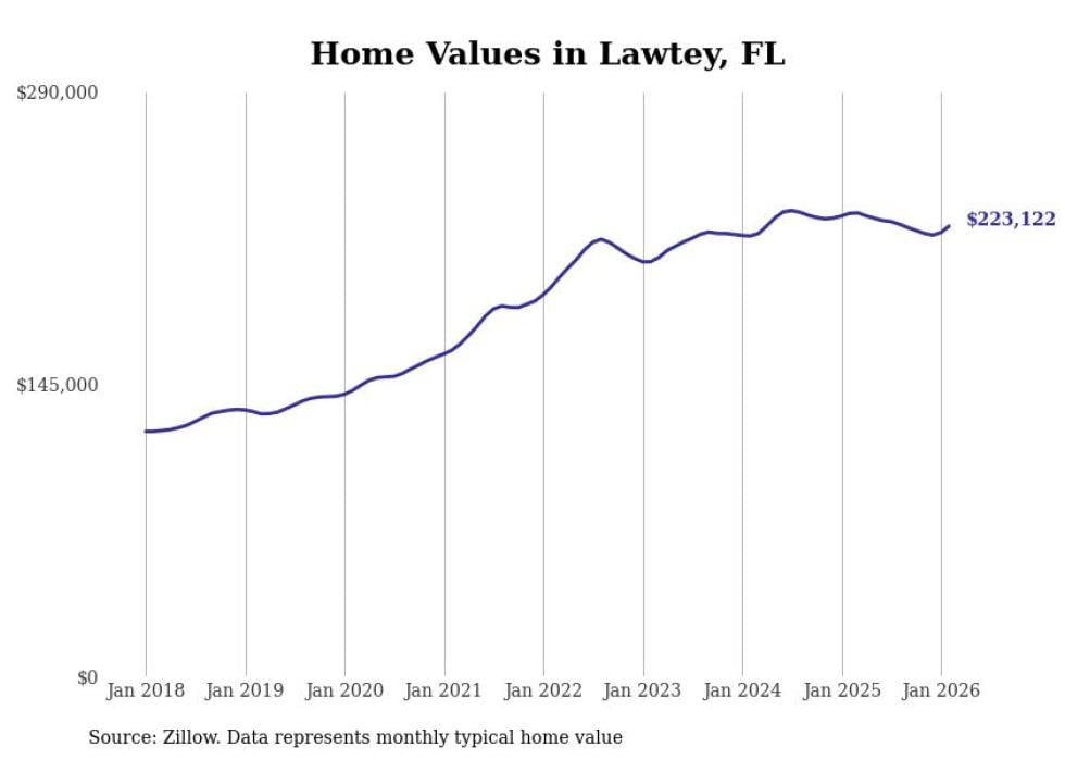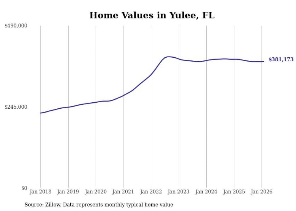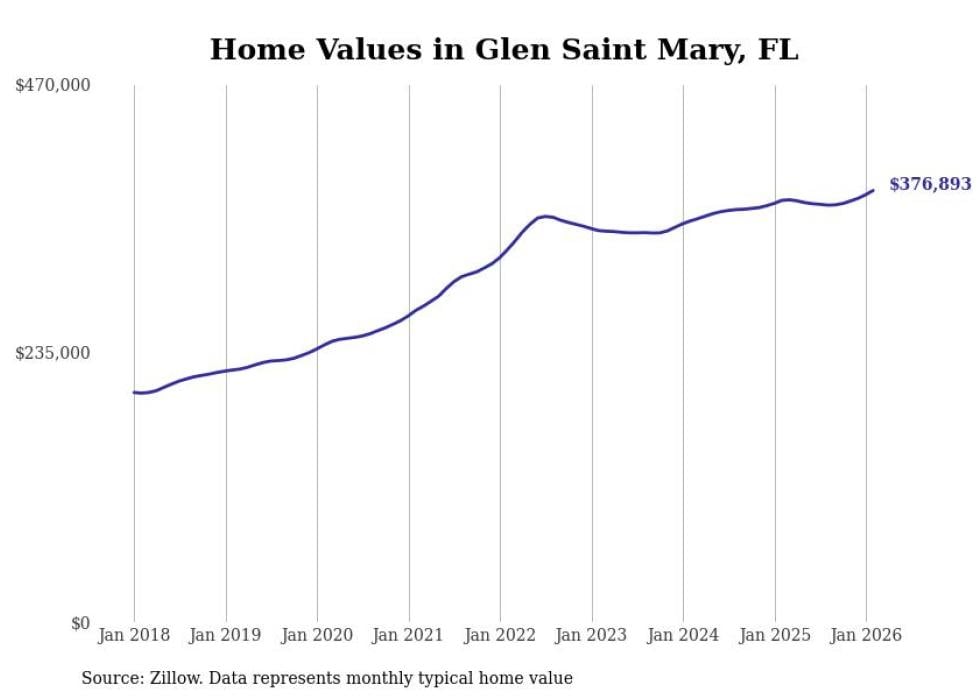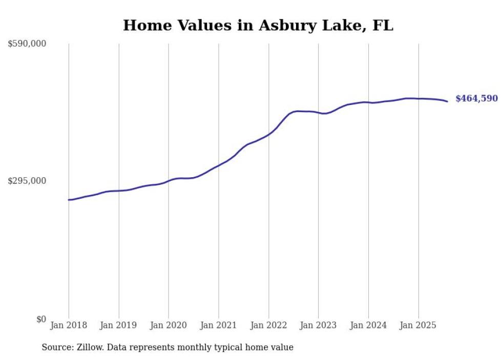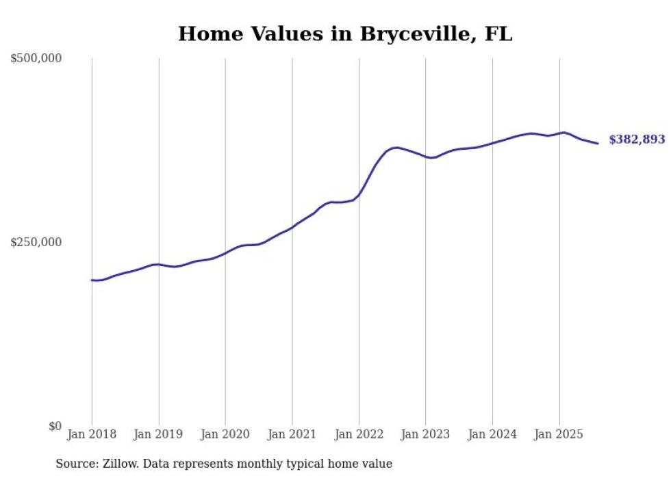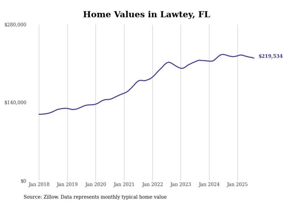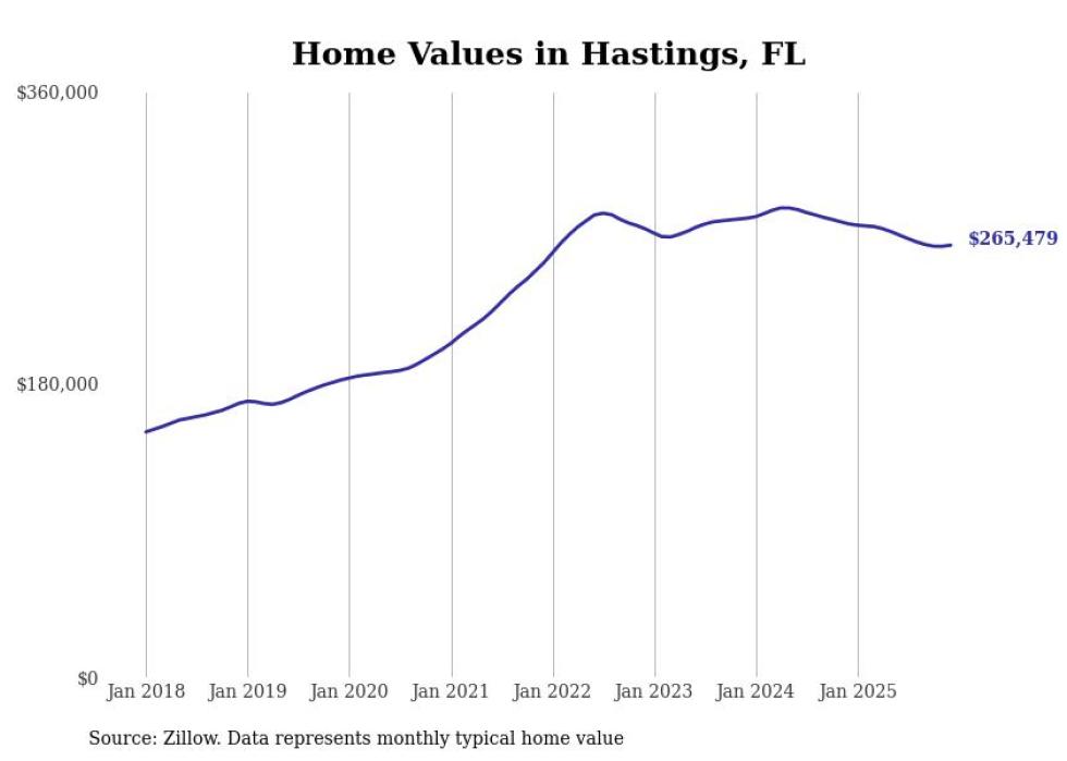 Stacker compiled a list of cities with the most expensive homes in the Jacksonville metro area using data from Zillow. Charts show the monthly typical home value since January 2018. All 27 cities and towns with data available were included in the list.