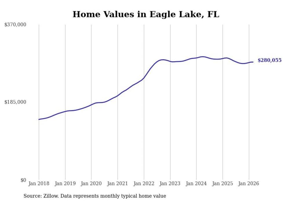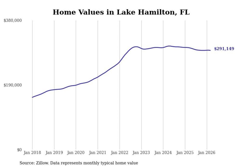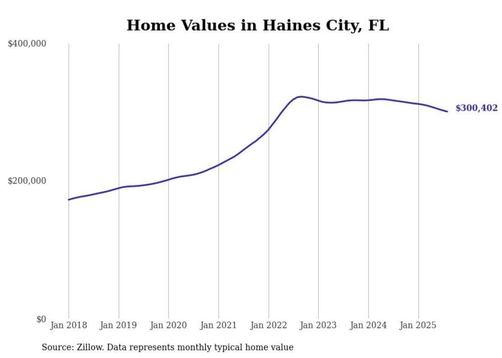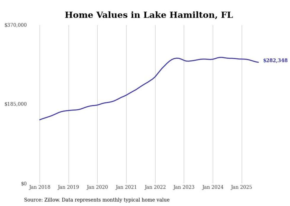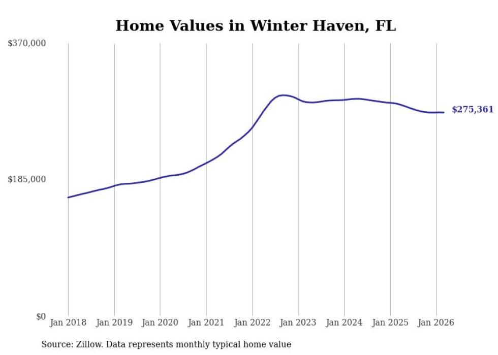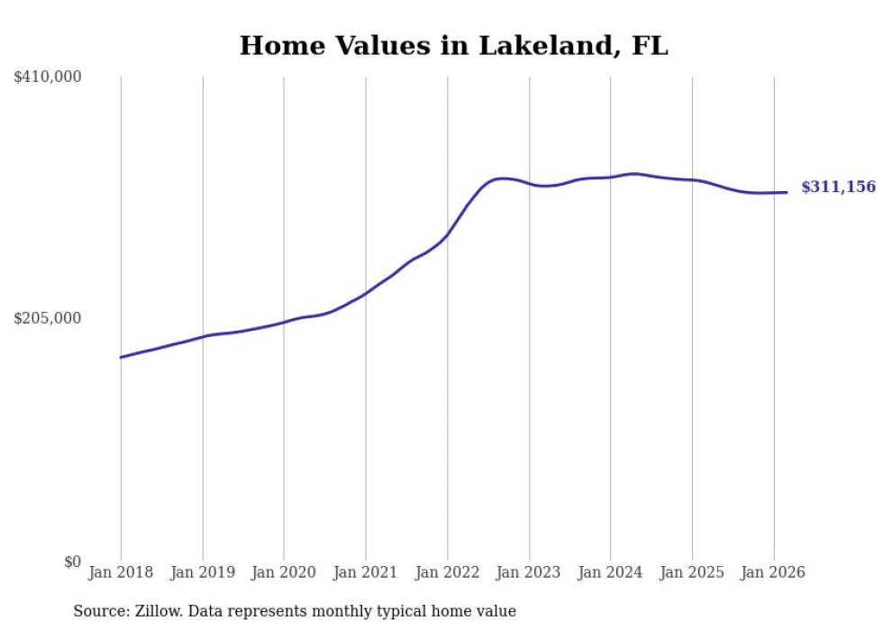 Stacker compiled a list of cities with the most expensive homes in the Lakeland metro area using data from Zillow. Charts show the monthly typical home value since January 2018. All 20 cities and towns with data available were included in the list.