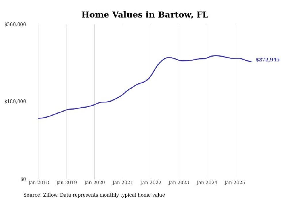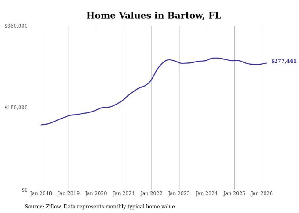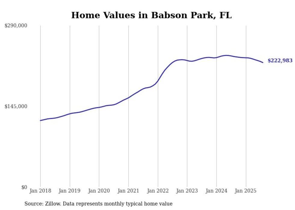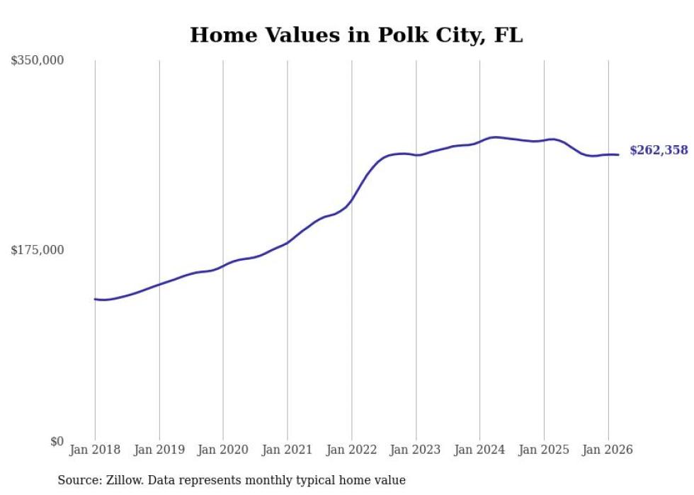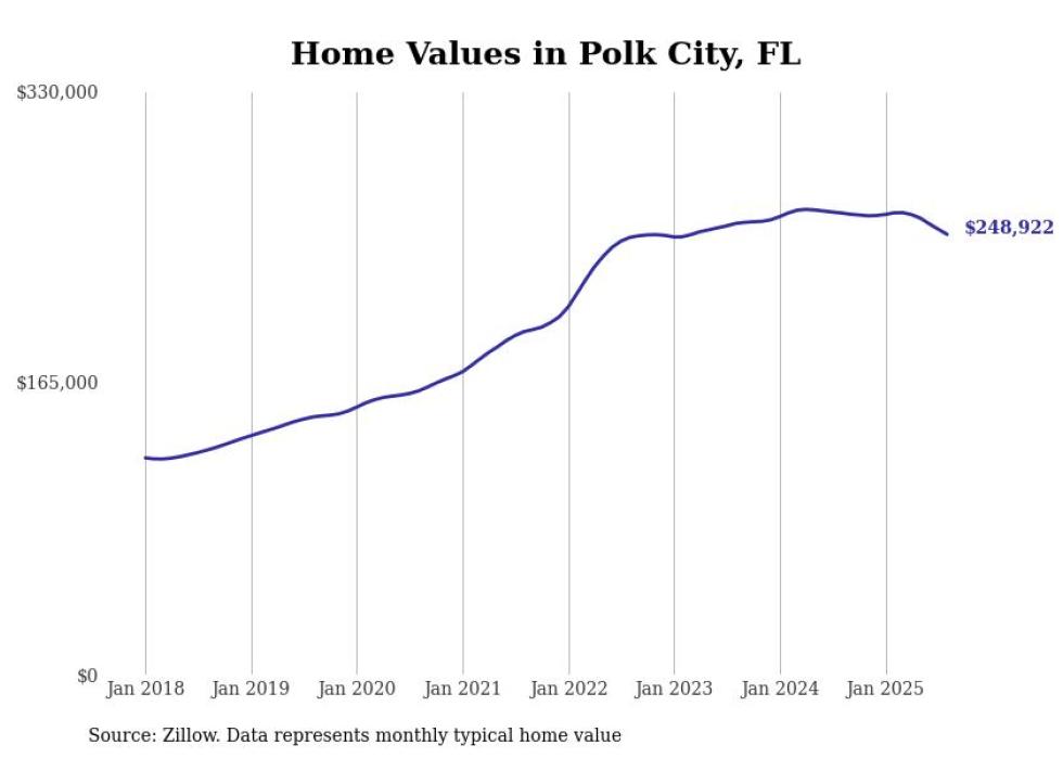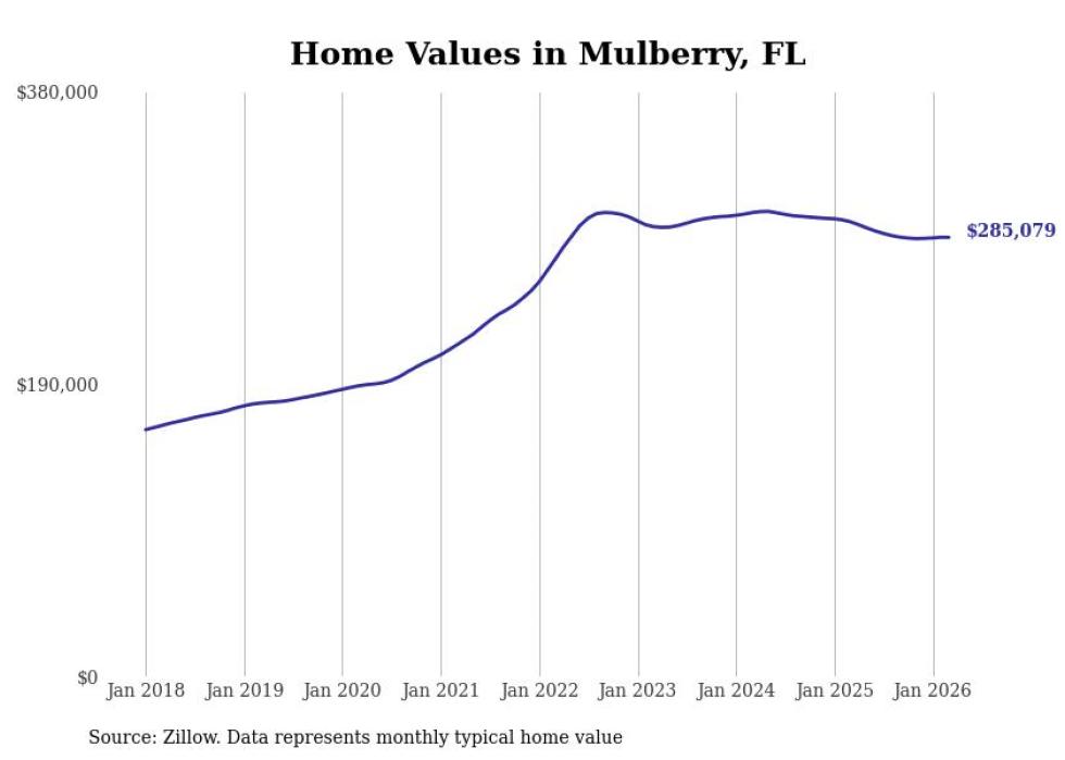 Stacker compiled a list of cities with the most expensive homes in the Lakeland metro area using data from Zillow. Charts show the monthly typical home value since January 2018. All 20 cities and towns with data available were included in the list.