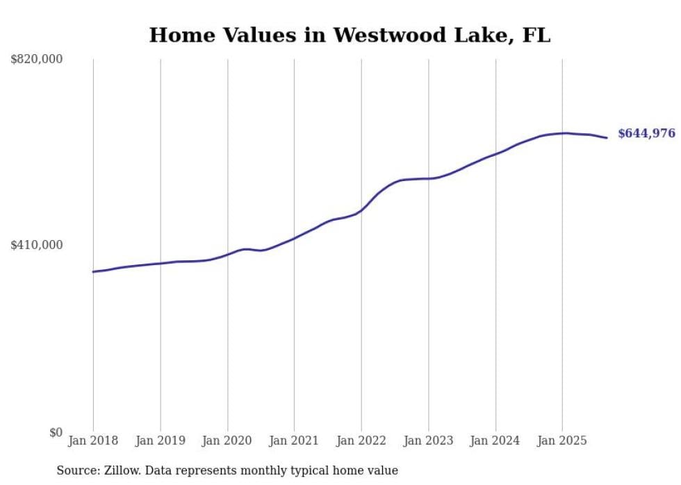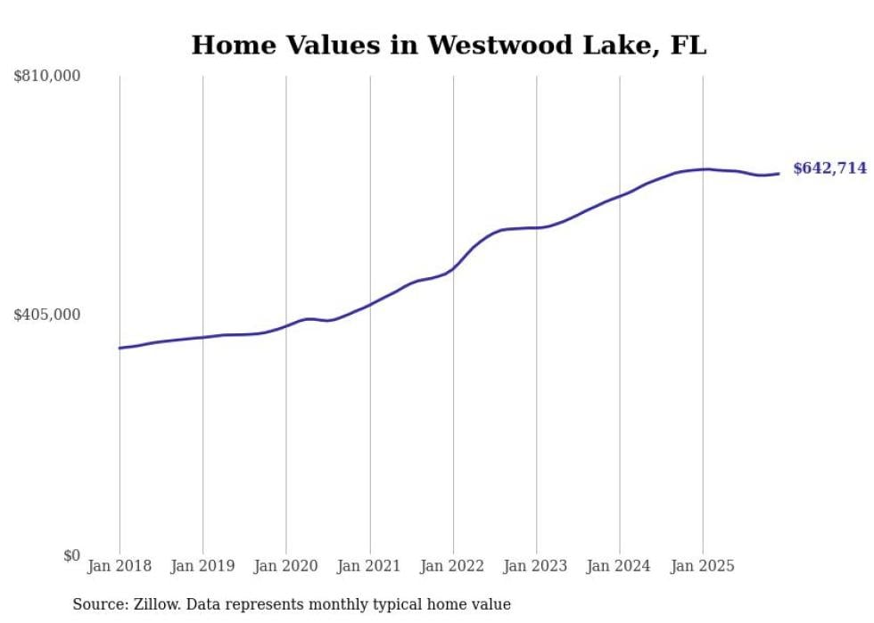 Stacker compiled a list of cities with the most expensive homes in the Miami-Fort Lauderdale-Pompano Beach, FL metro area using data from Zillow. Charts show the monthly typical home value since January 2018.