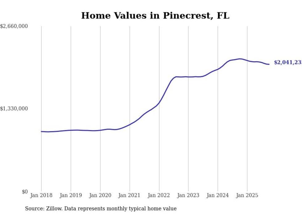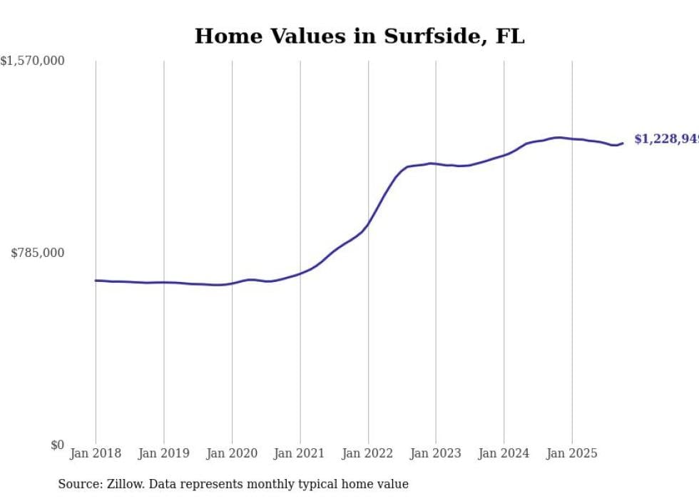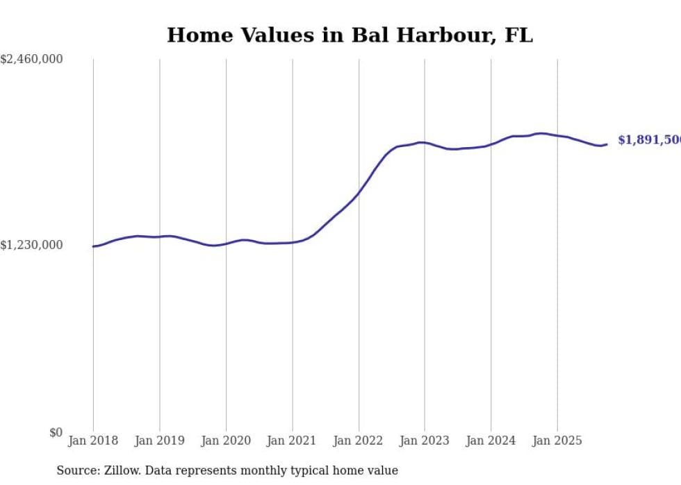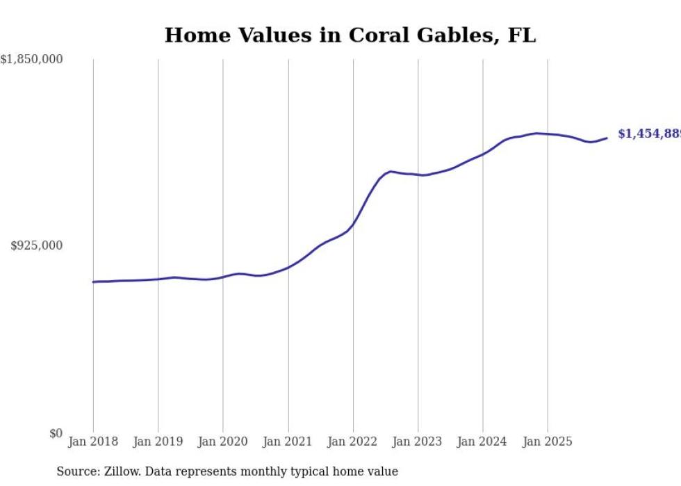 Stacker compiled a list of cities with the most expensive homes in the Miami metro area using data from Zillow. Charts show the monthly typical home value since January 2018. Data was available for 118 cities and towns.