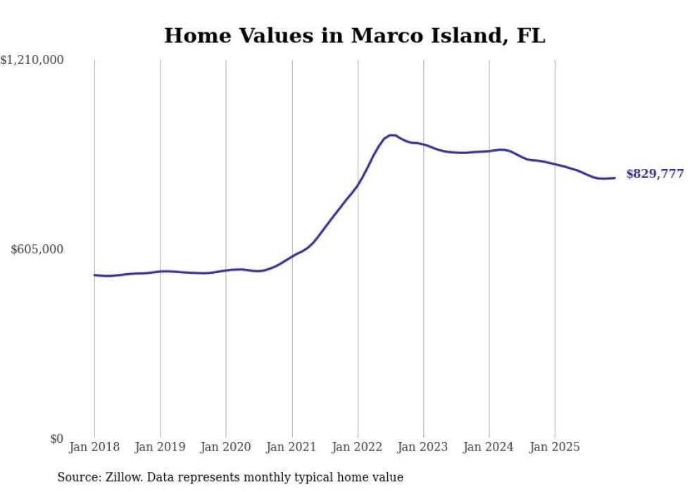 Stacker compiled a list of cities with the most expensive homes in the Naples-Marco Island, FL metro area using data from Zillow. Charts show the monthly typical home value since January 2018.