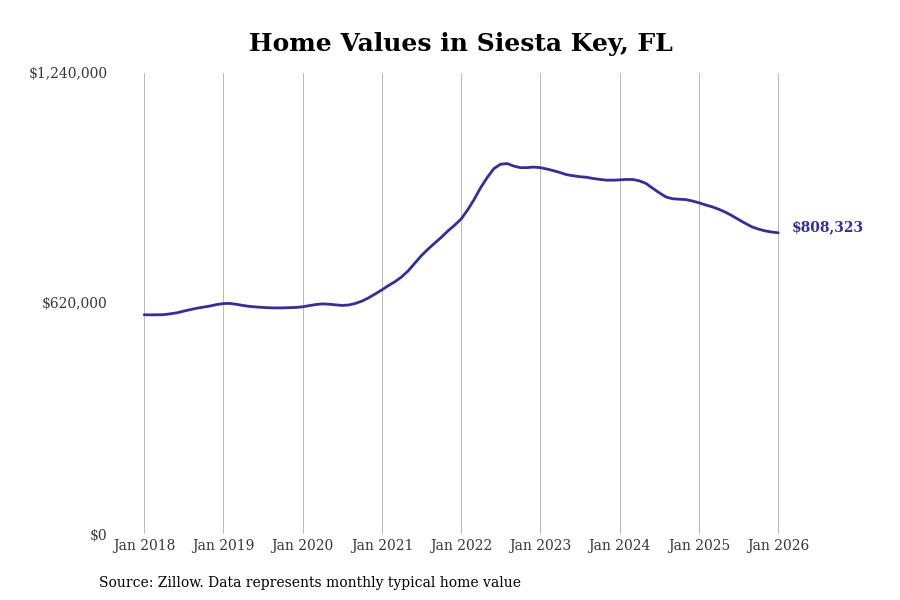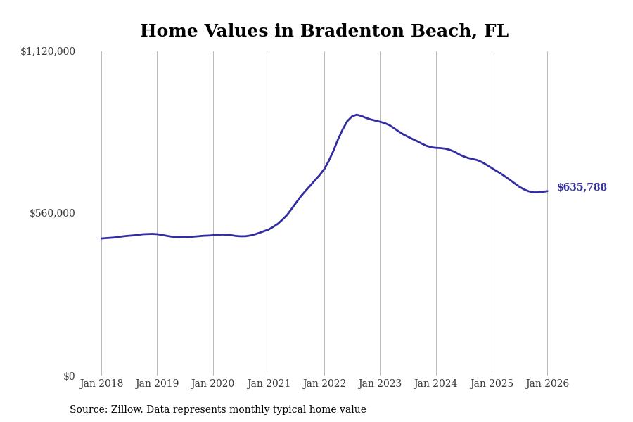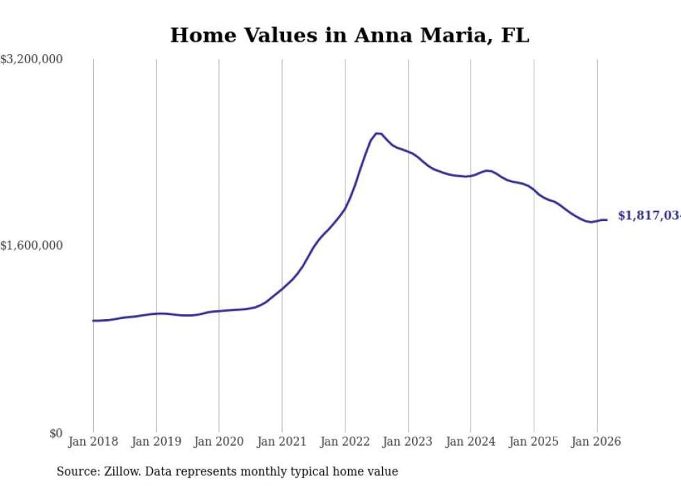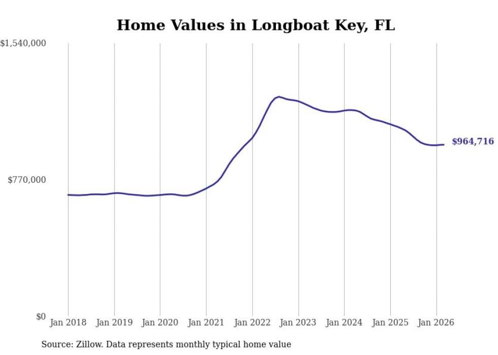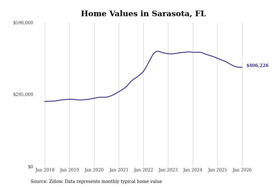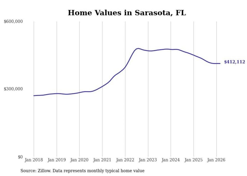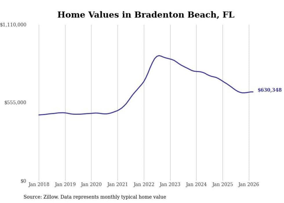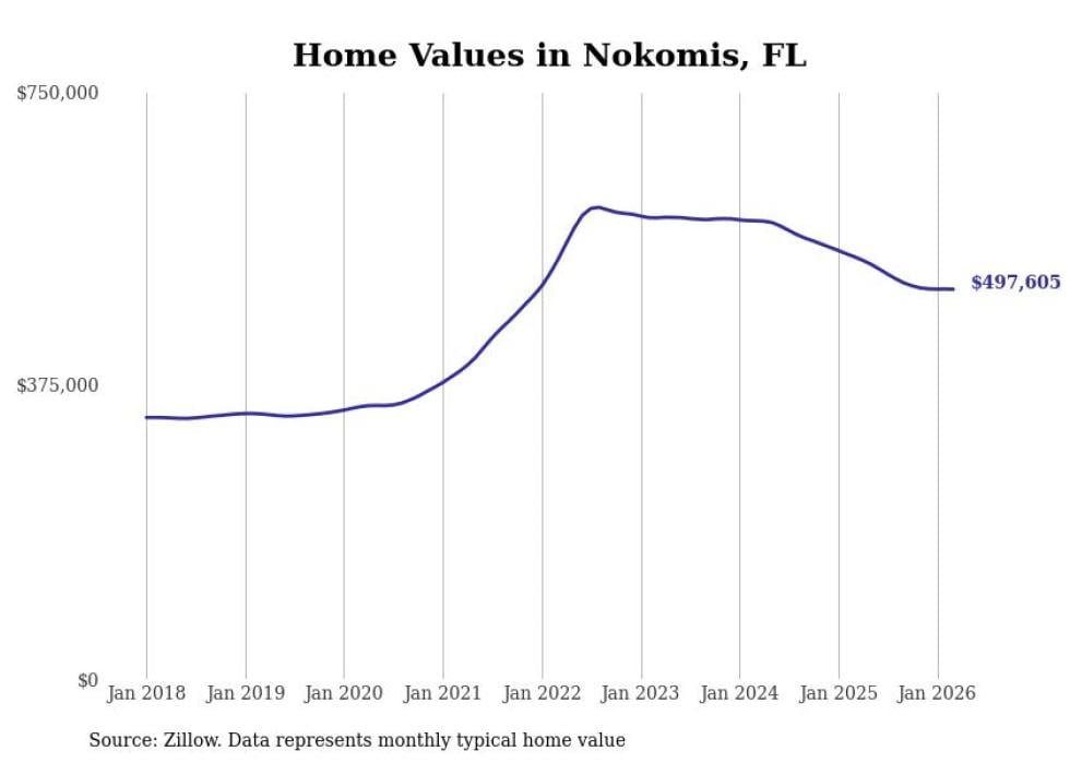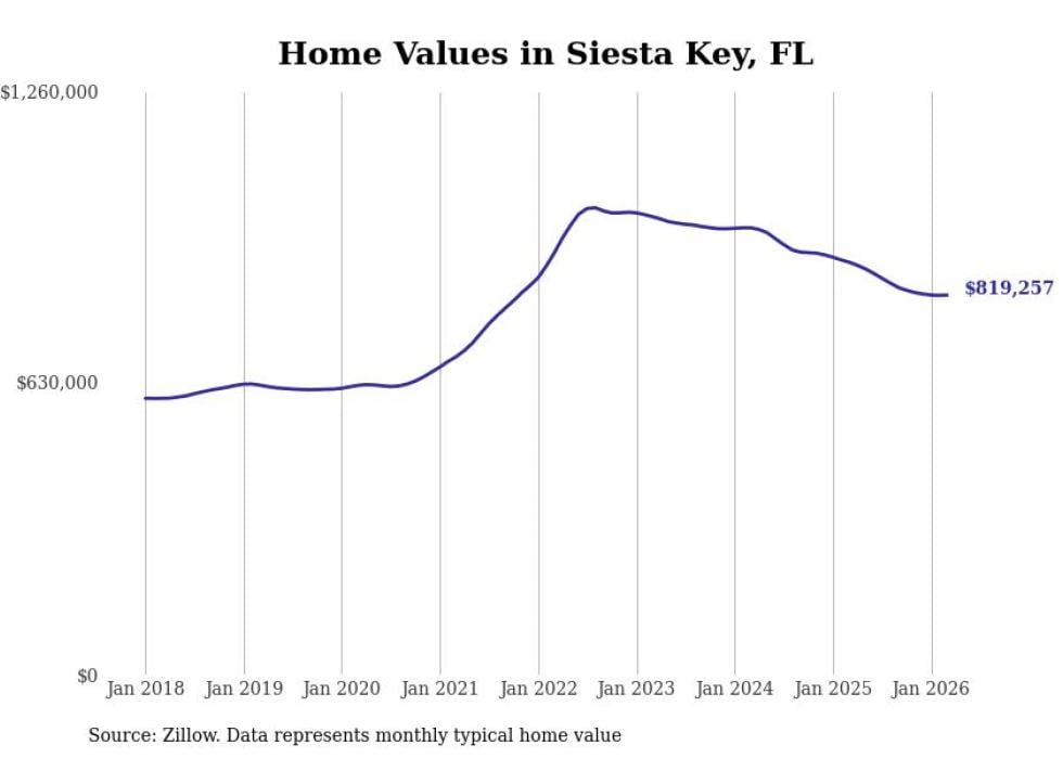Stacker compiled a list of cities with the most expensive homes in the North Port-Sarasota-Bradenton, FL metro area using data from Zillow. Charts show the monthly typical home value since January 2018.