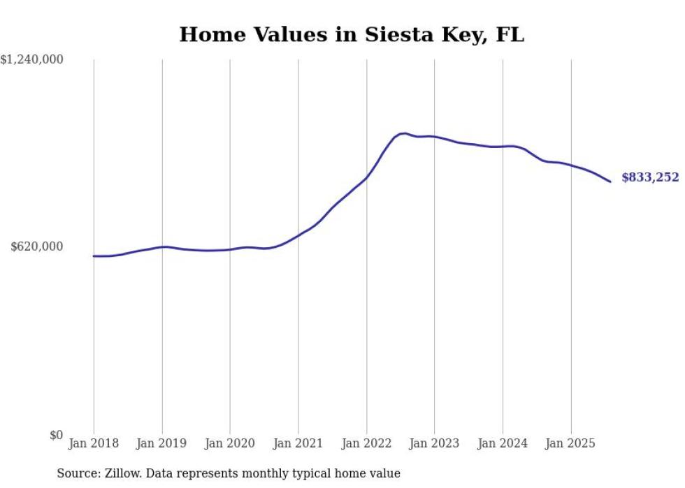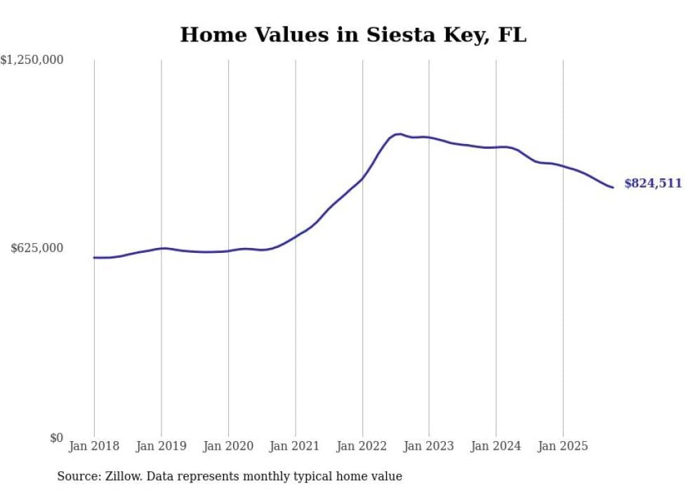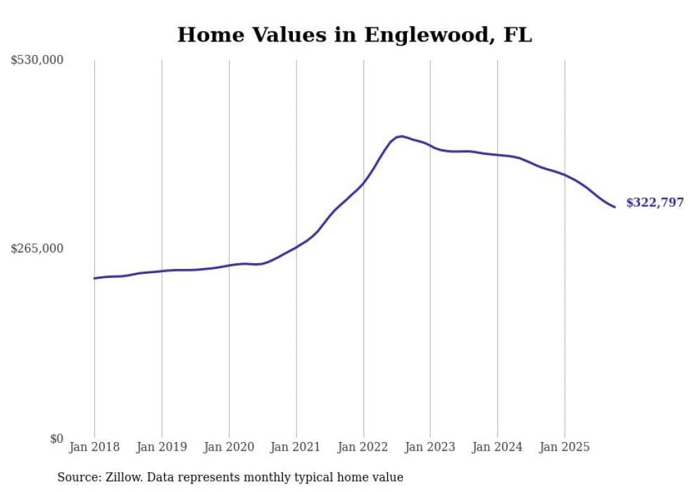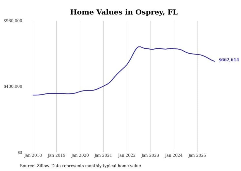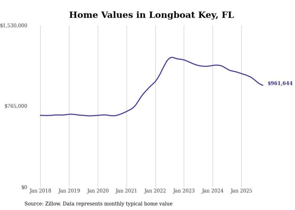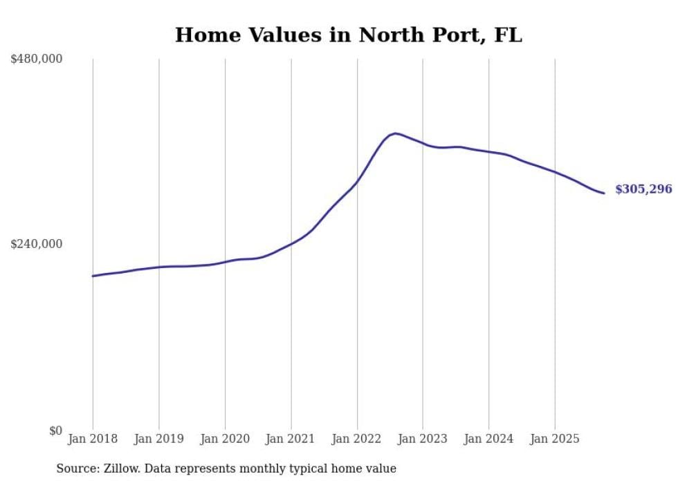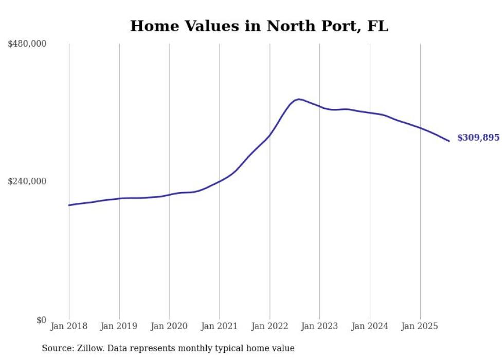 Stacker compiled a list of cities with the most expensive homes in the North Port metro area using data from Zillow. Charts show the monthly typical home value since January 2018. All 19 cities and towns with data available were included in the list.