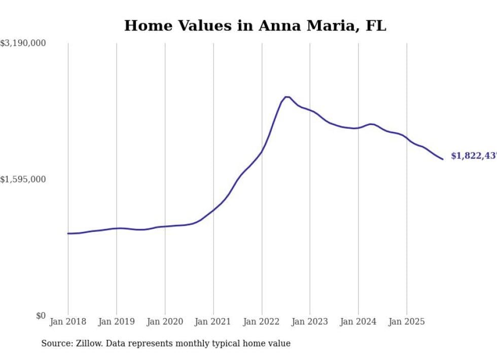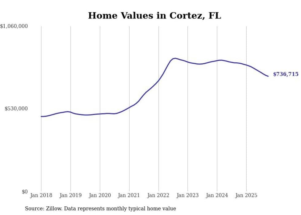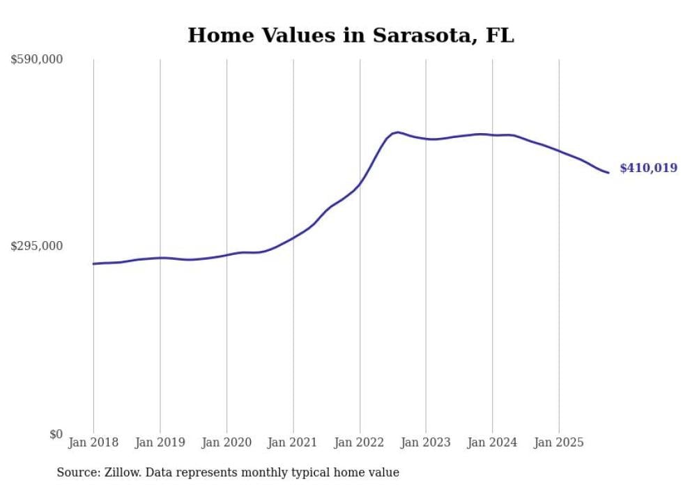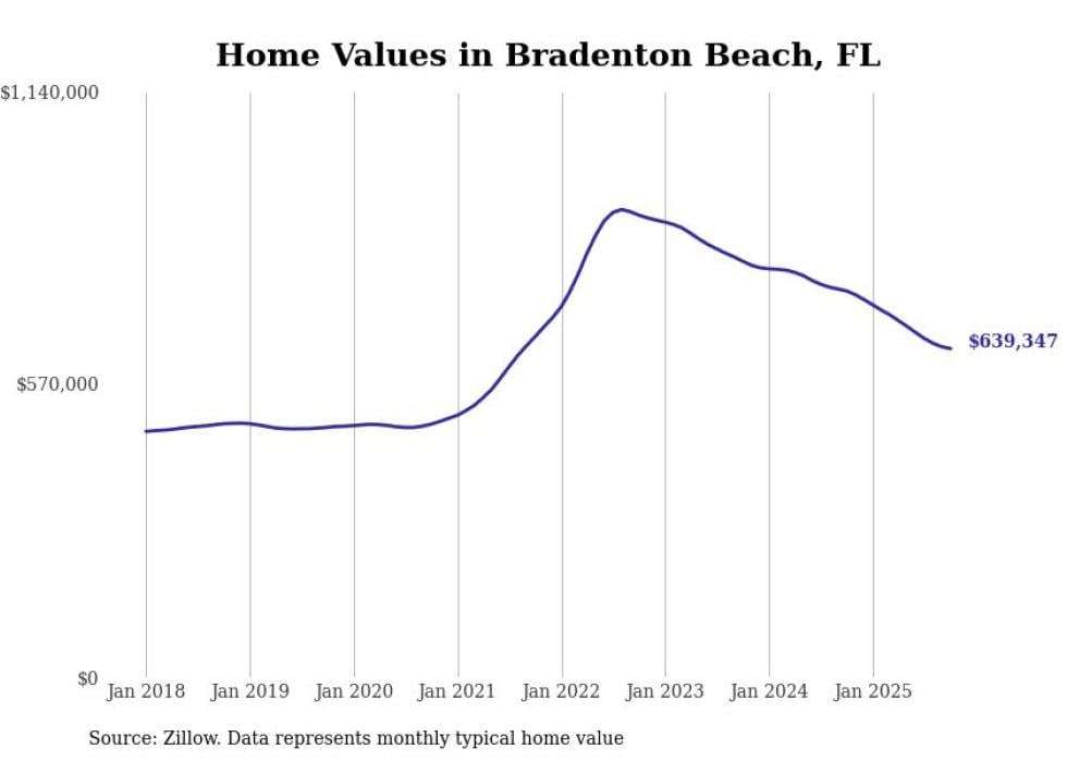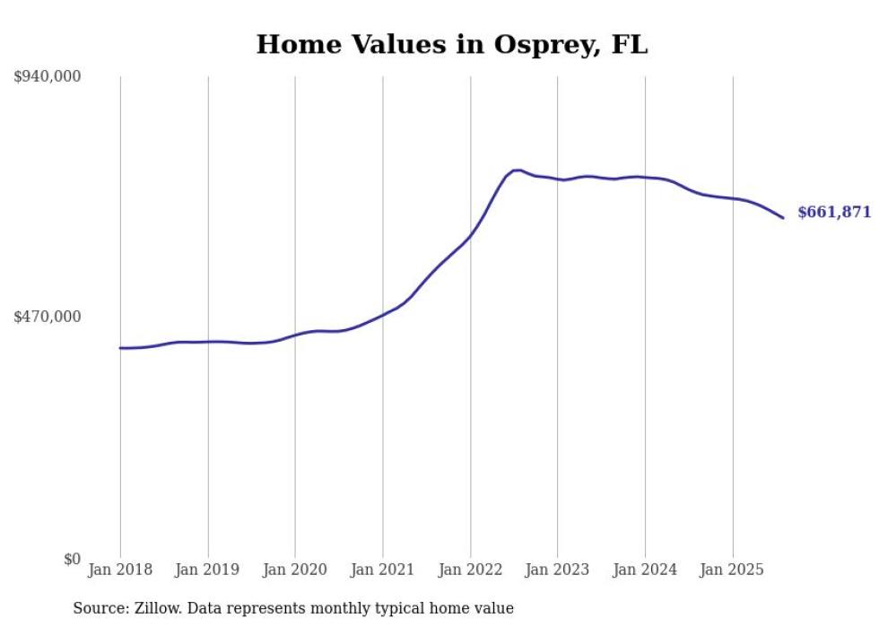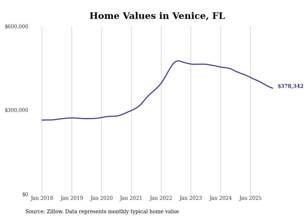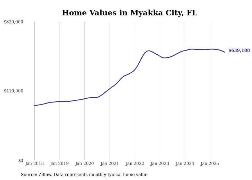 Stacker compiled a list of cities with the most expensive homes in the North Port metro area using data from Zillow. Charts show the monthly typical home value since January 2018. All 19 cities and towns with data available were included in the list.
